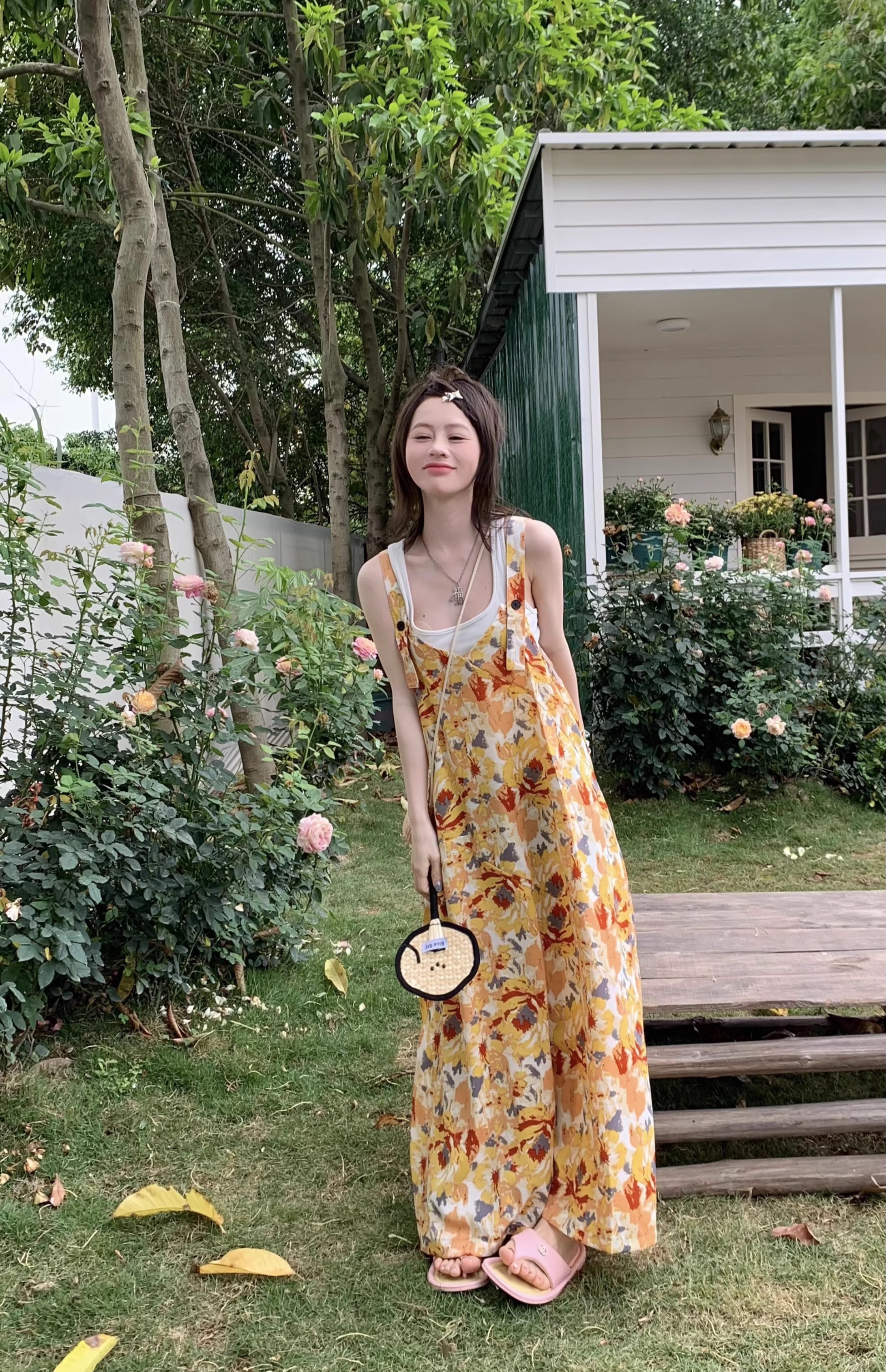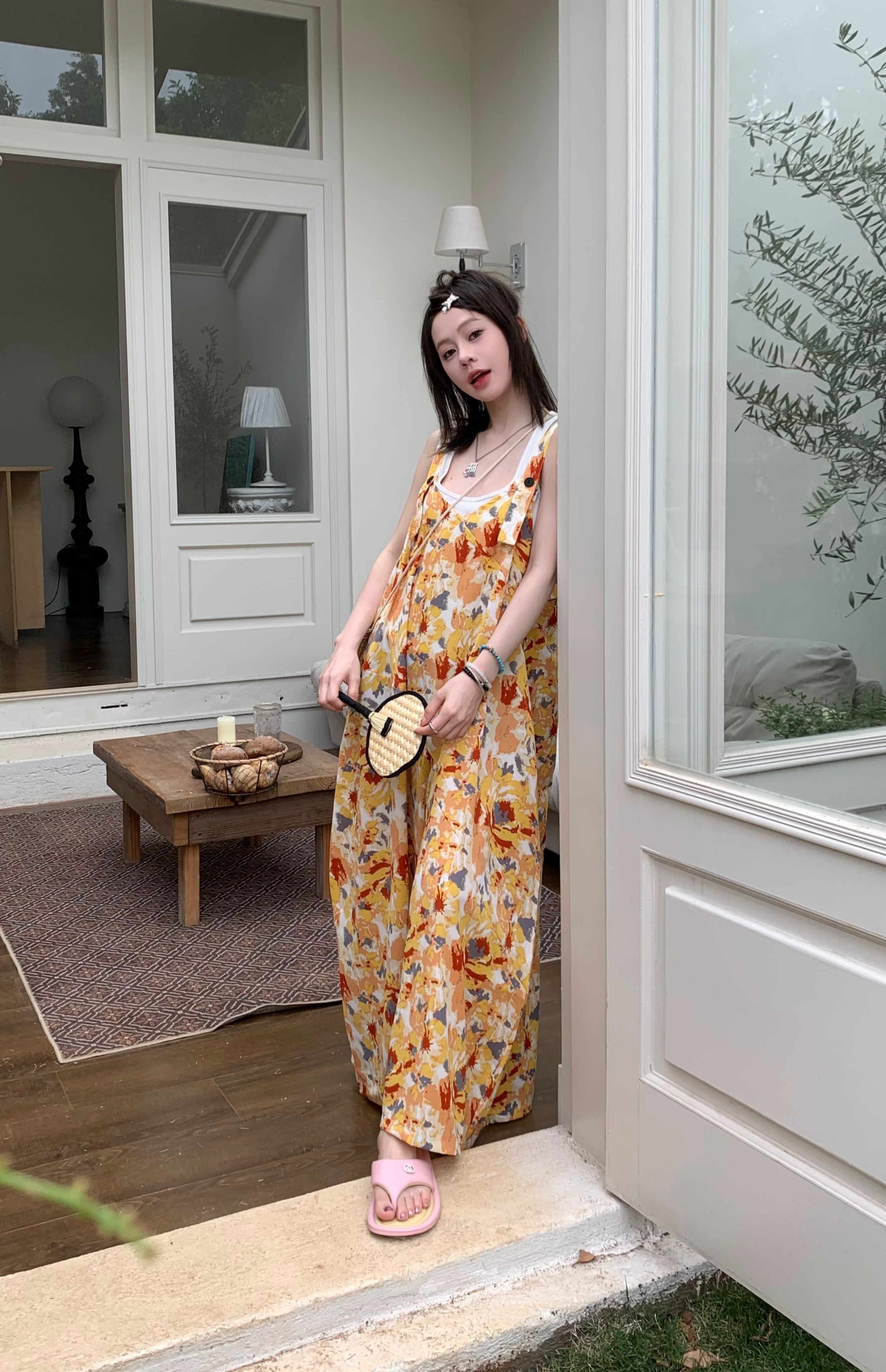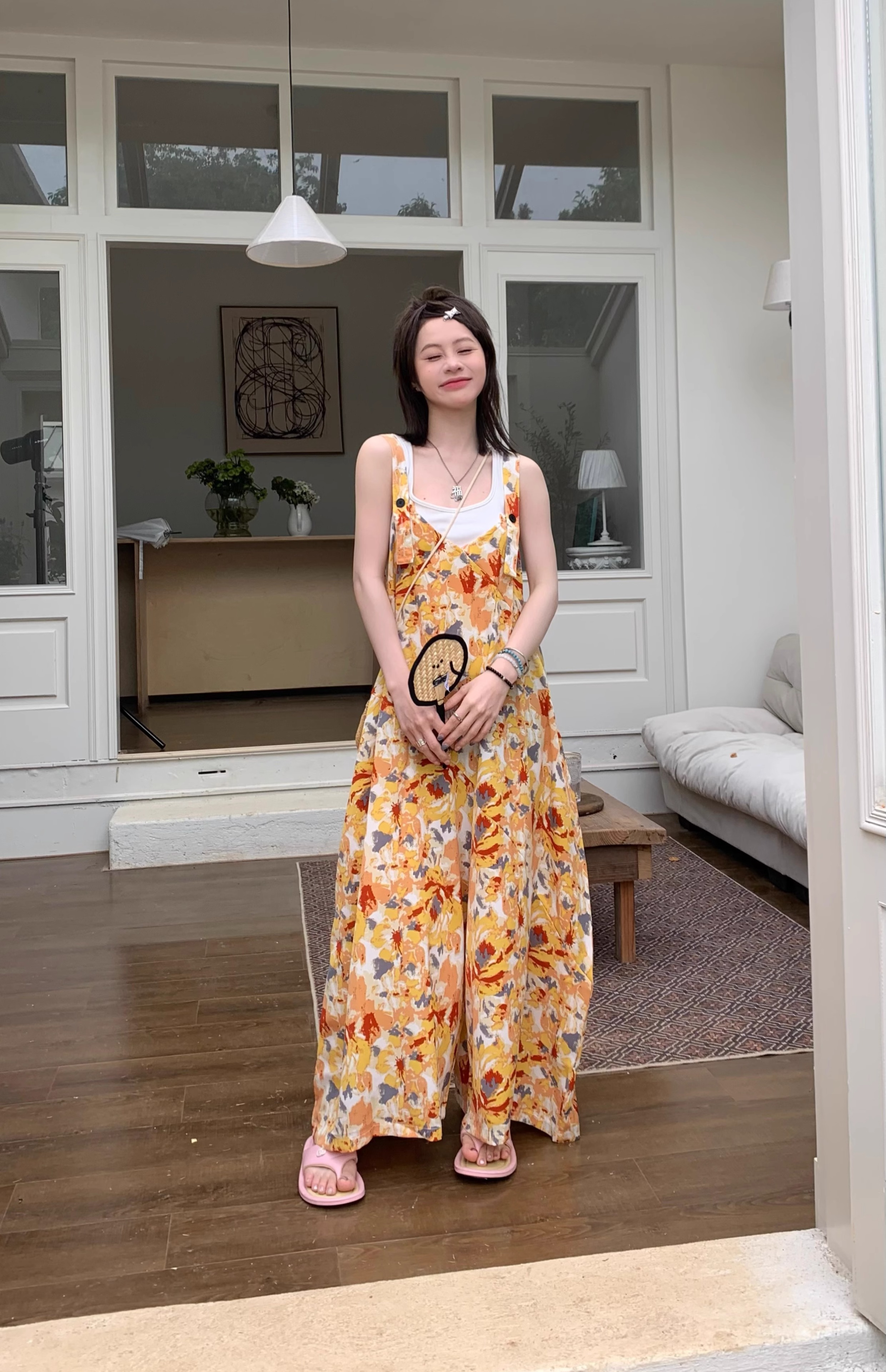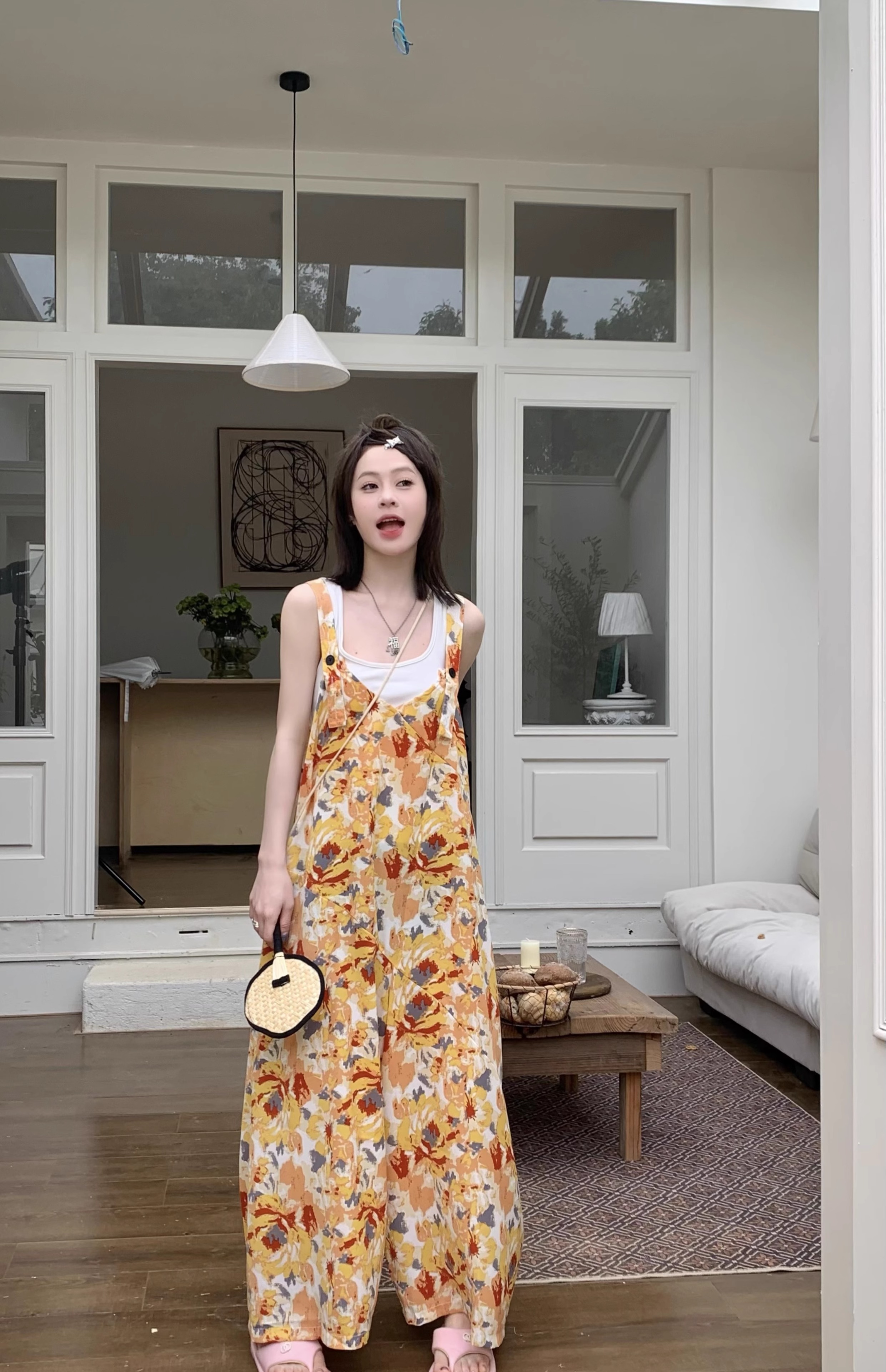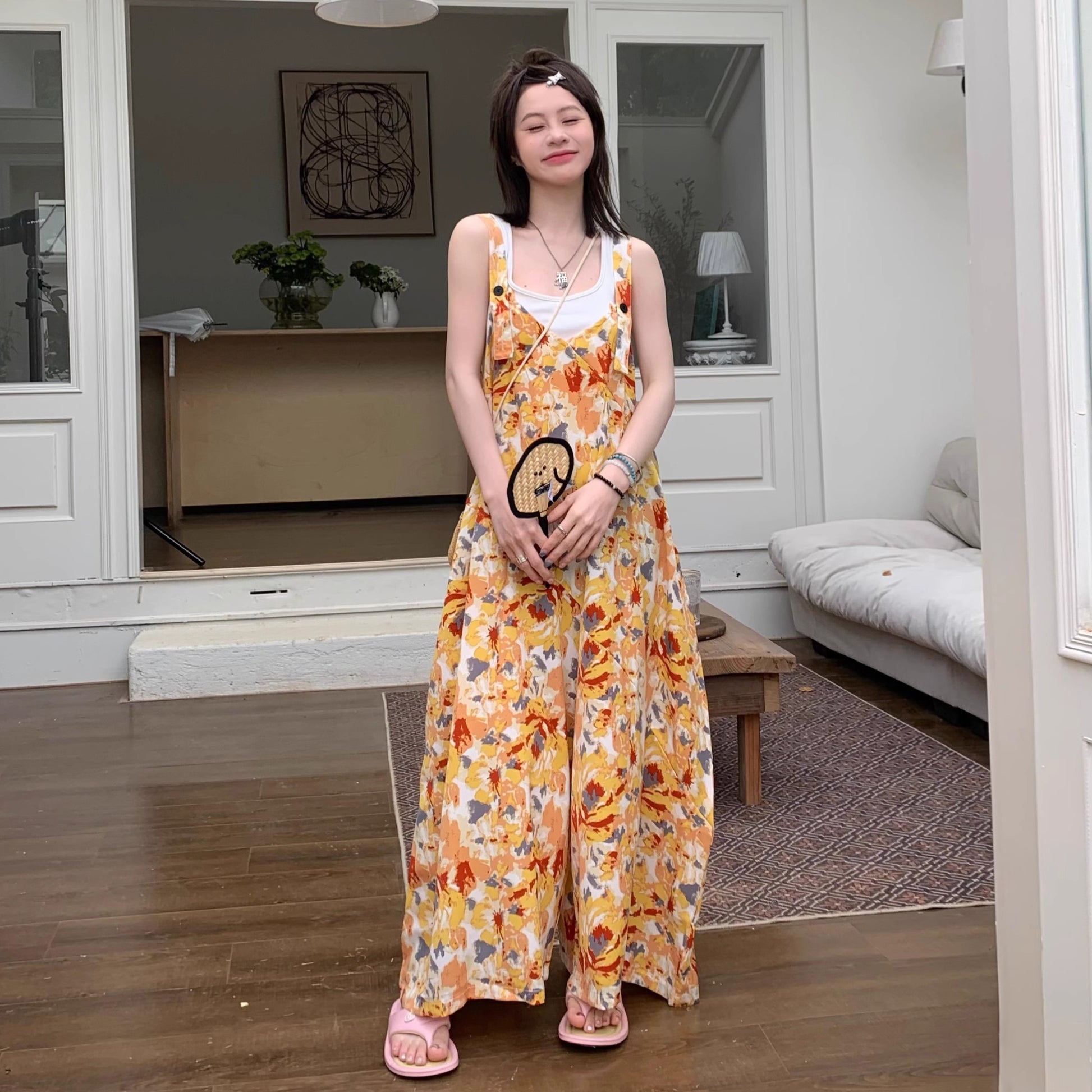【ボトムス】夏新作 ゆったりカジュアルルーズ感 オーバーサイズ キャミサロペット オールインワン【SHシリーズ】