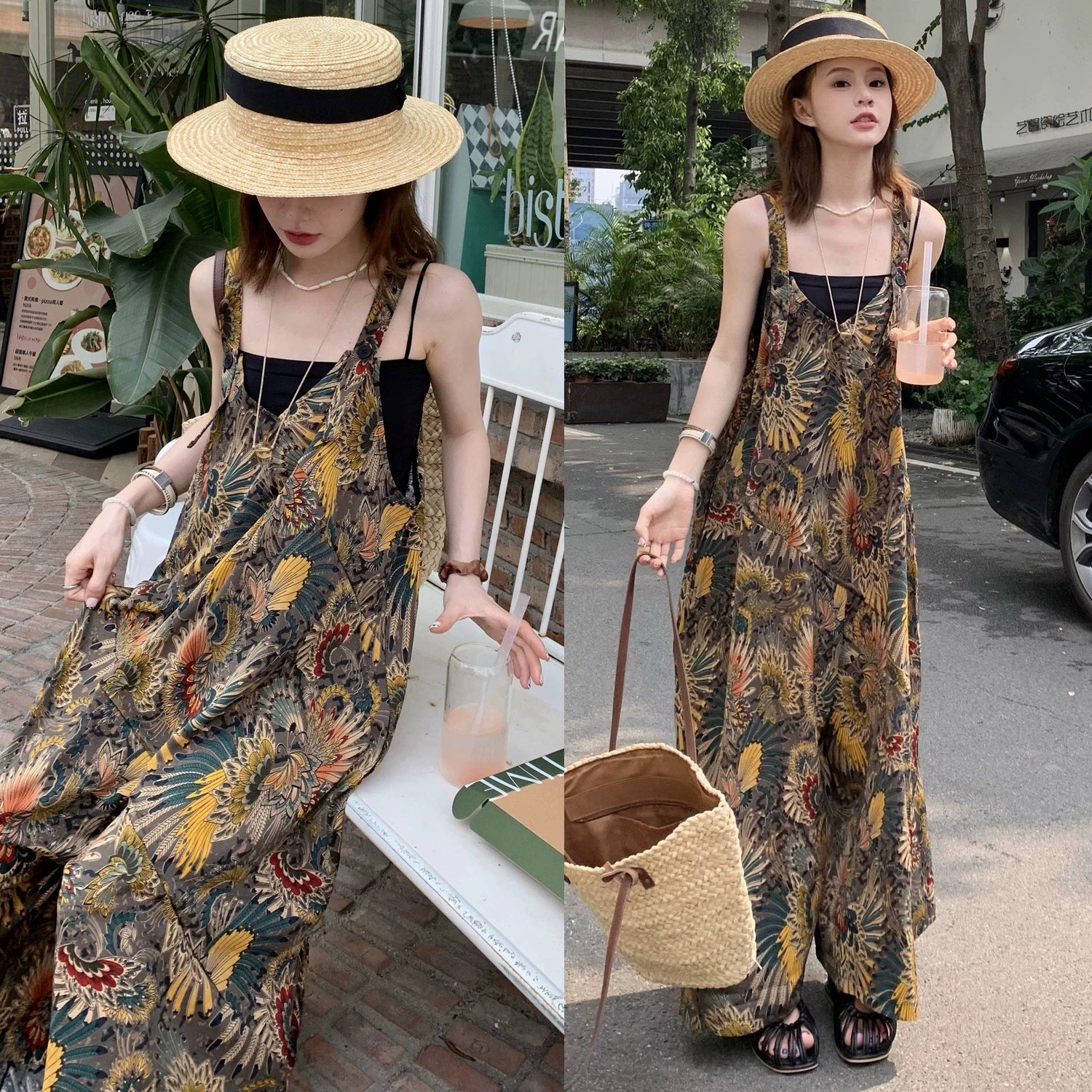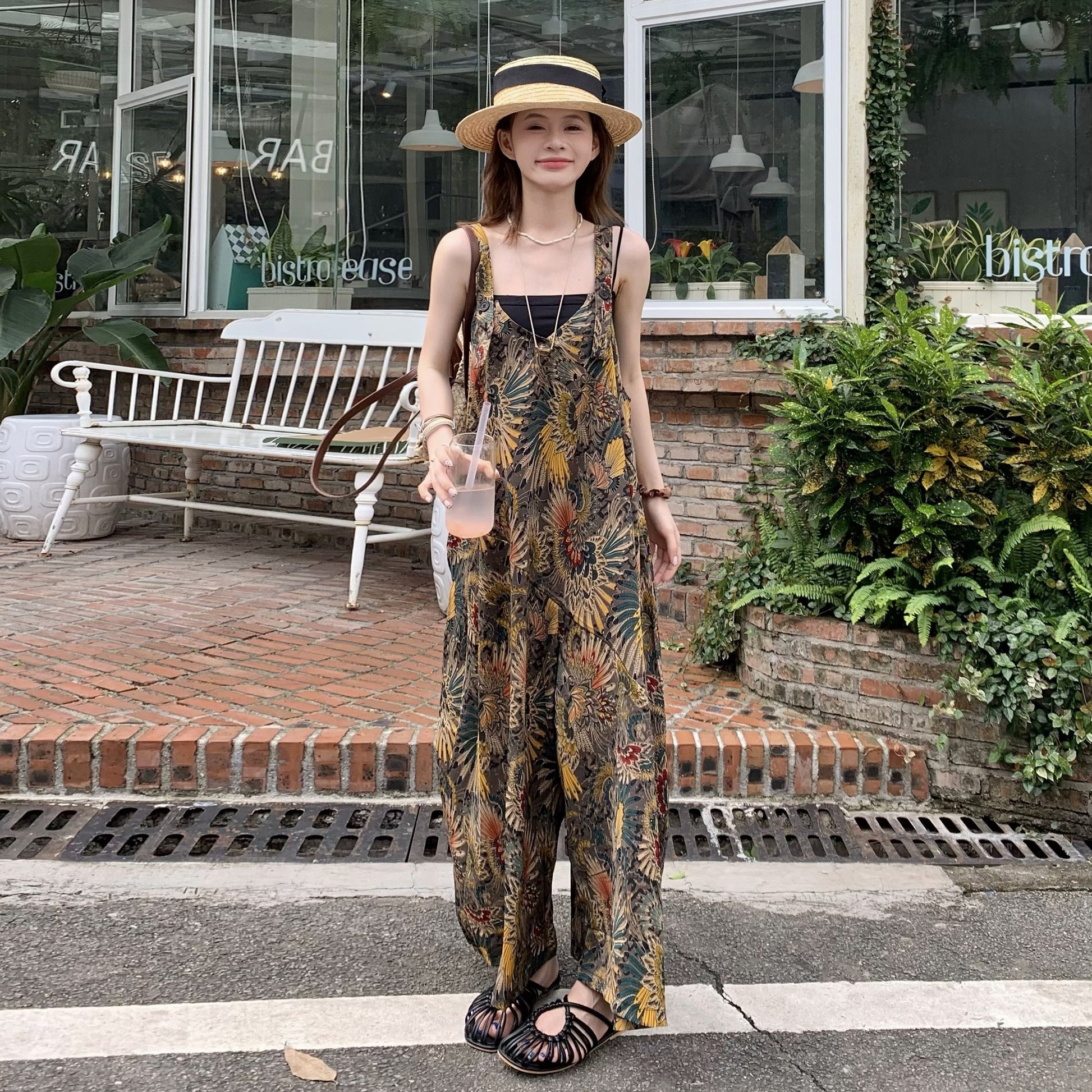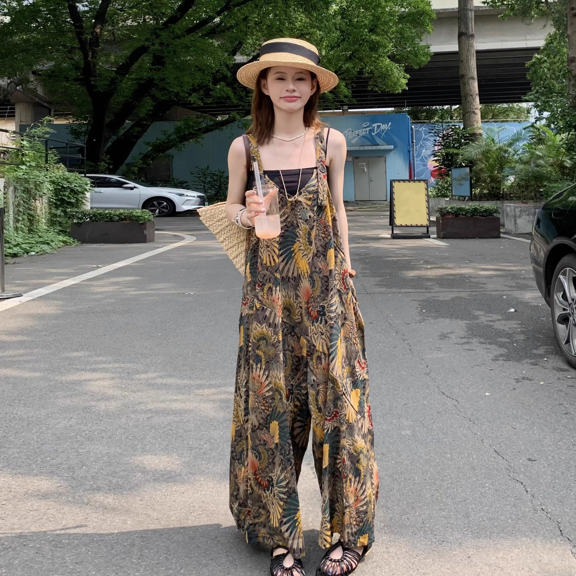 【ボトムス】夏新作 ゆったりルーズスタイル Vネック キャミサロペット オールインワン【SHシリーズ】