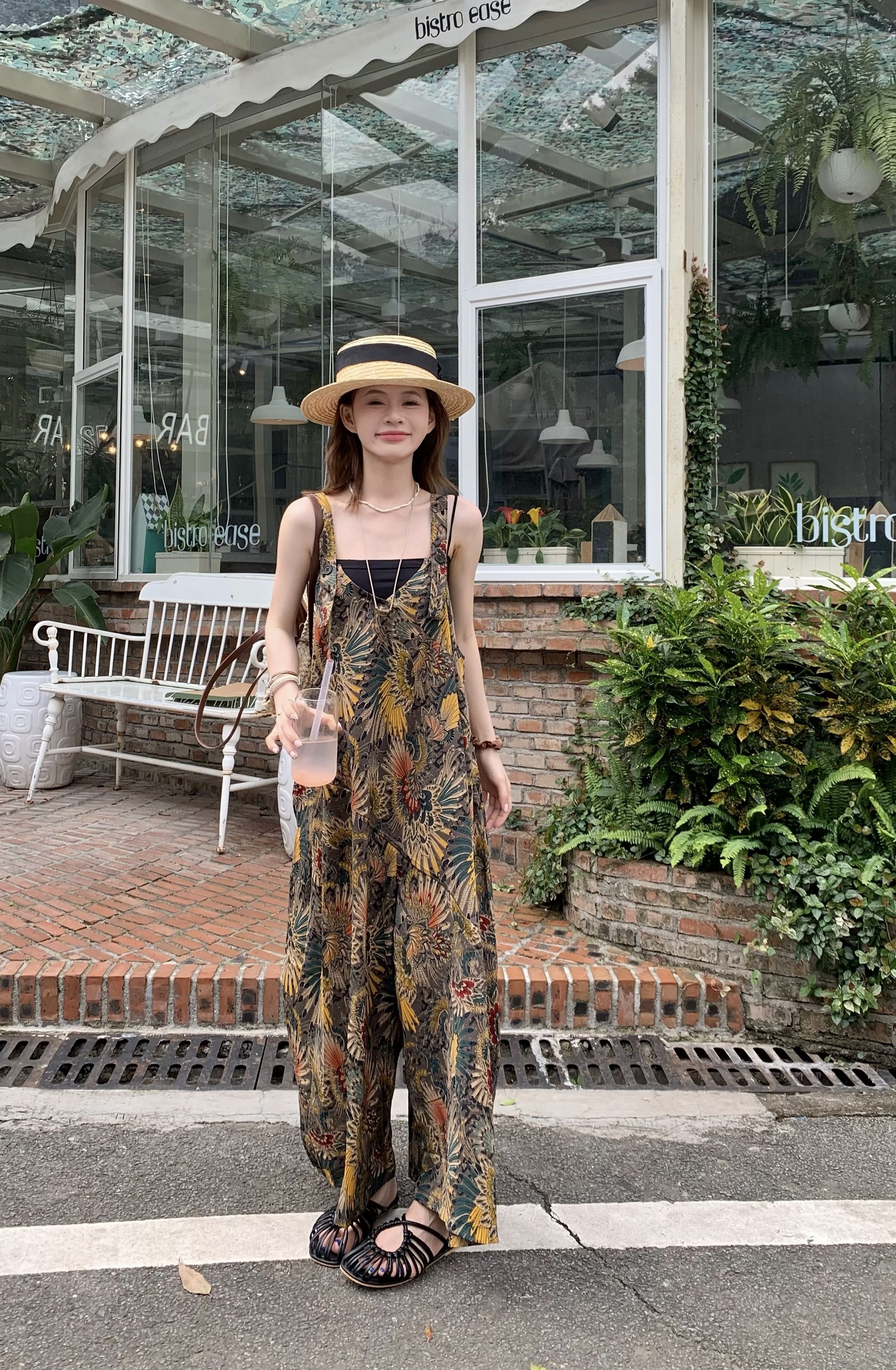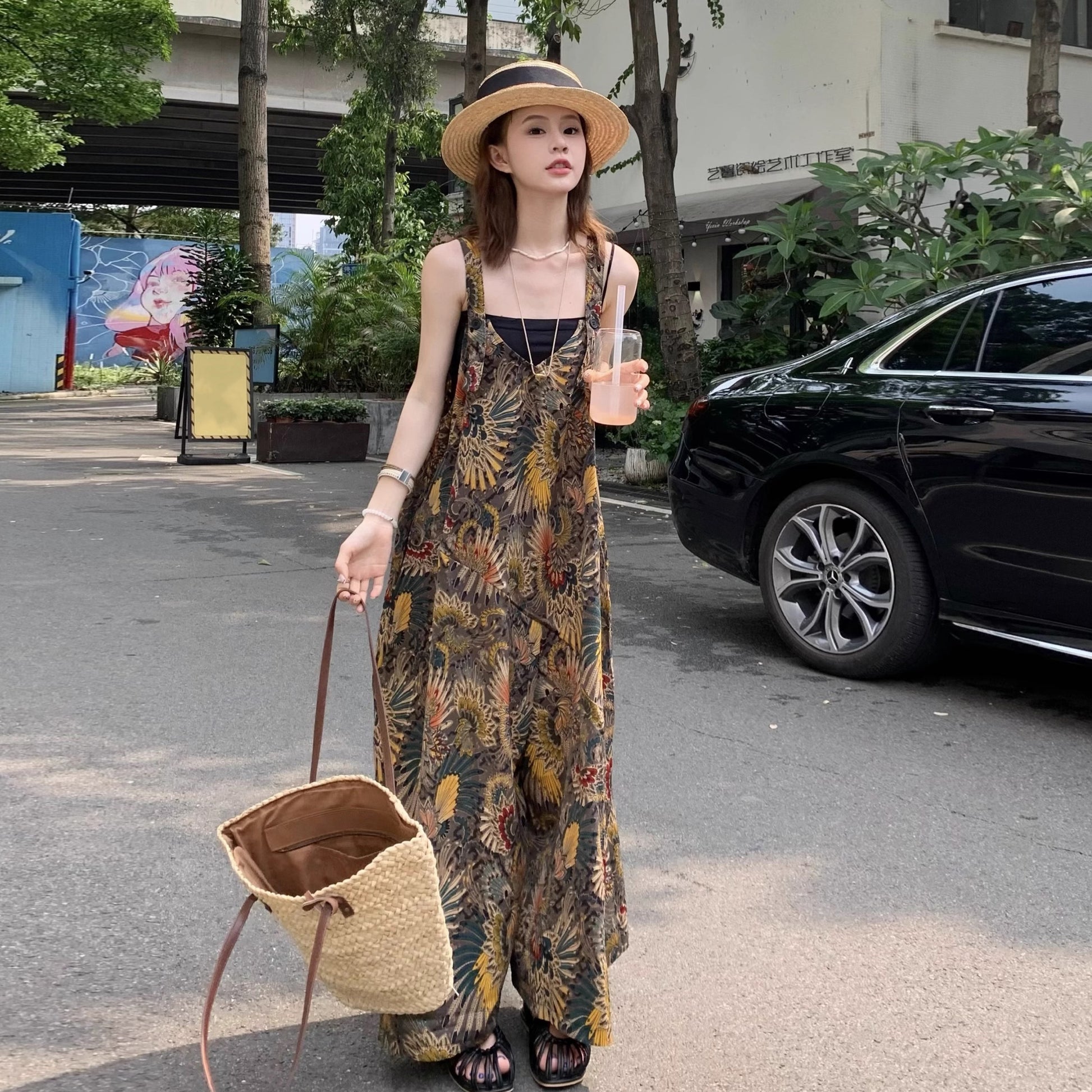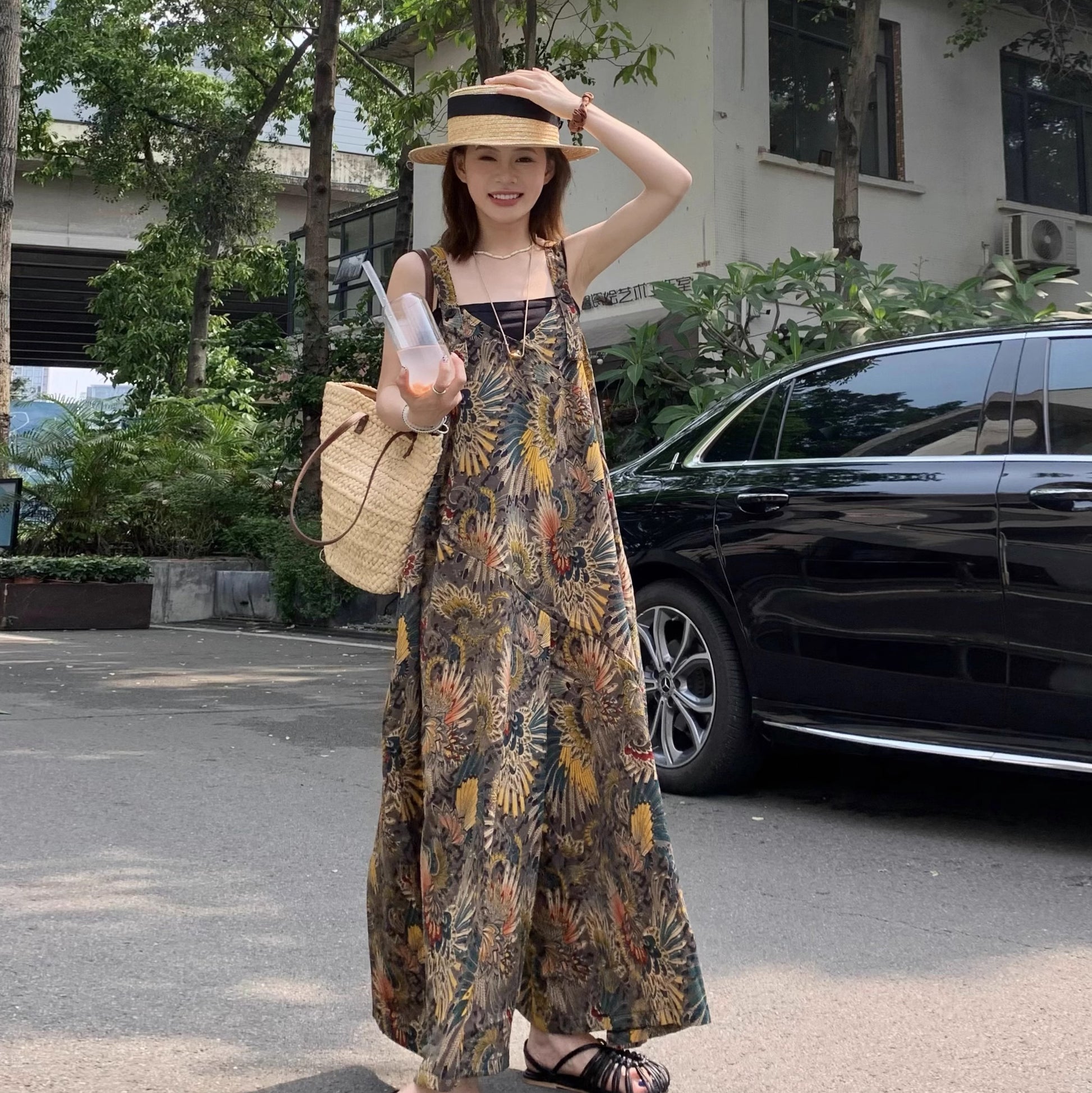 【ボトムス】夏新作 ゆったりルーズスタイル Vネック キャミサロペット オールインワン【SHシリーズ】