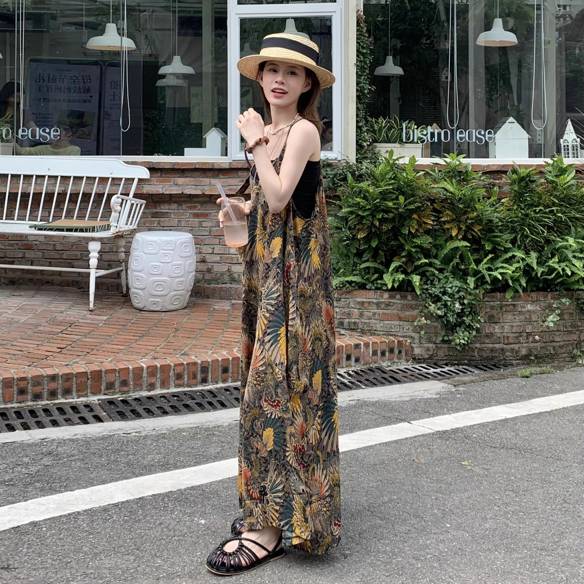 【商品名】【ボトムス】夏新作 ゆったりルーズスタイル Vネック キャミサロペット オールインワン【SHシリーズ】