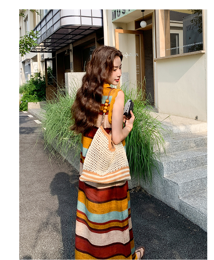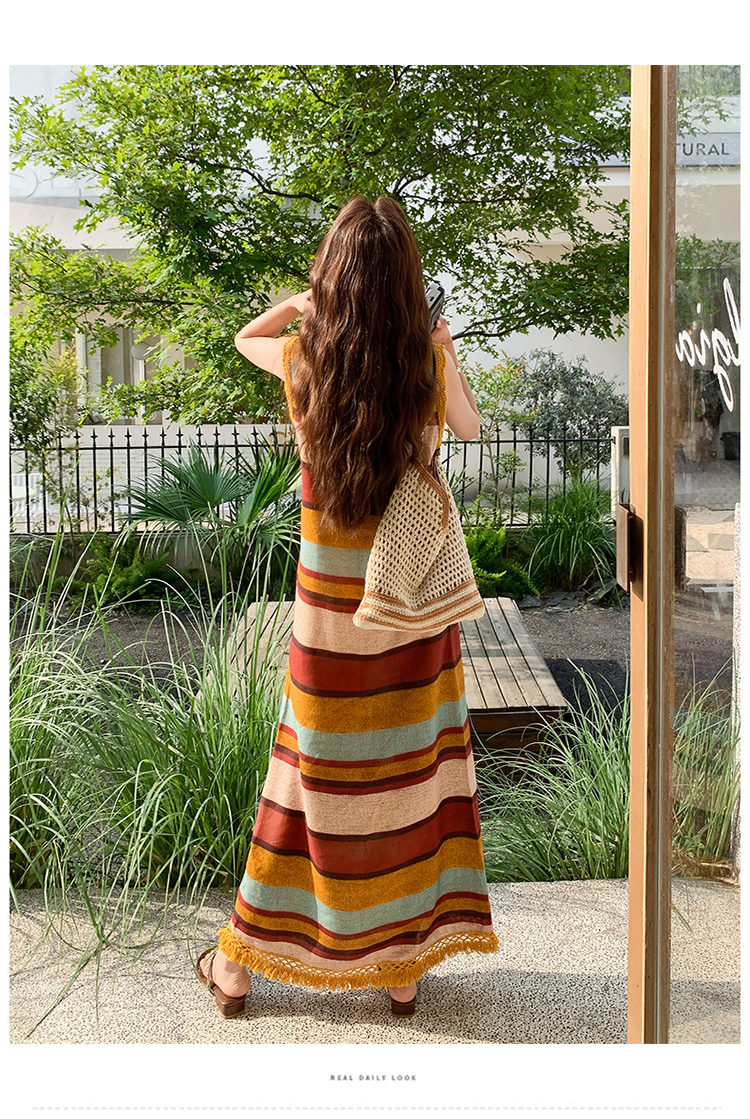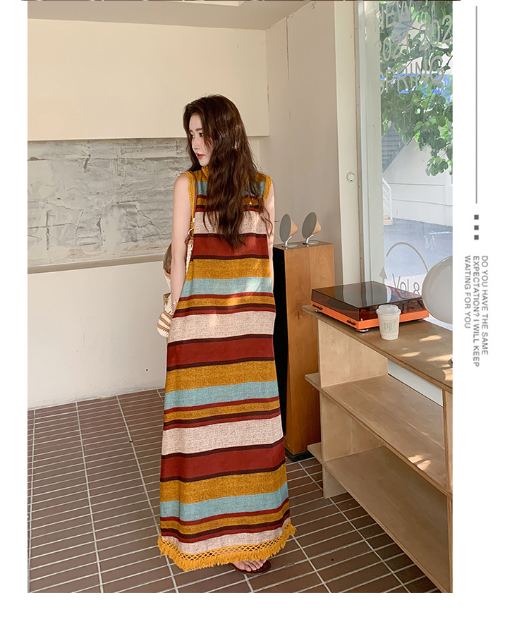 【商品名】【ワンピース】韓国風ストライプ柄 ゆったりシルエット ドーパミン配色 ノースリーブワンピース【SHシリーズ】