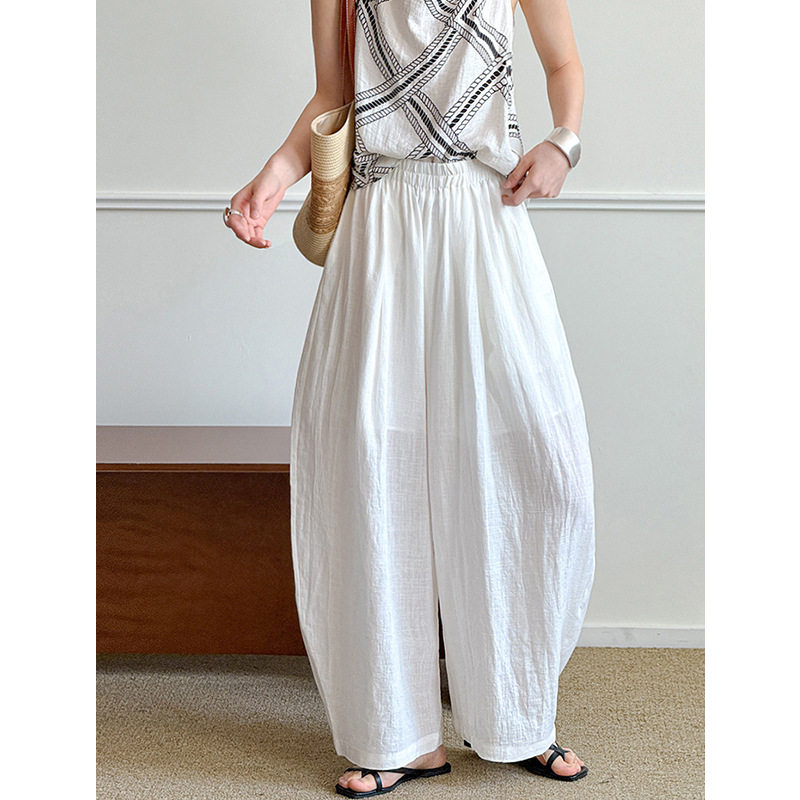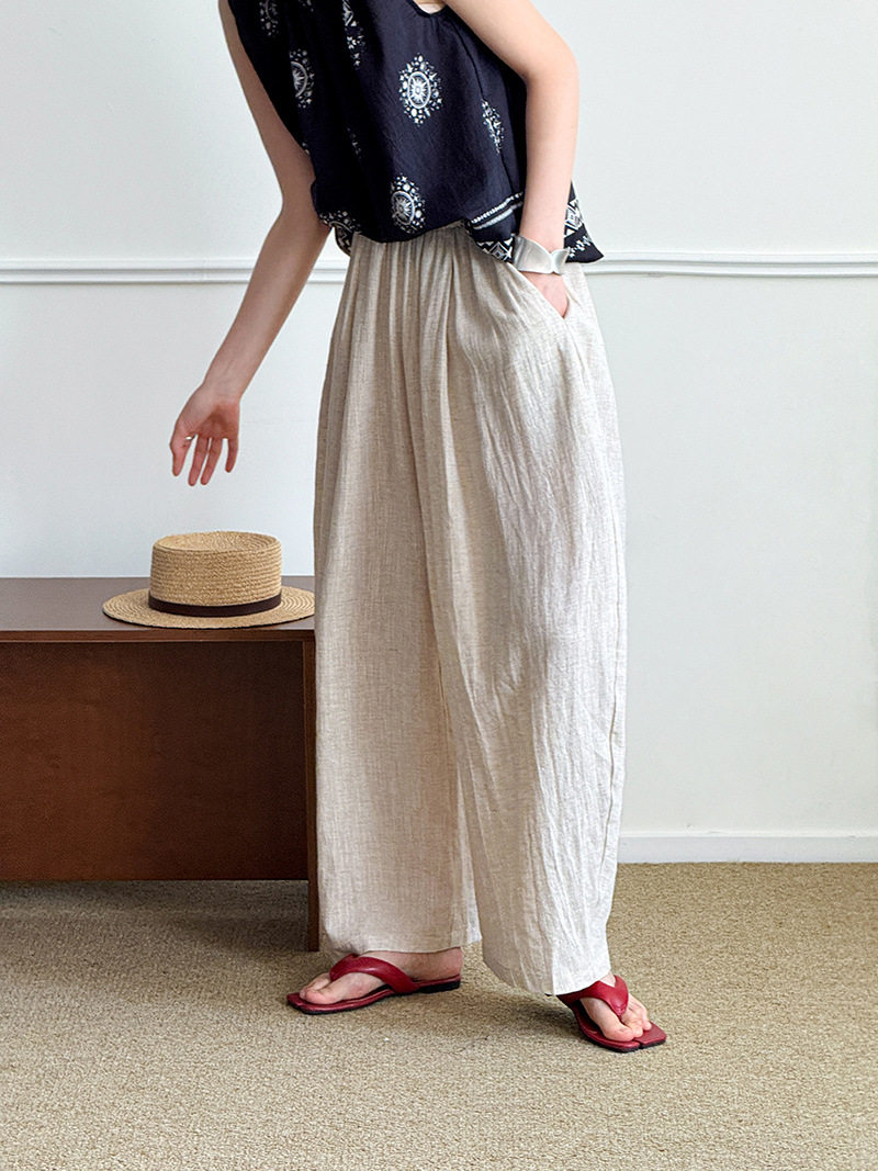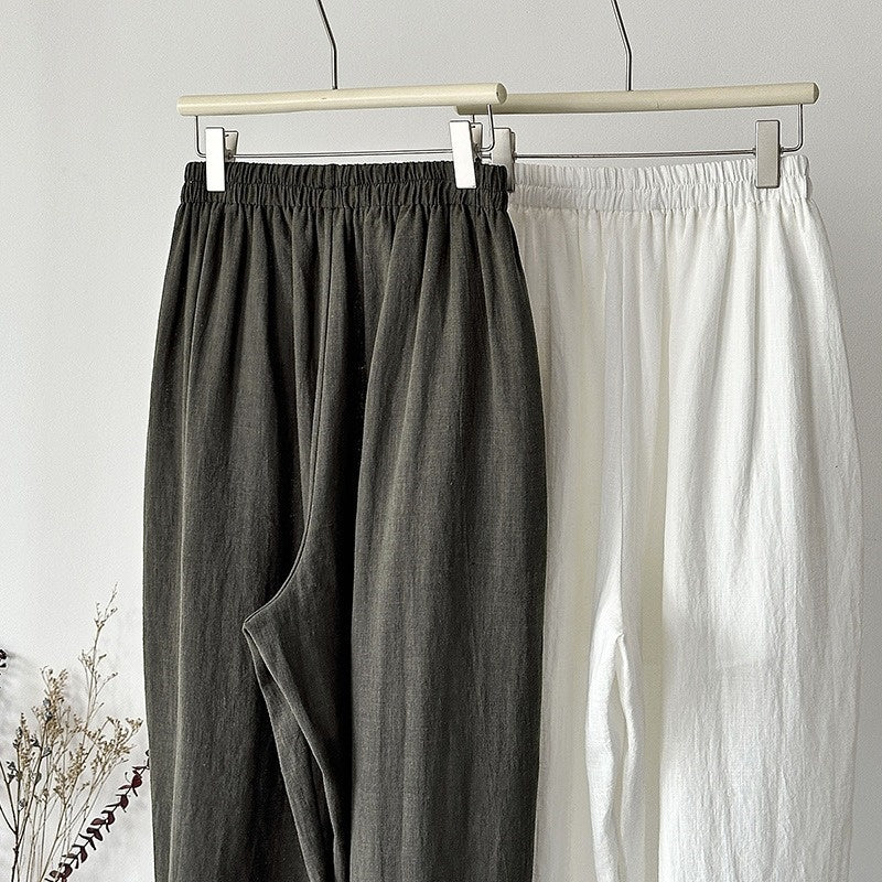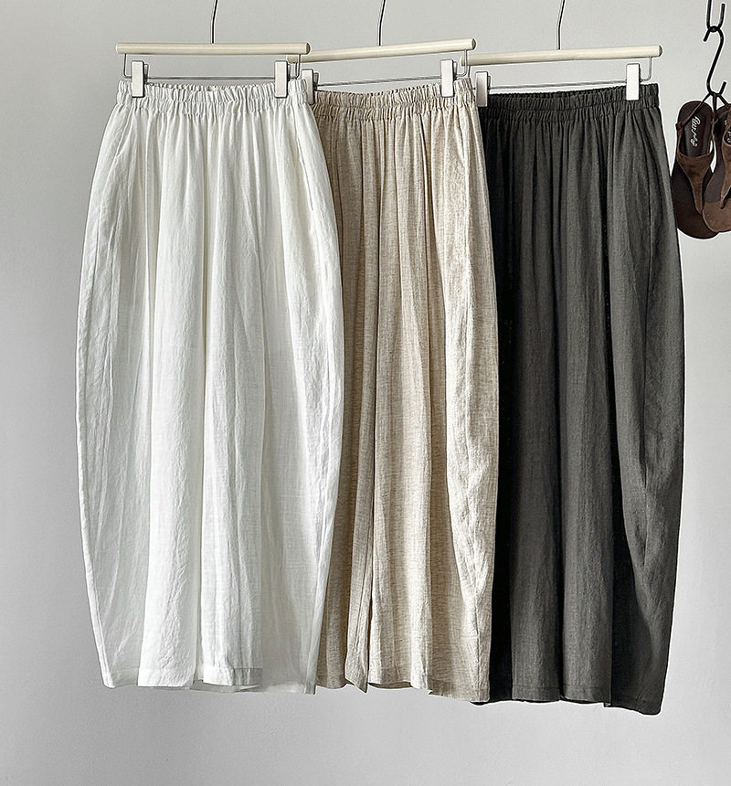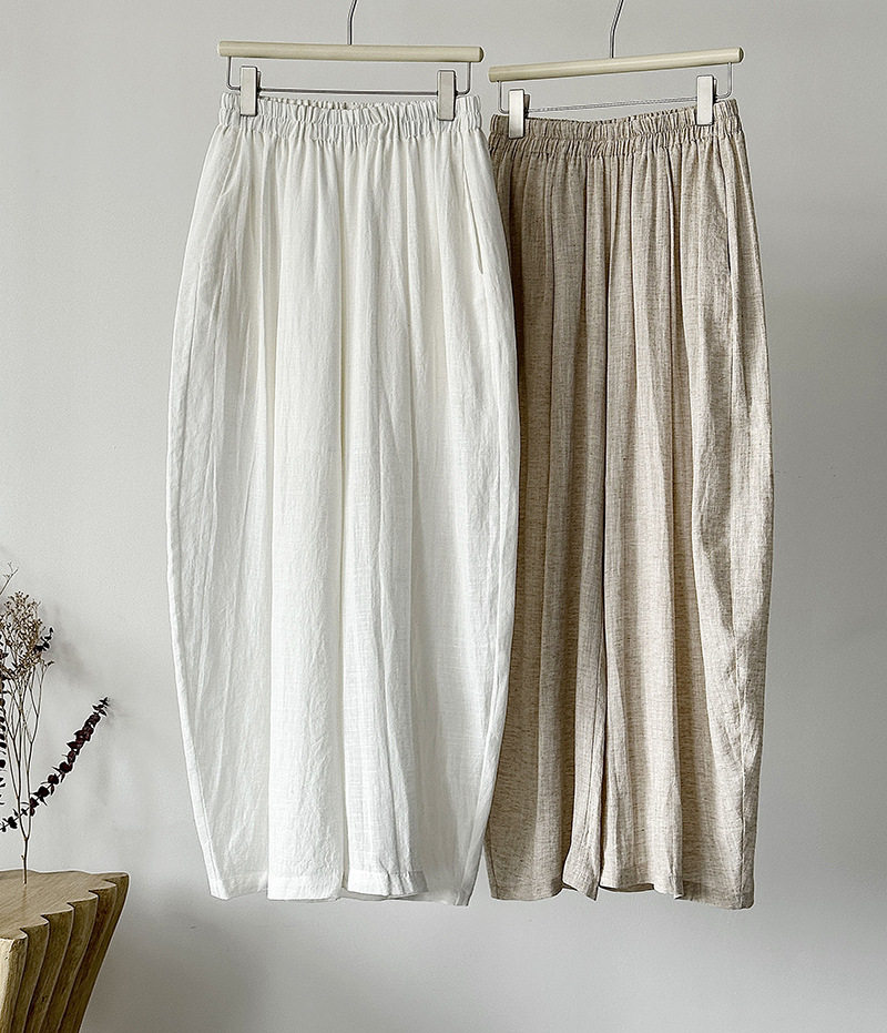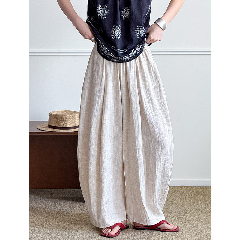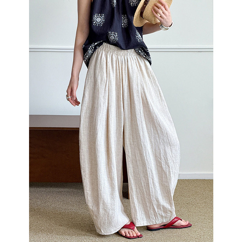 【ボトムス】夏 ゆるっと ラミー 薄手 ウエストゴム パンツ【JZシリーズ】