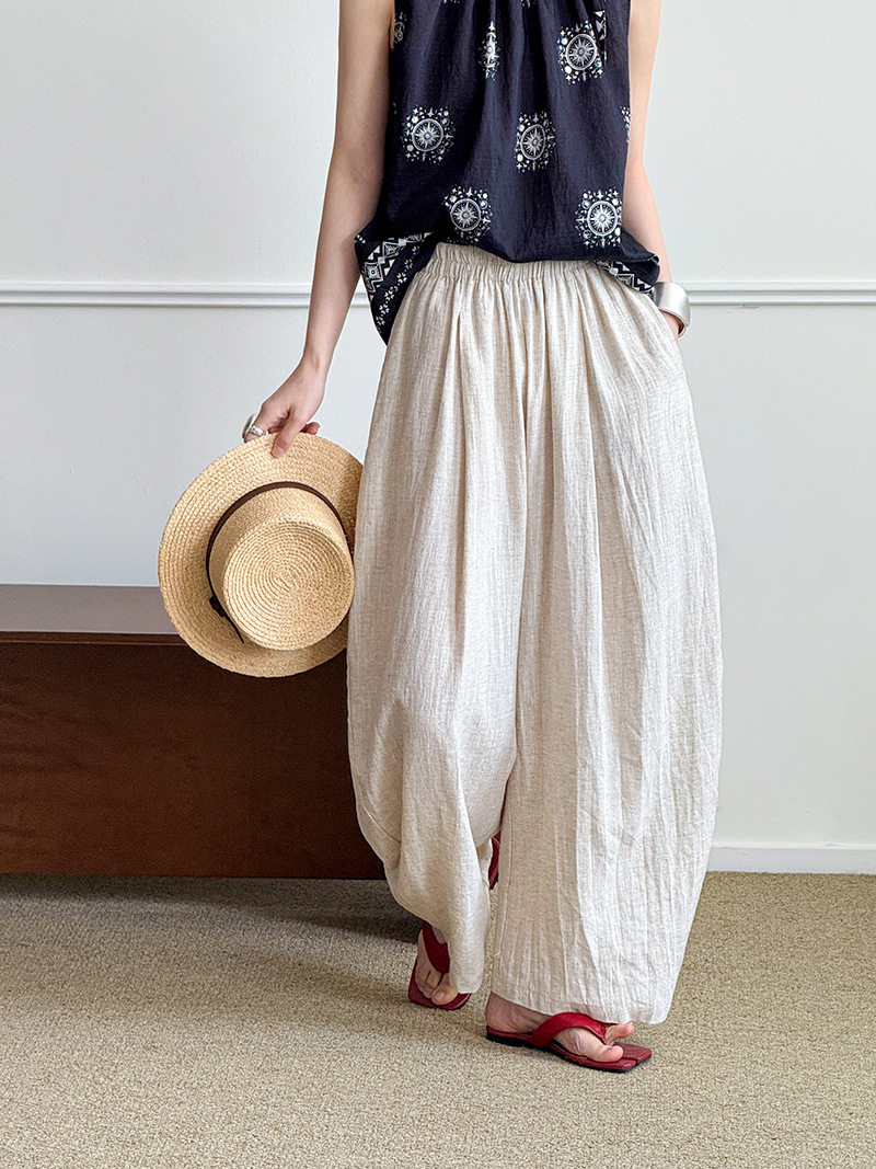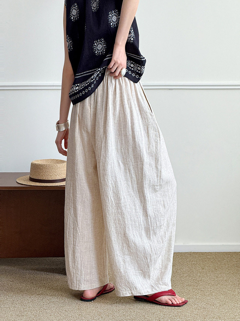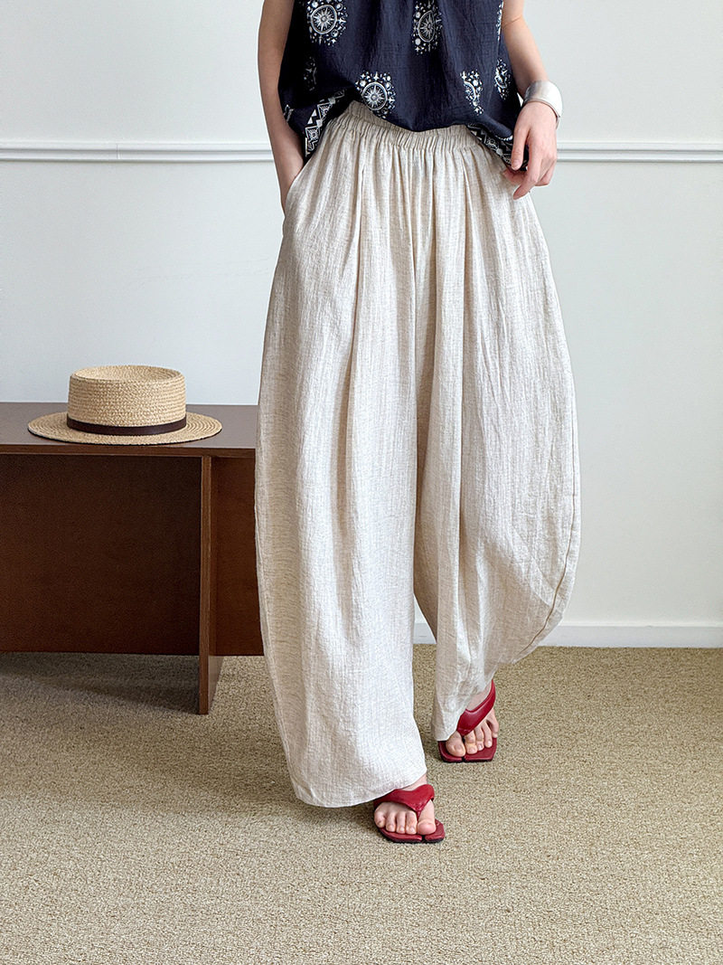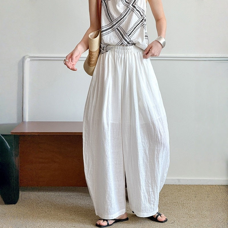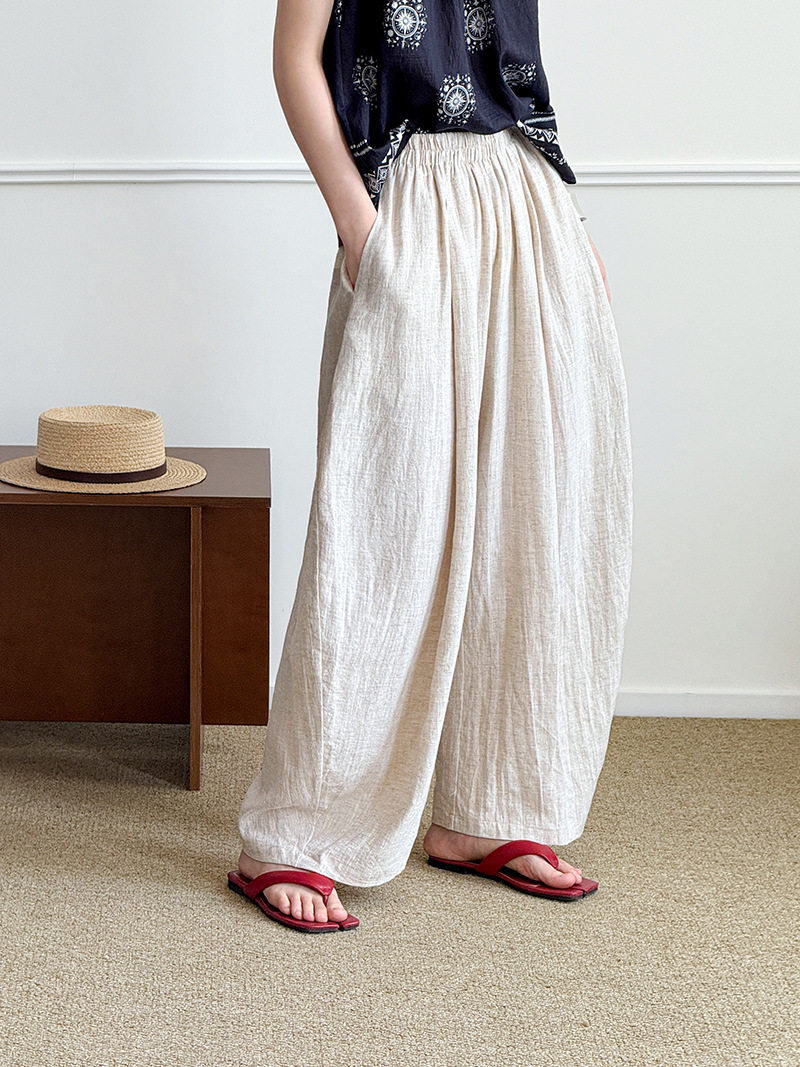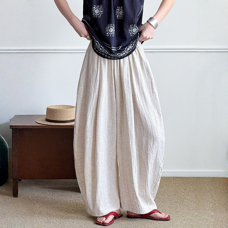【ボトムス】夏 ゆるっと ラミー 薄手 ウエストゴム パンツ【JZシリーズ】
