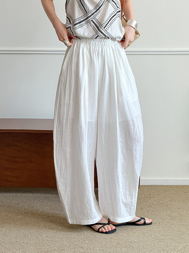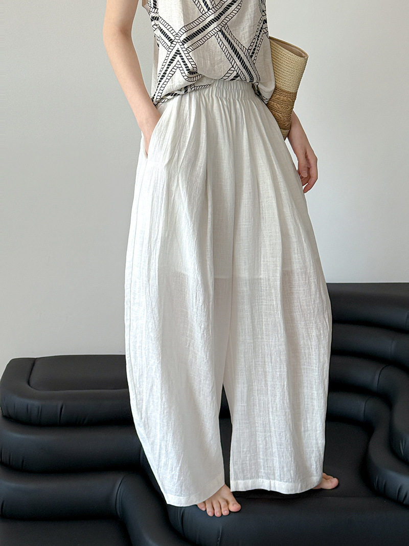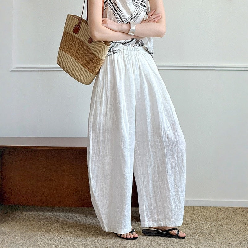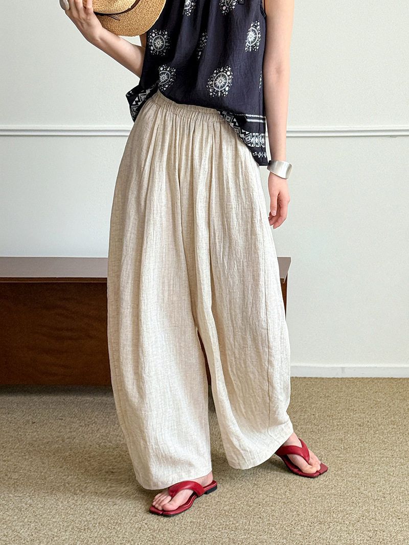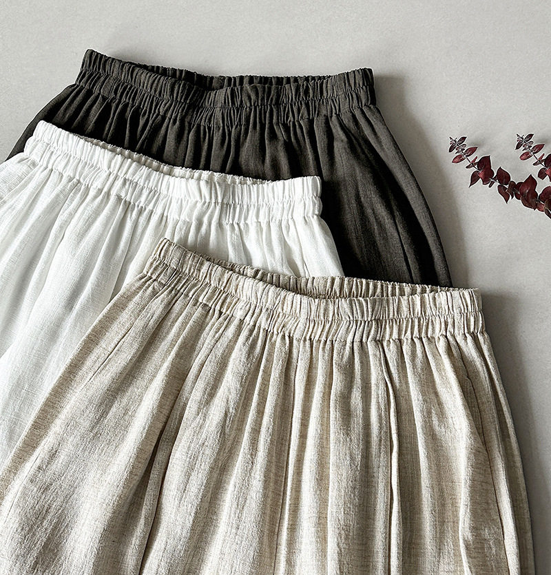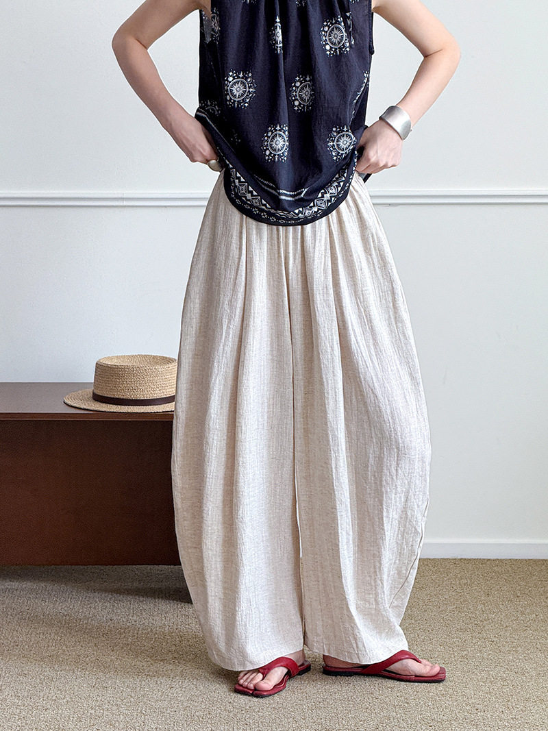 【ボトムス】夏 ゆるっと ラミー 薄手 ウエストゴム パンツ【JZシリーズ】