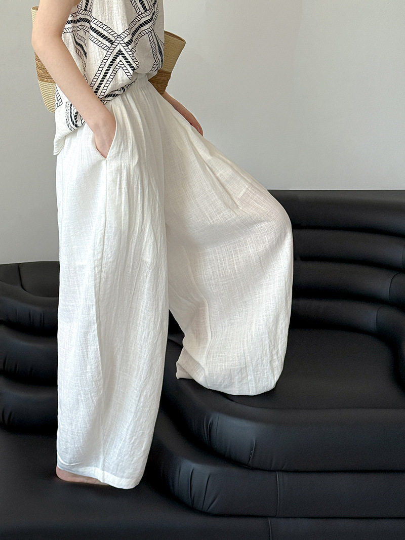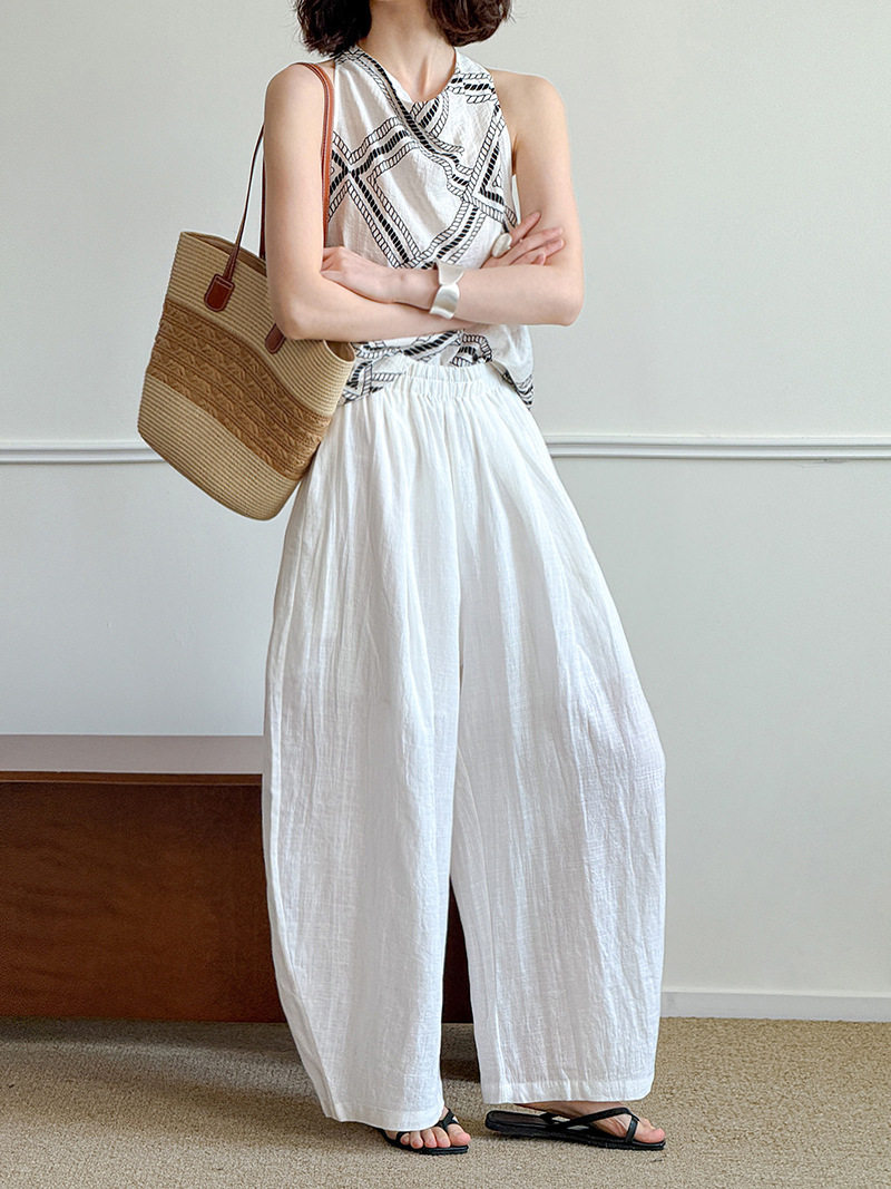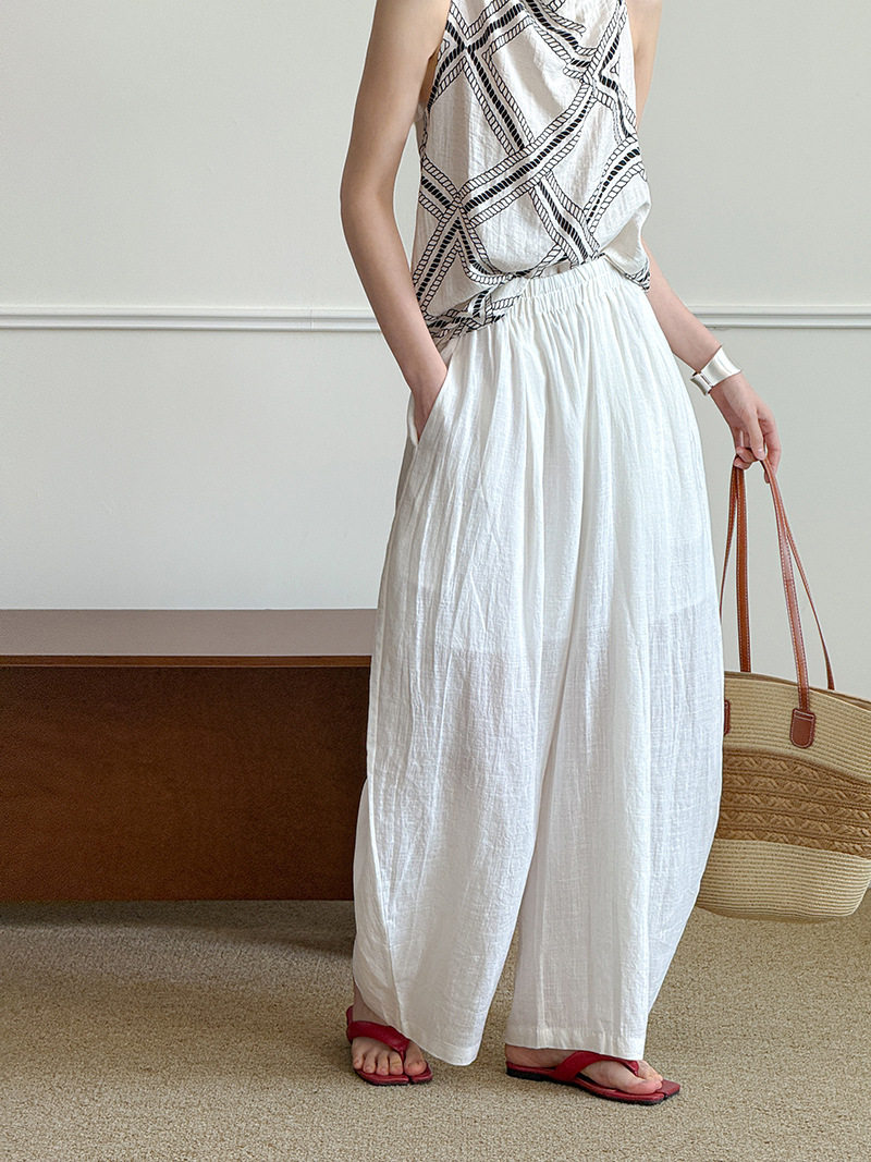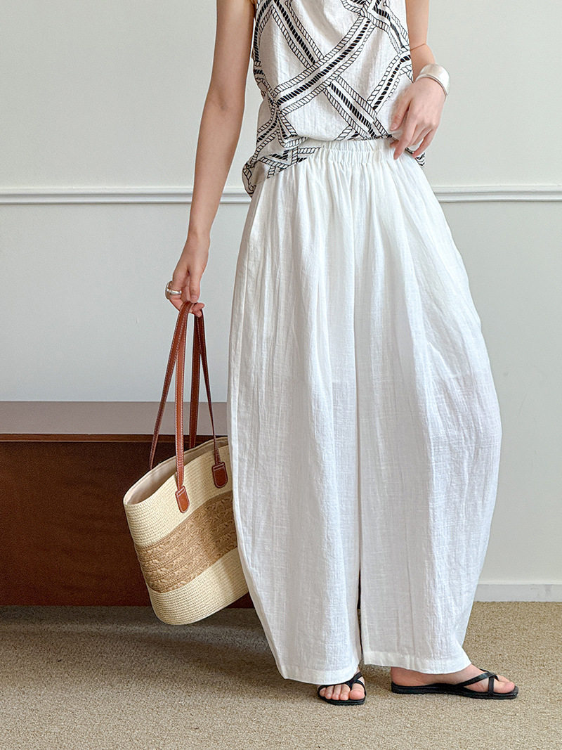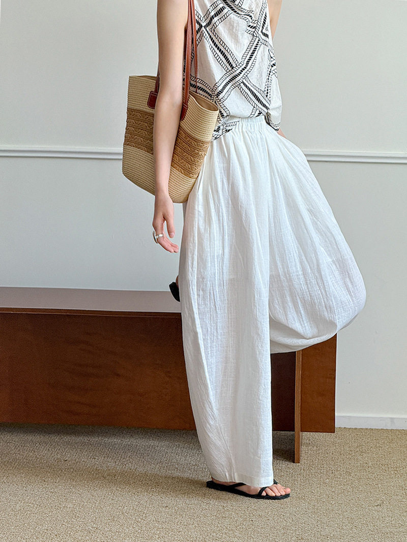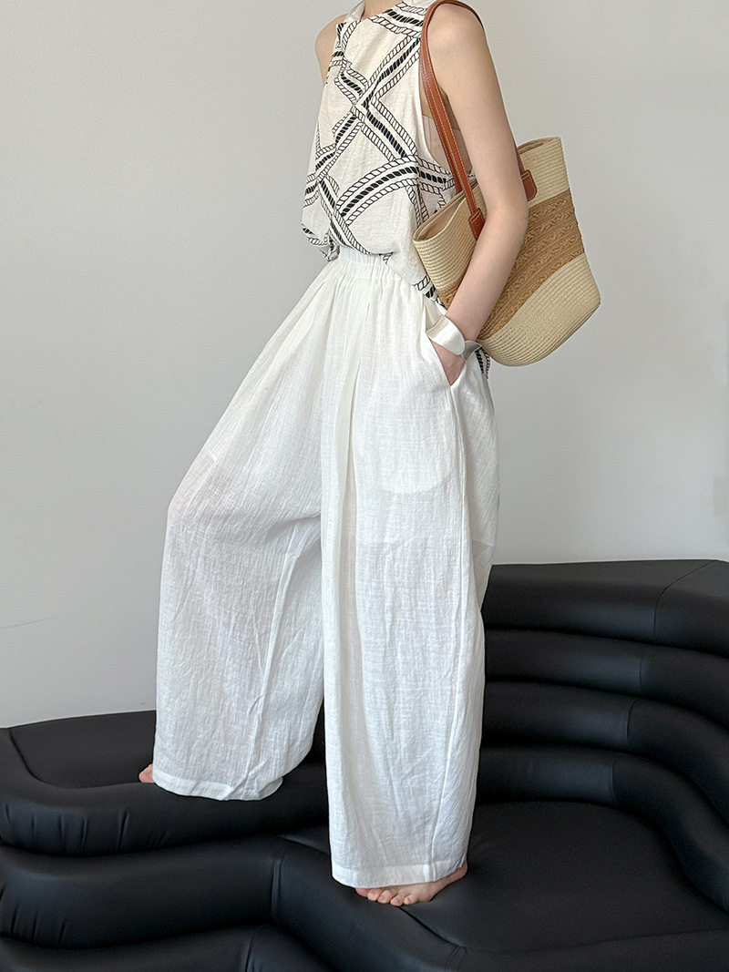 【ボトムス】夏 ゆるっと ラミー 薄手 ウエストゴム パンツ【JZシリーズ】