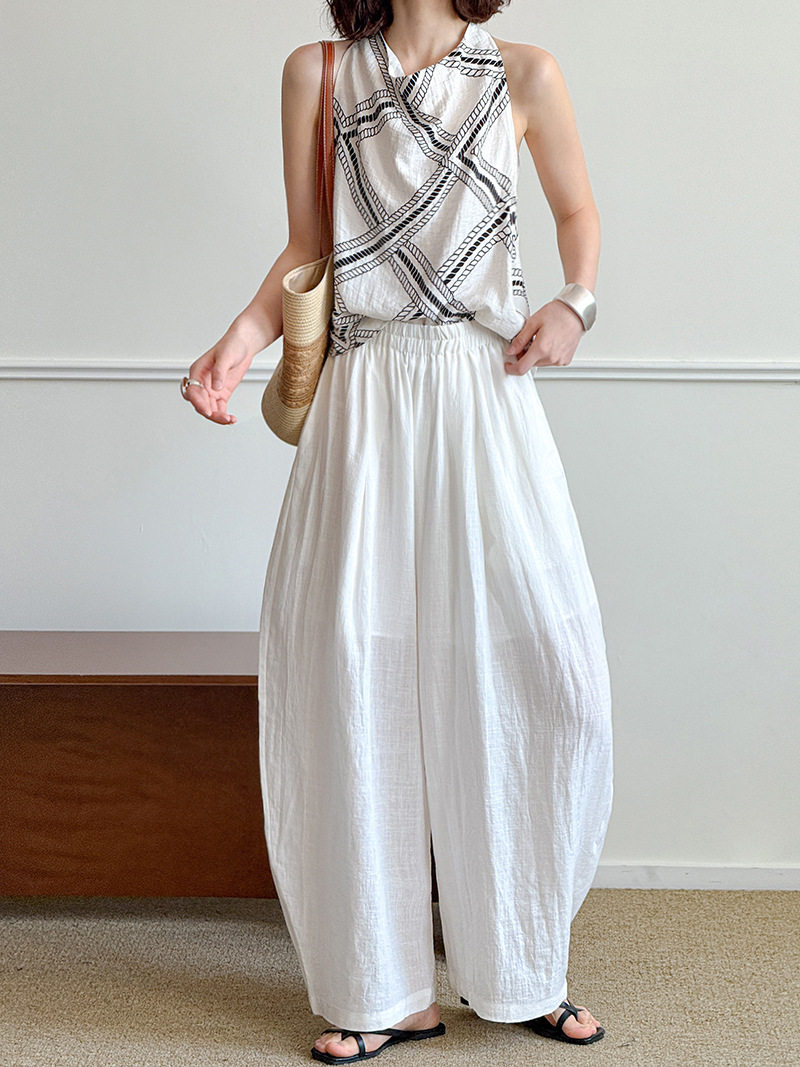 【商品名】【ボトムス】夏 ゆるっと ラミー 薄手 ウエストゴム パンツ【JZシリーズ】