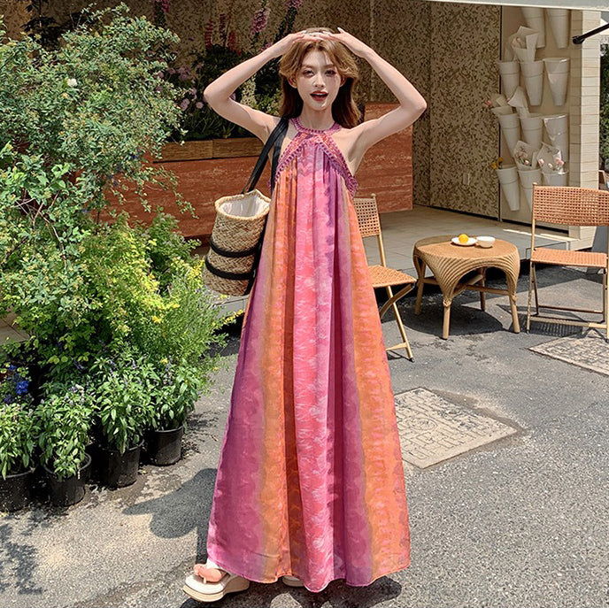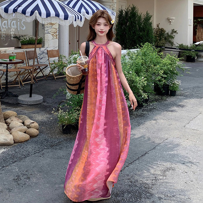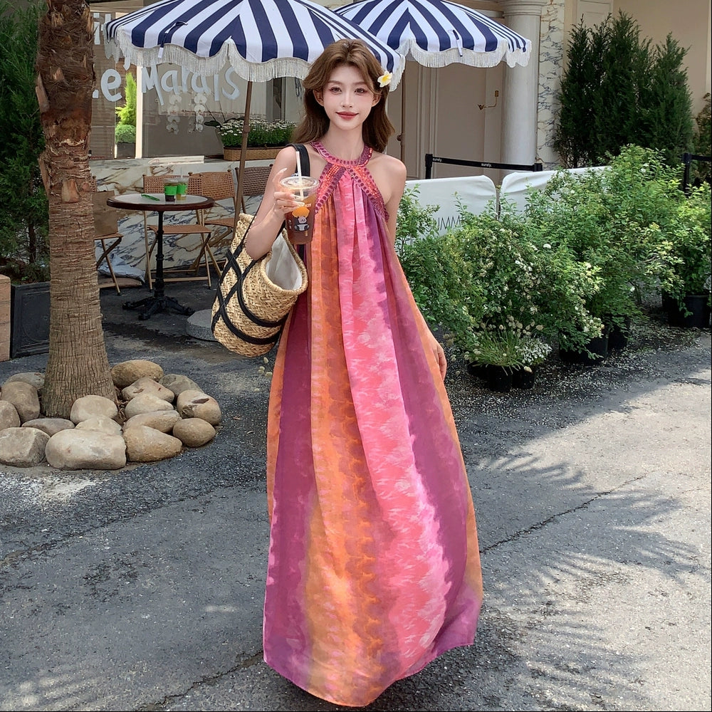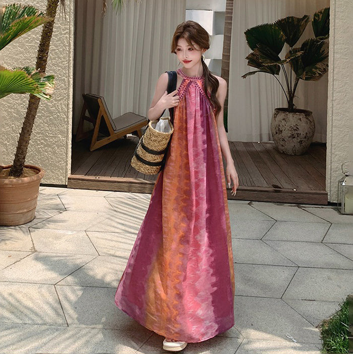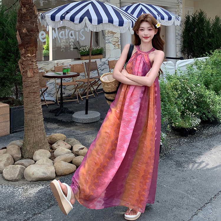 【ワンピース】夏新作 タイダイ柄 ノースリーブワンピース リゾート感満載 旅行コーデにぴったり【SHシリーズ】