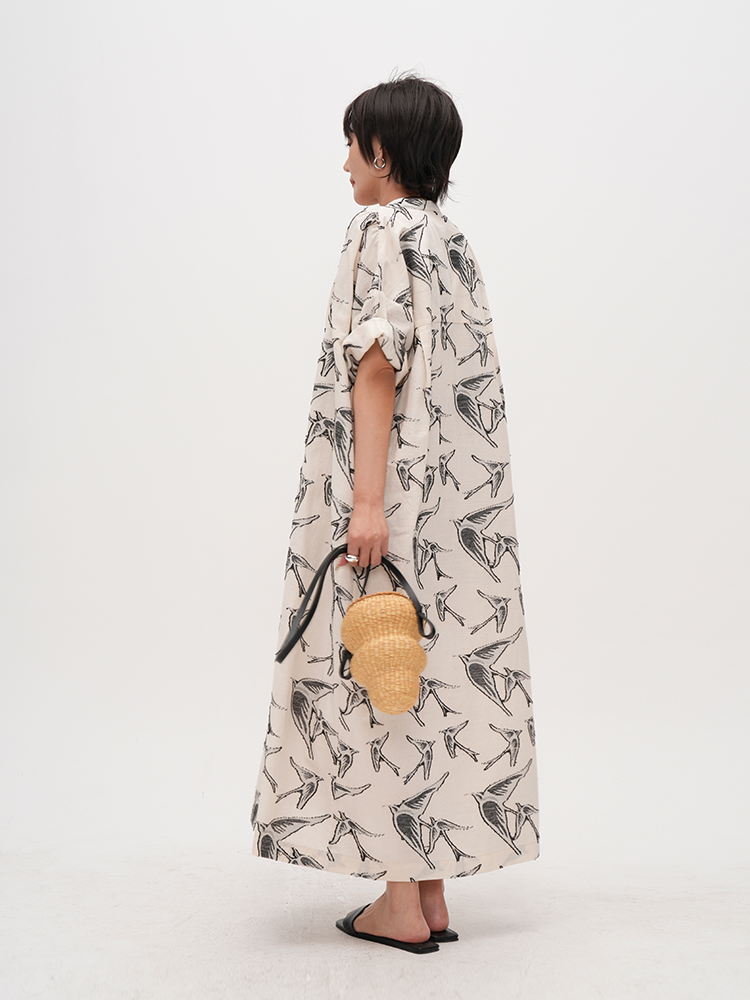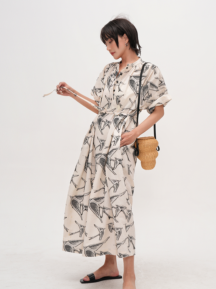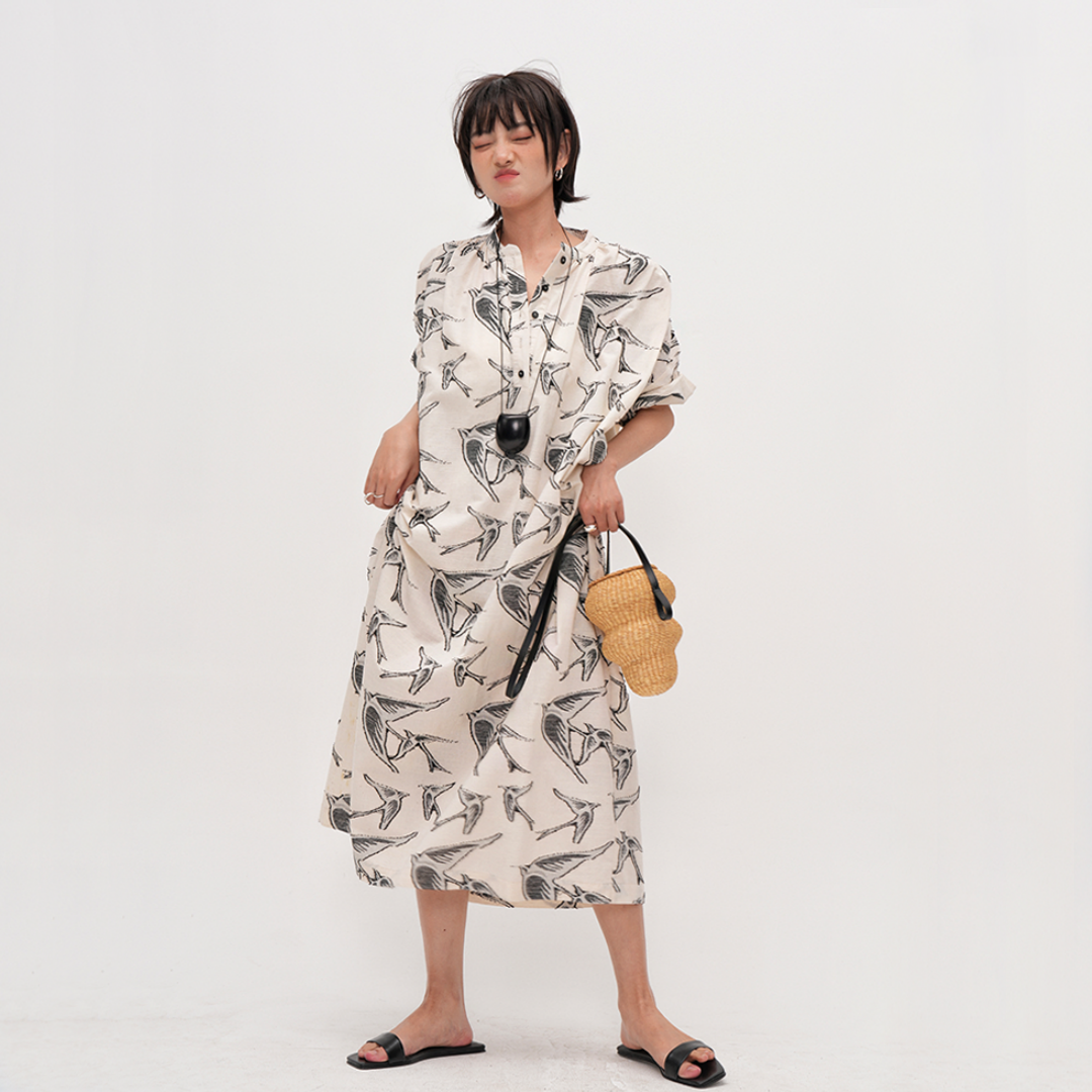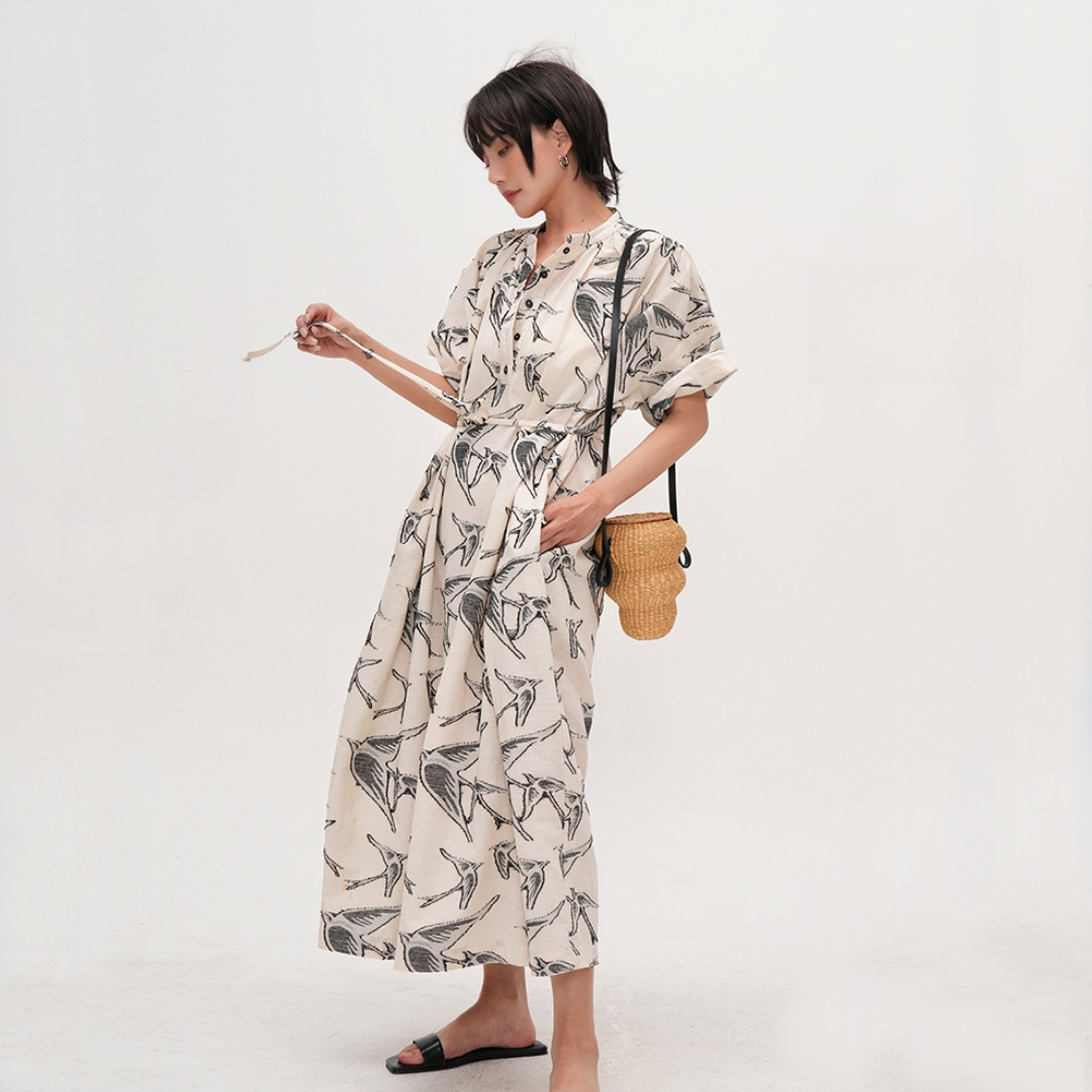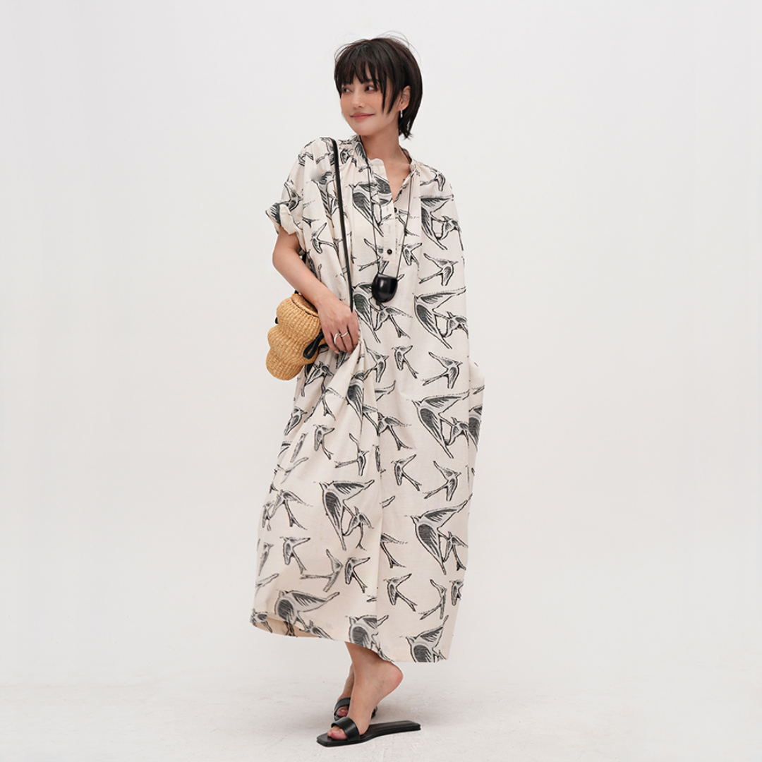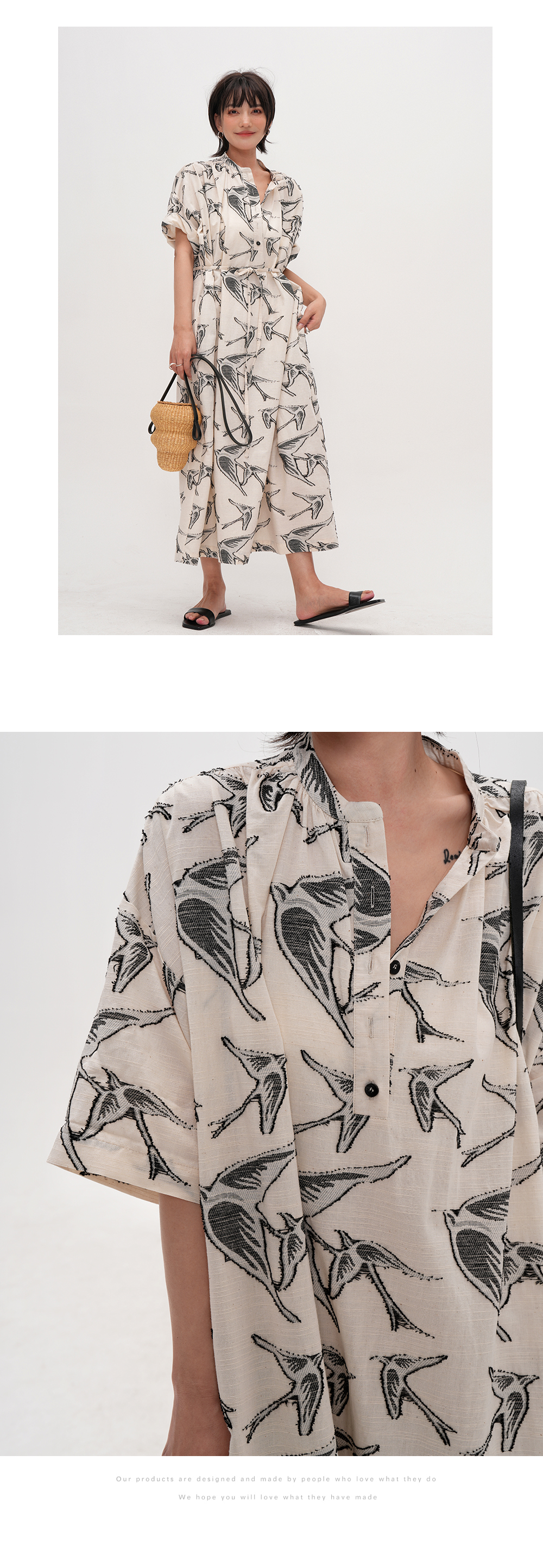 【ワンピース】夏 先染め 立体ジャカード ルーズ 半袖 ワンピース 【SHシリーズ】