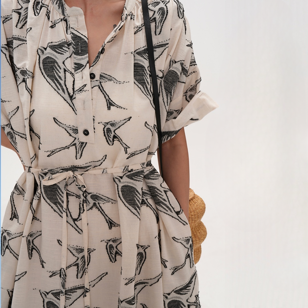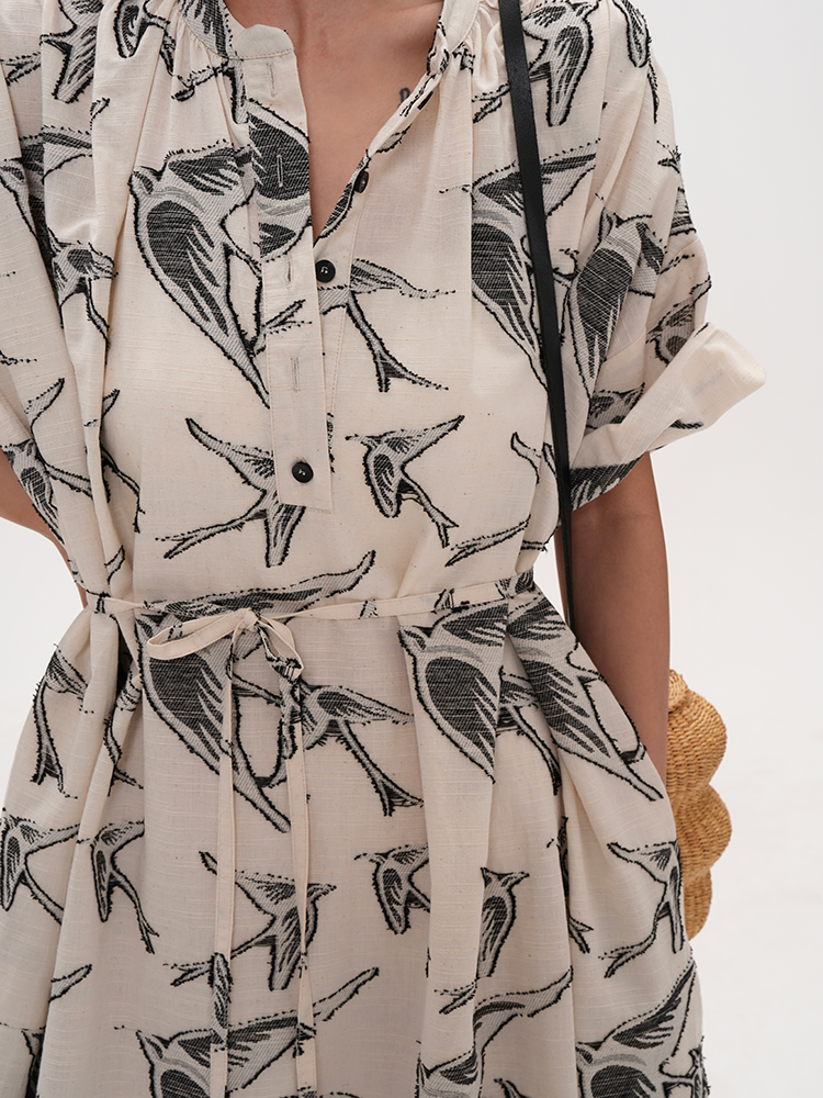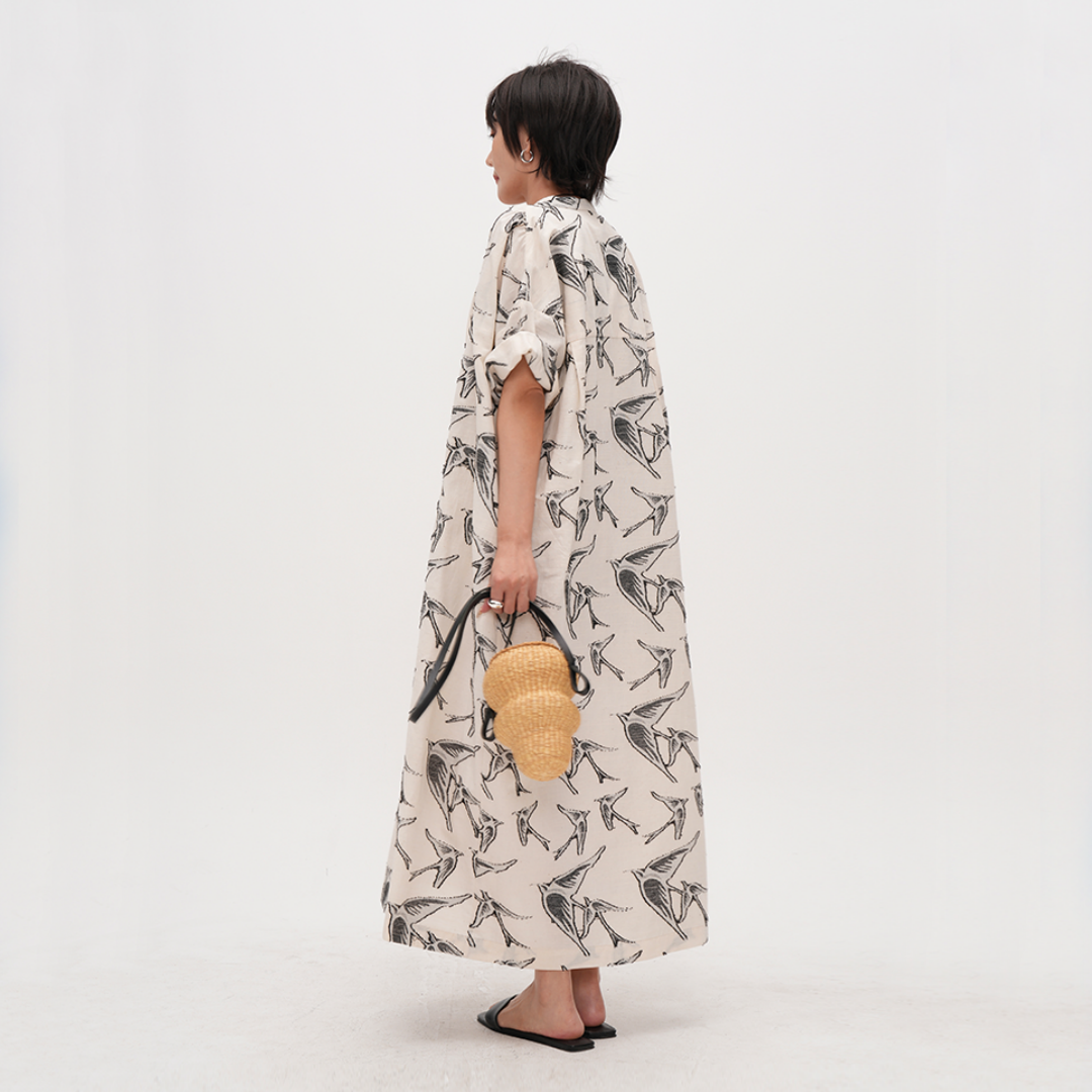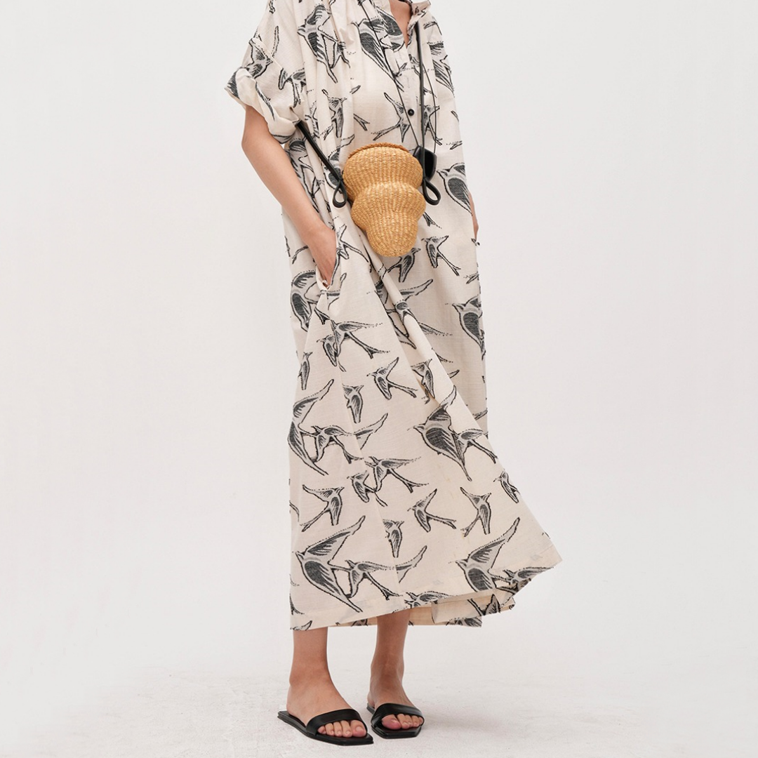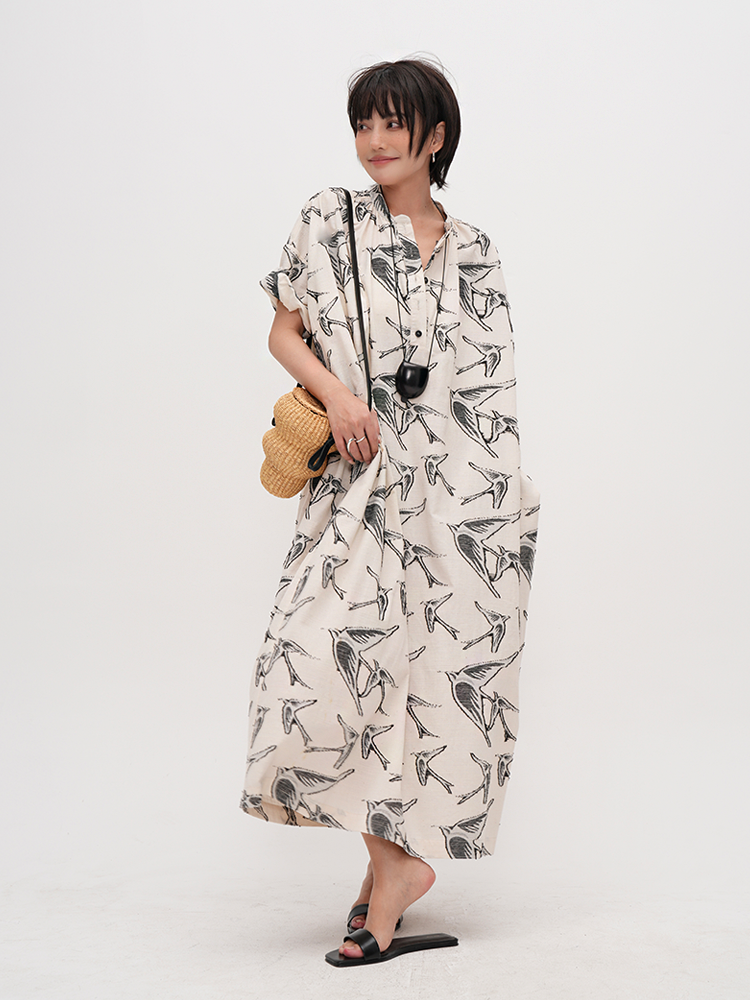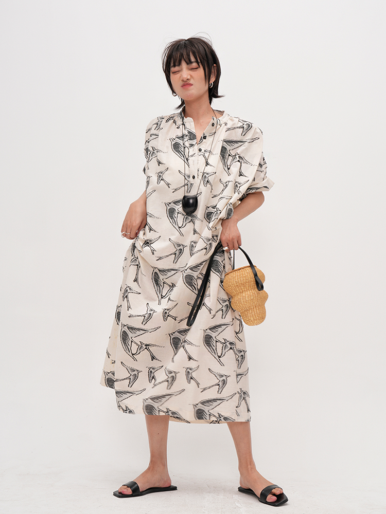 【ワンピース】夏 先染め 立体ジャカード ルーズ 半袖 ワンピース 【SHシリーズ】
