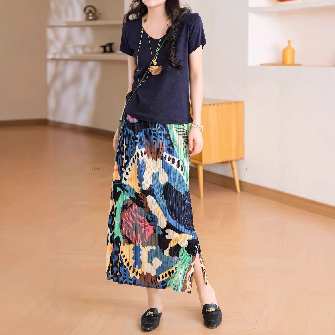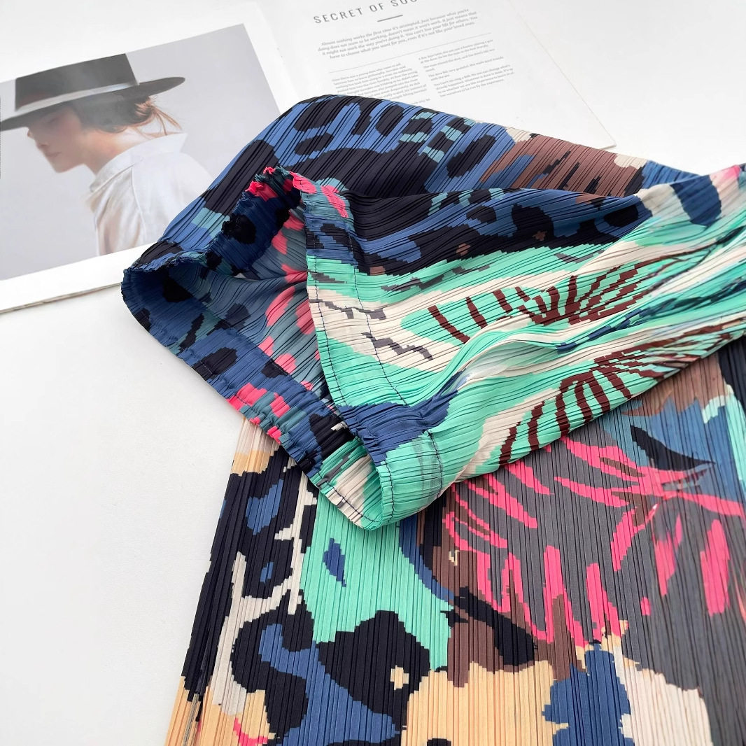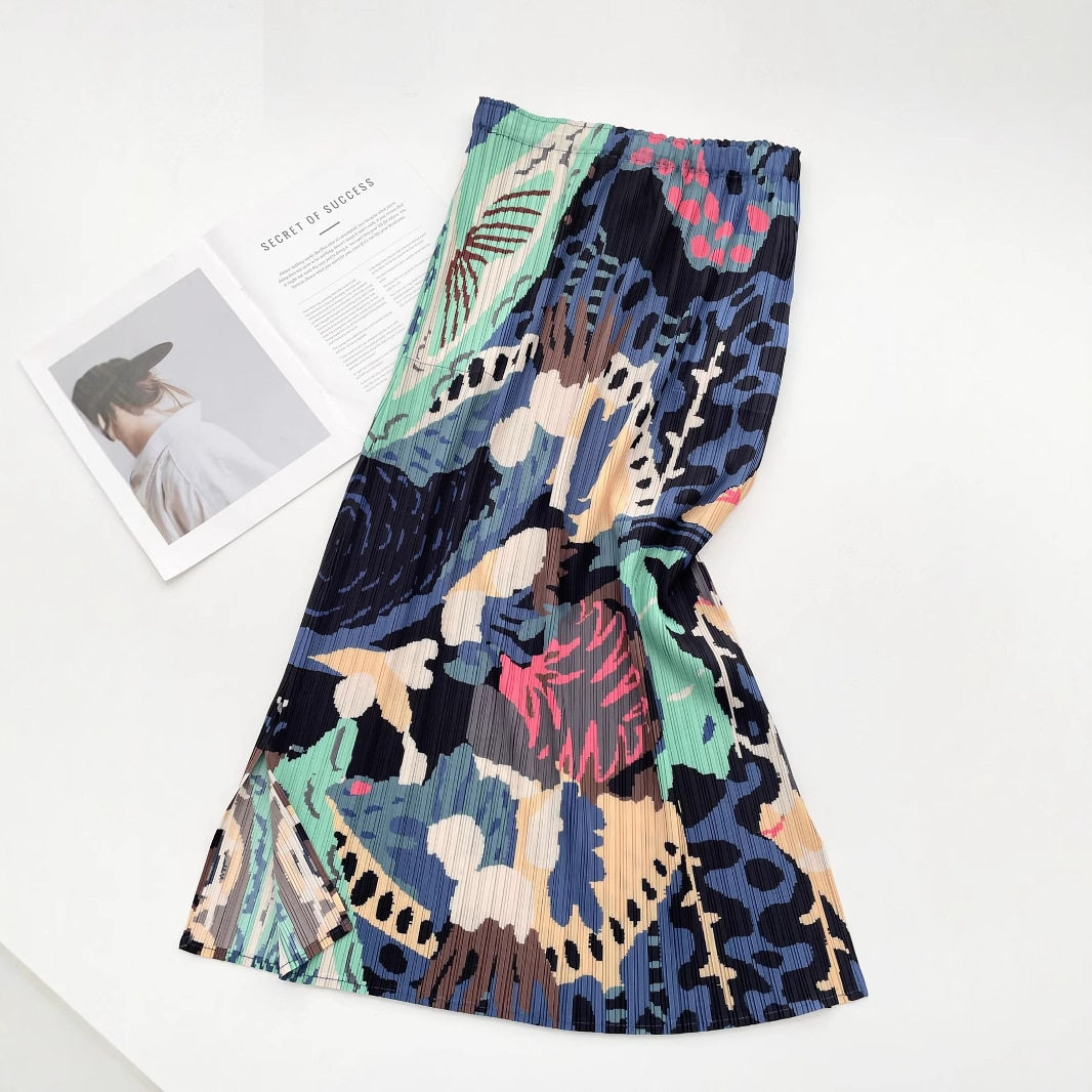 【商品名】【ボトムス】レトロ気質 夏 プリーツ加工 グリーンフォレストプリントスカート 落ち着いた雰囲気【SHシリーズ】