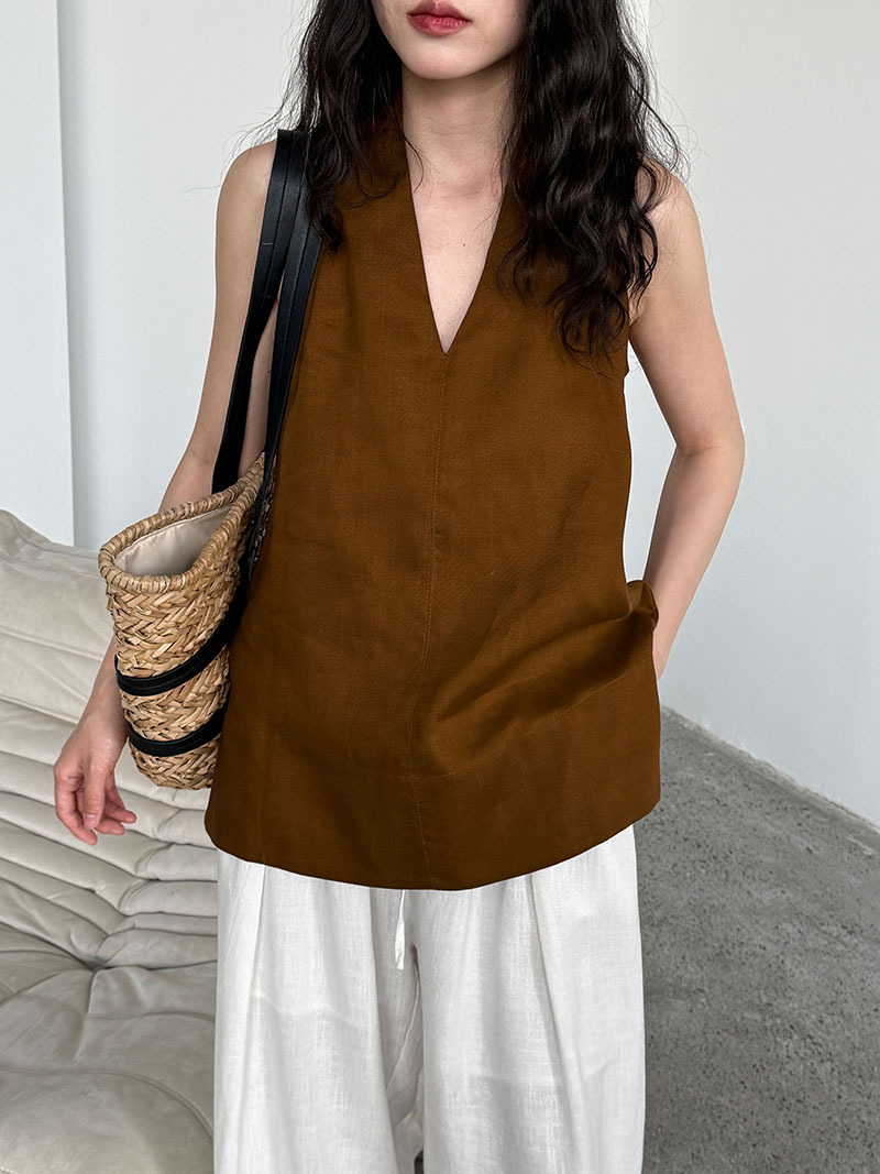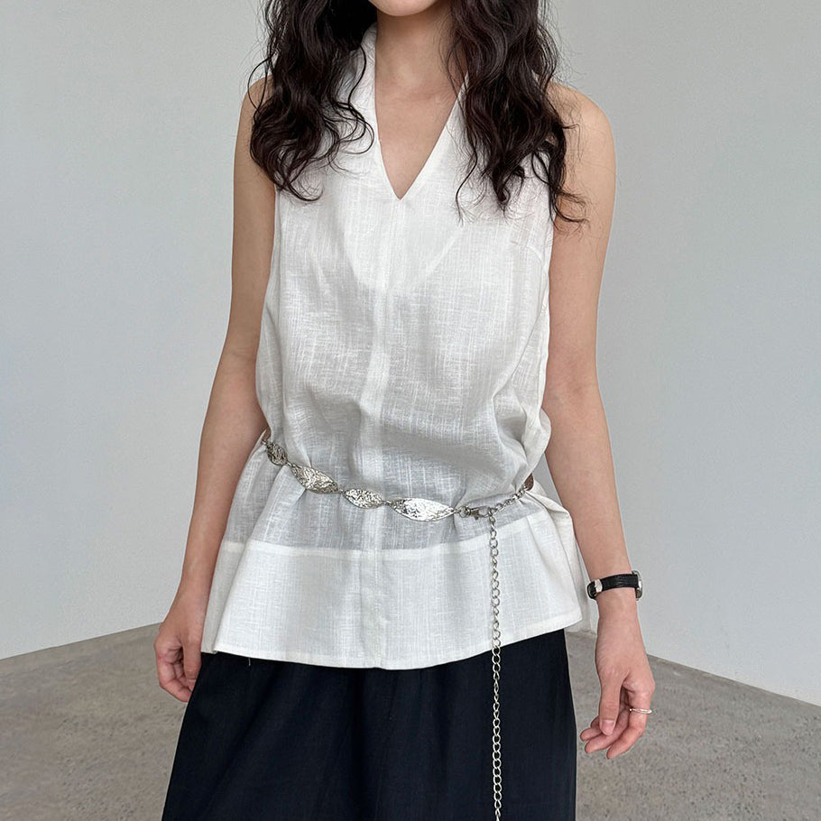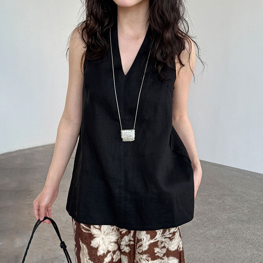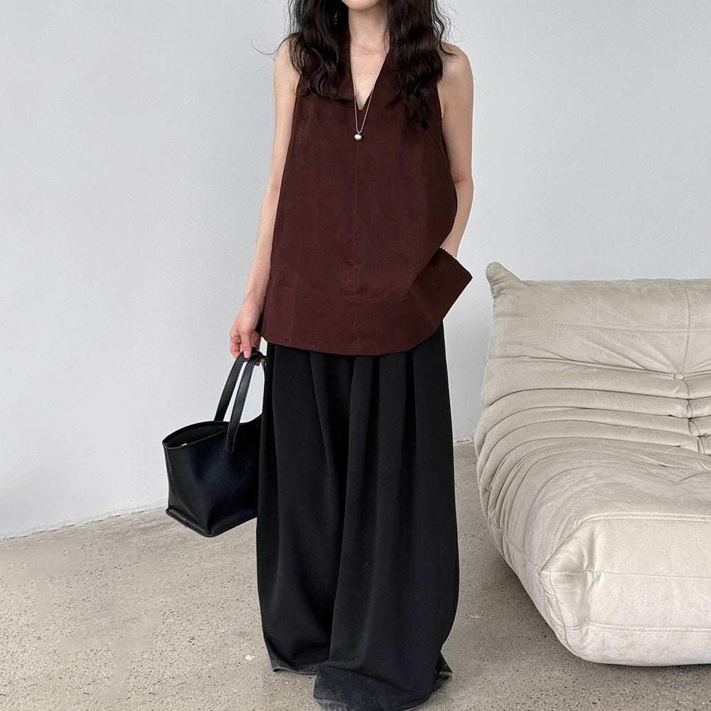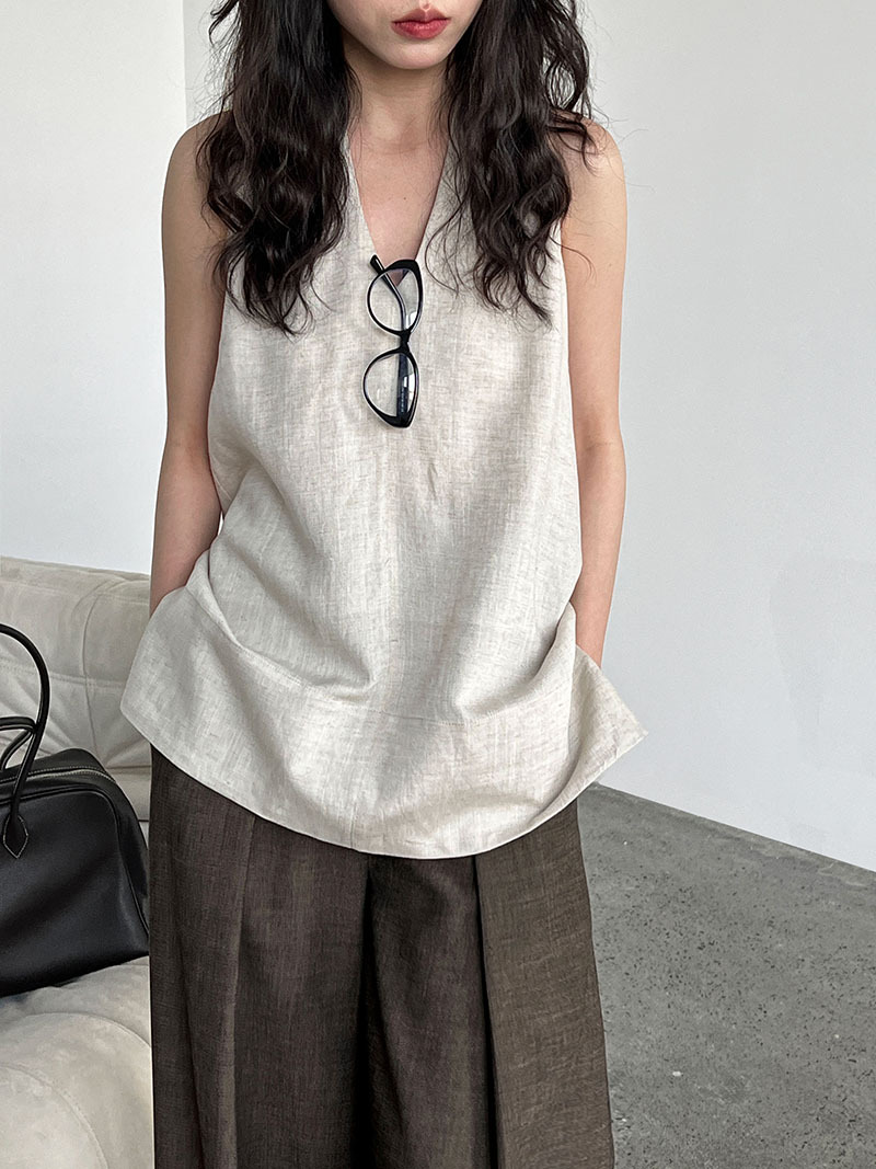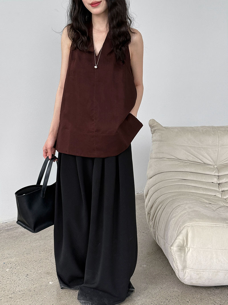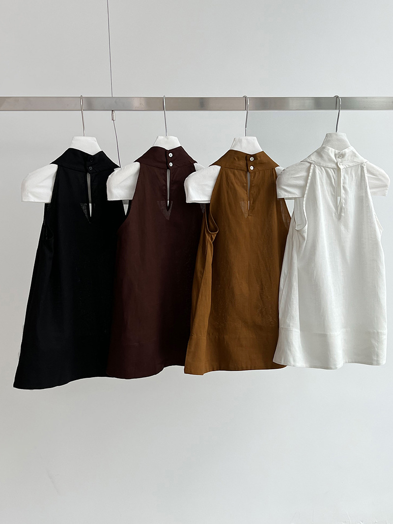 【トップス】デザイン性のある ハイネック 夏の涼感 リラックス Vネック ノースリーブブラウス【JZシリーズ】