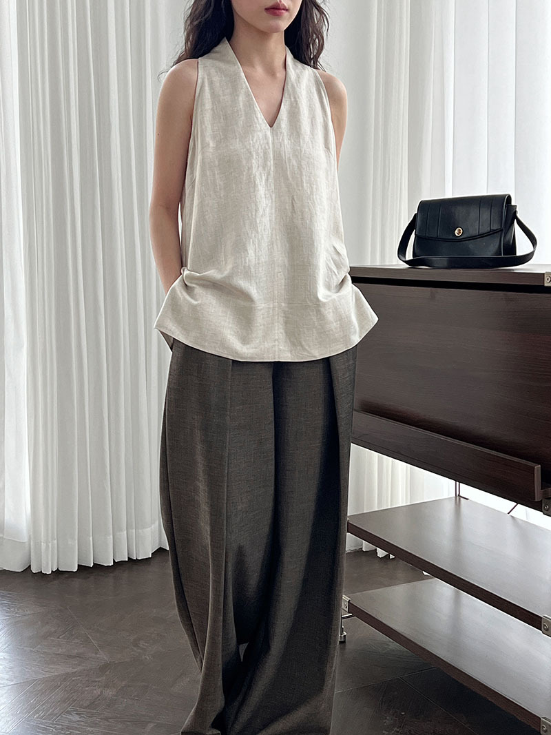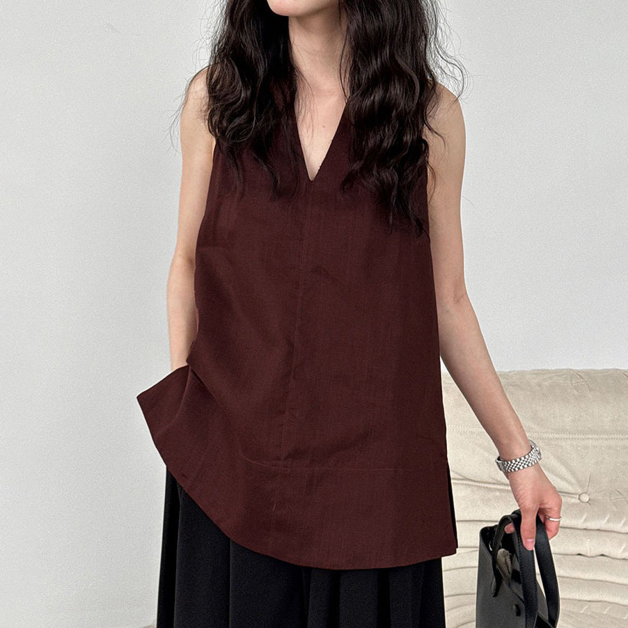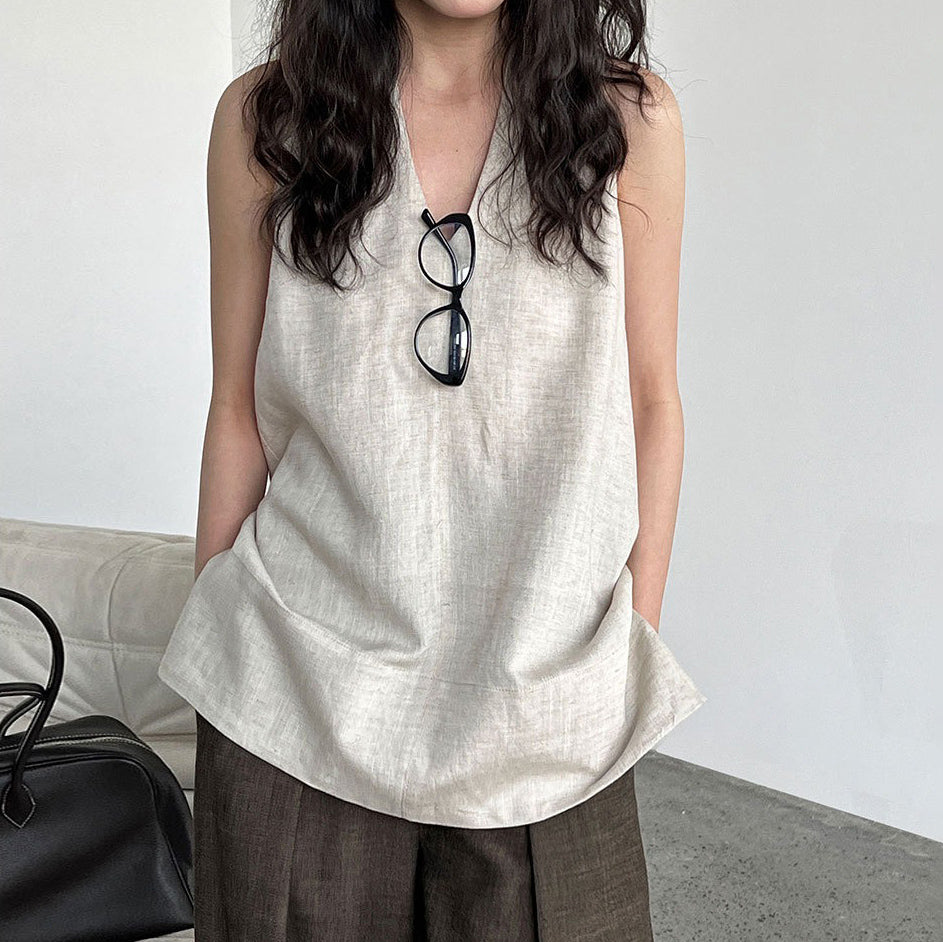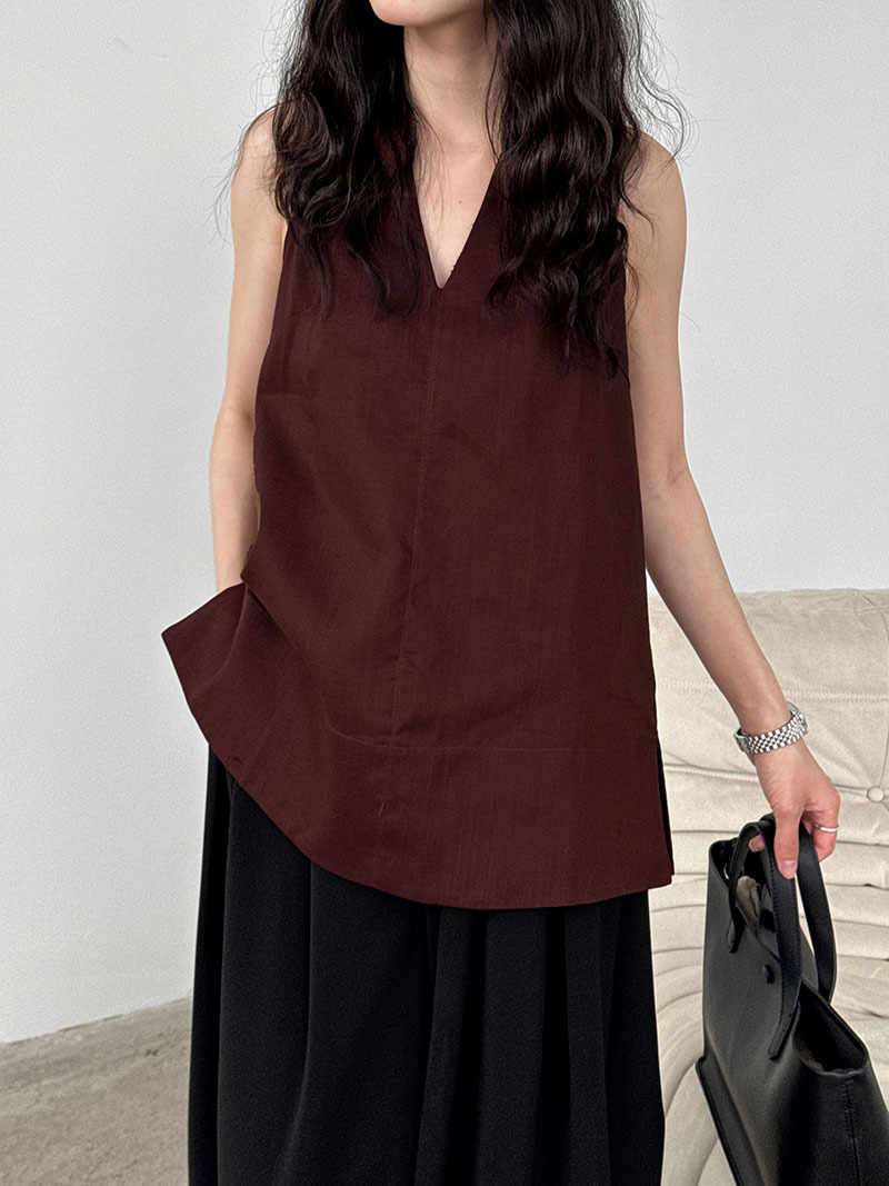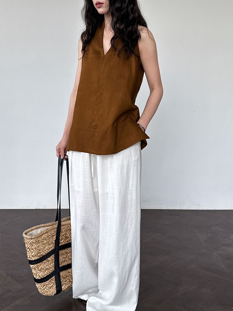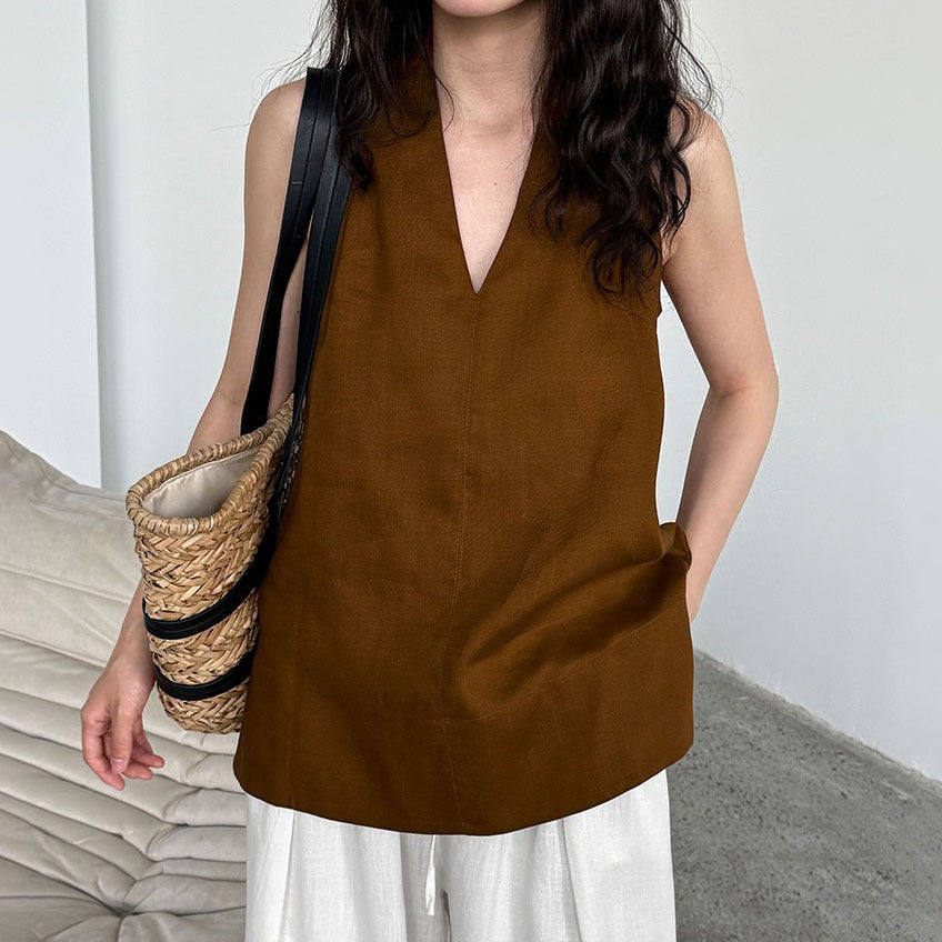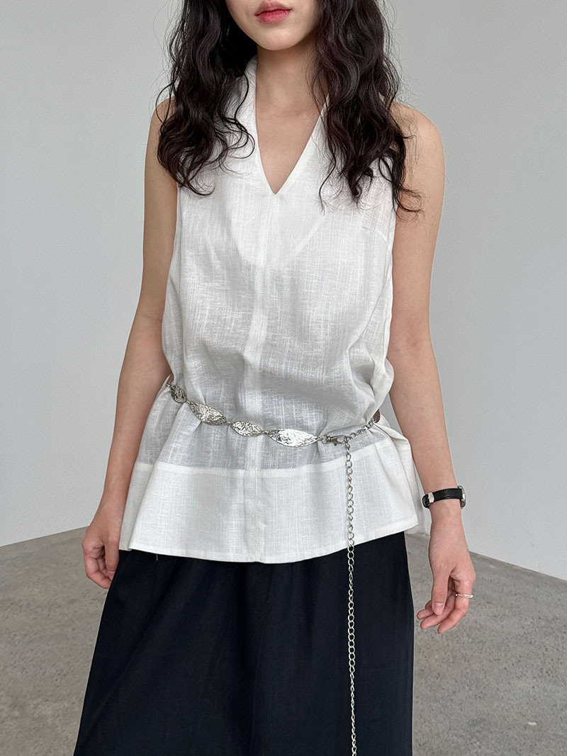 【トップス】デザイン性のある ハイネック 夏の涼感 リラックス Vネック ノースリーブブラウス【JZシリーズ】
