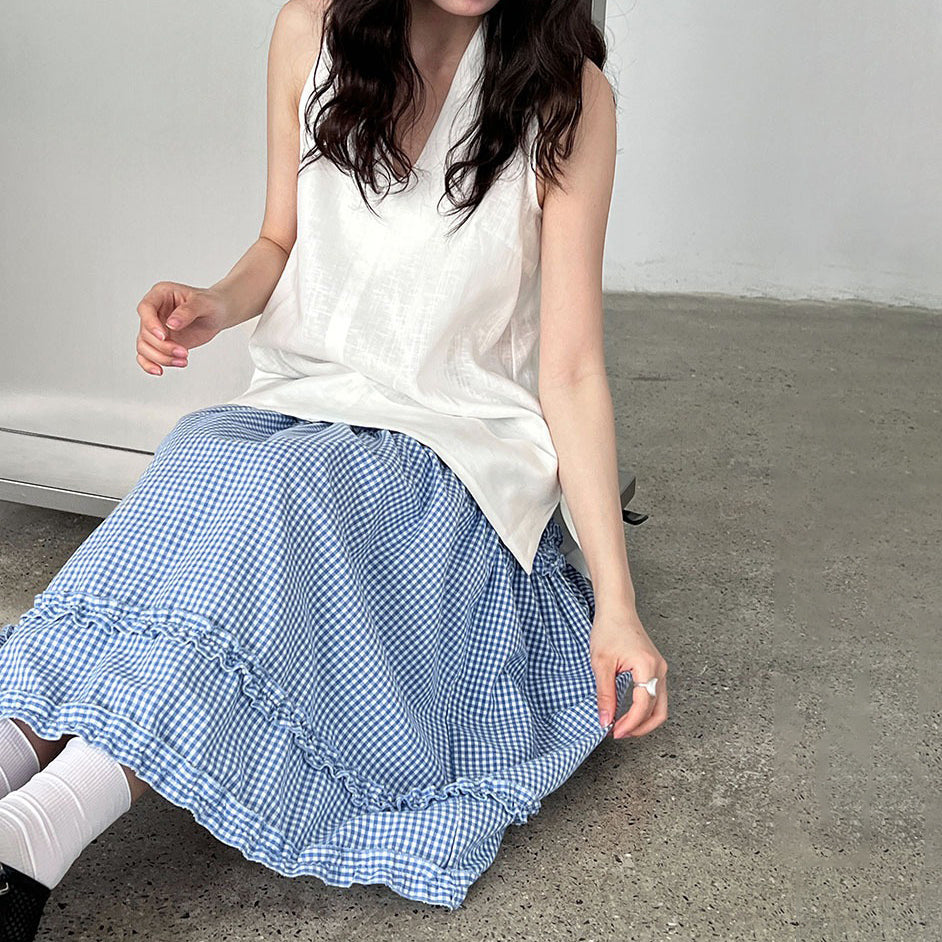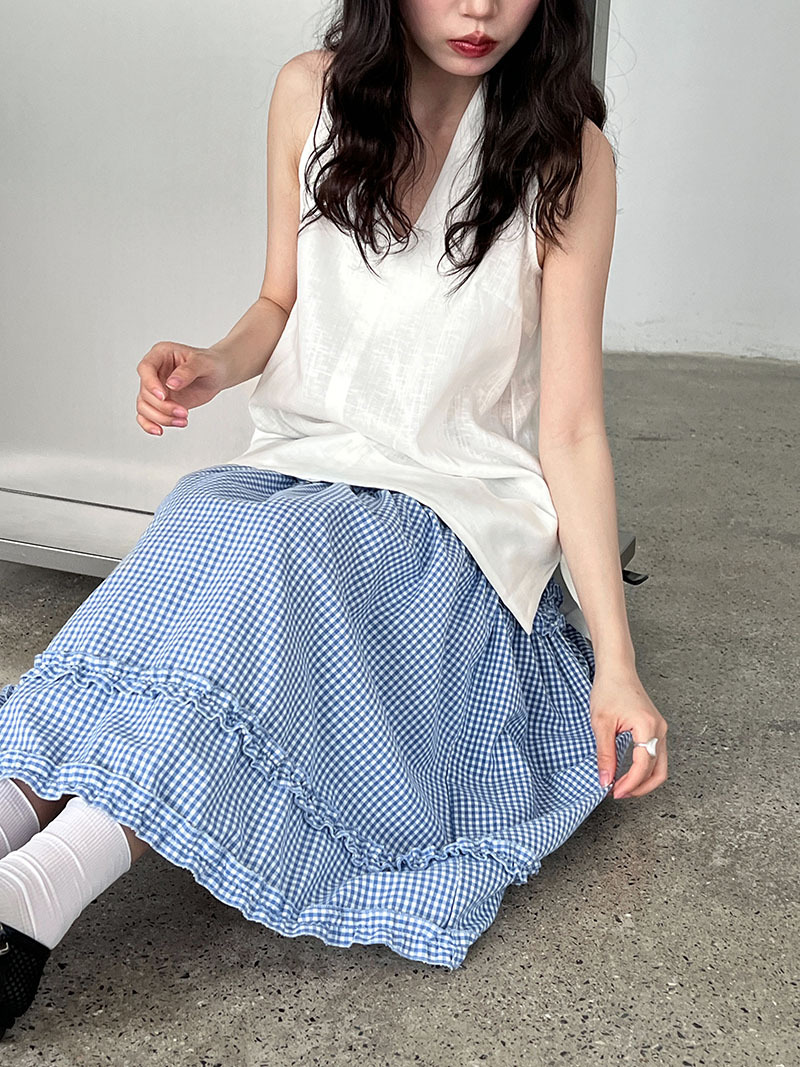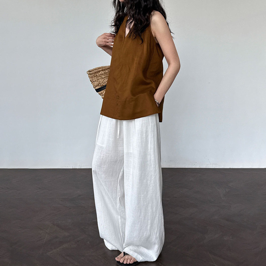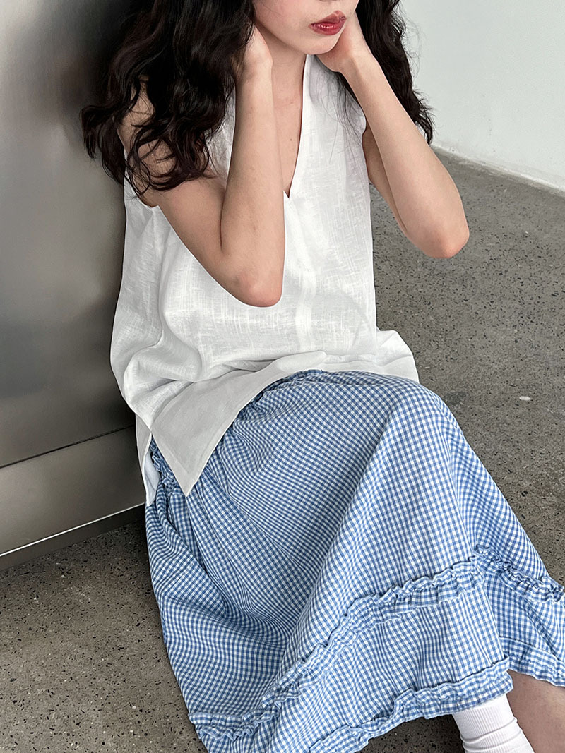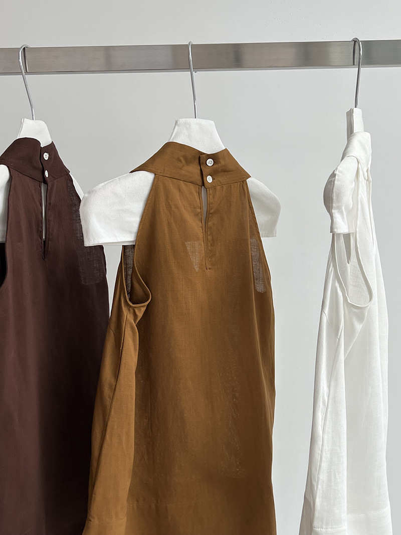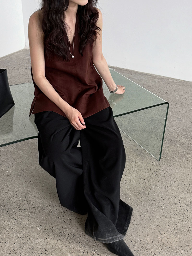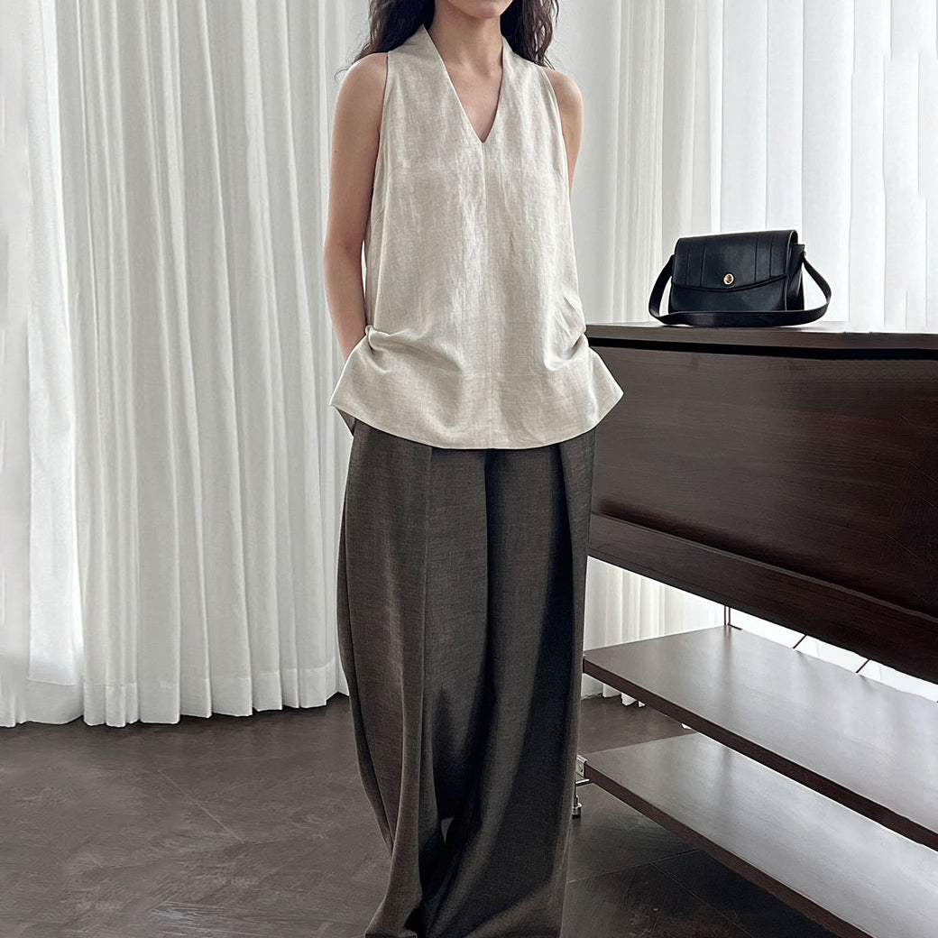 【トップス】デザイン性のある ハイネック 夏の涼感 リラックス Vネック ノースリーブブラウス【JZシリーズ】