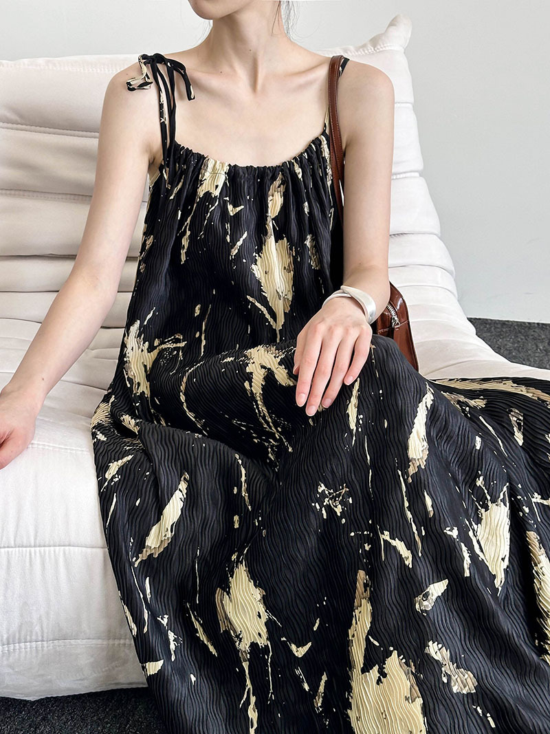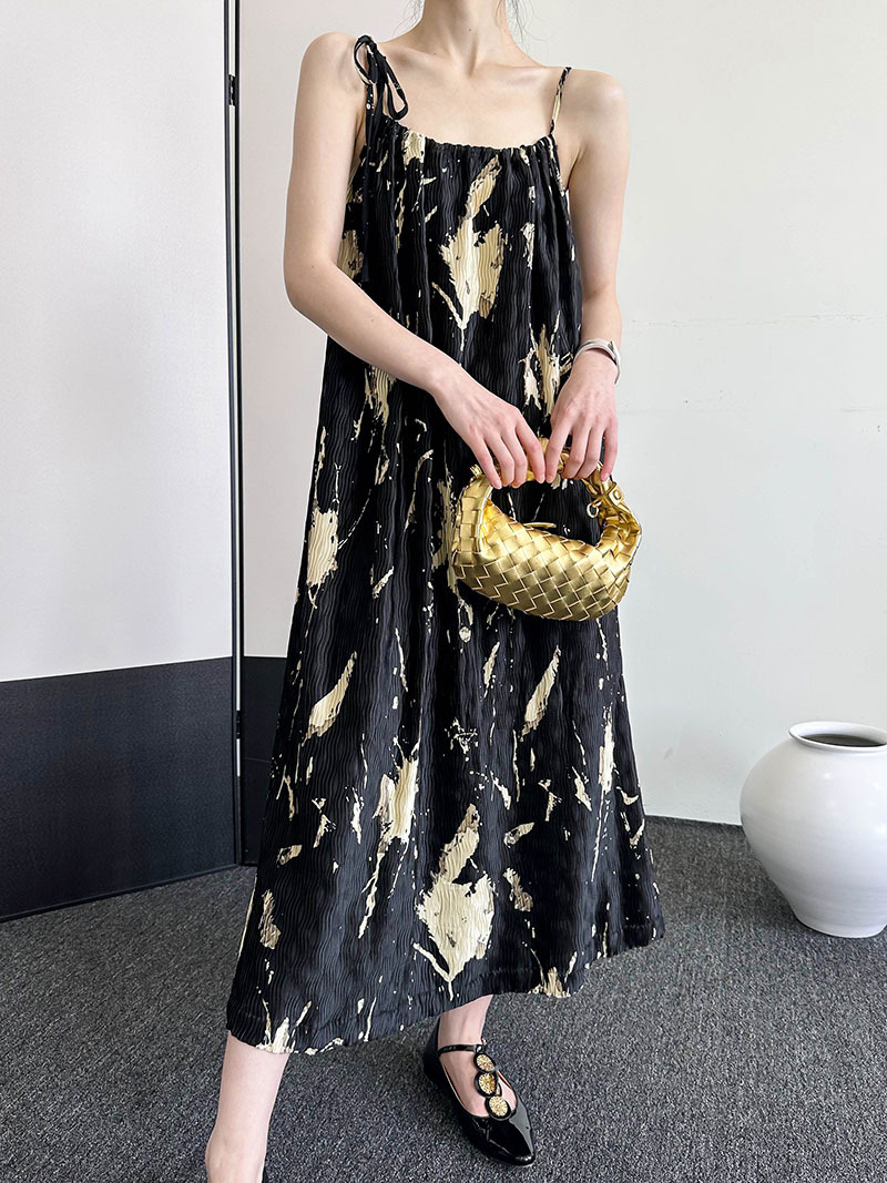 【商品名】【ワンピース】夏 韓国風 花柄 レトロ ゆったり ドレープ ノースリーブ ワンピース【JZシリーズ】【SHシリーズ】