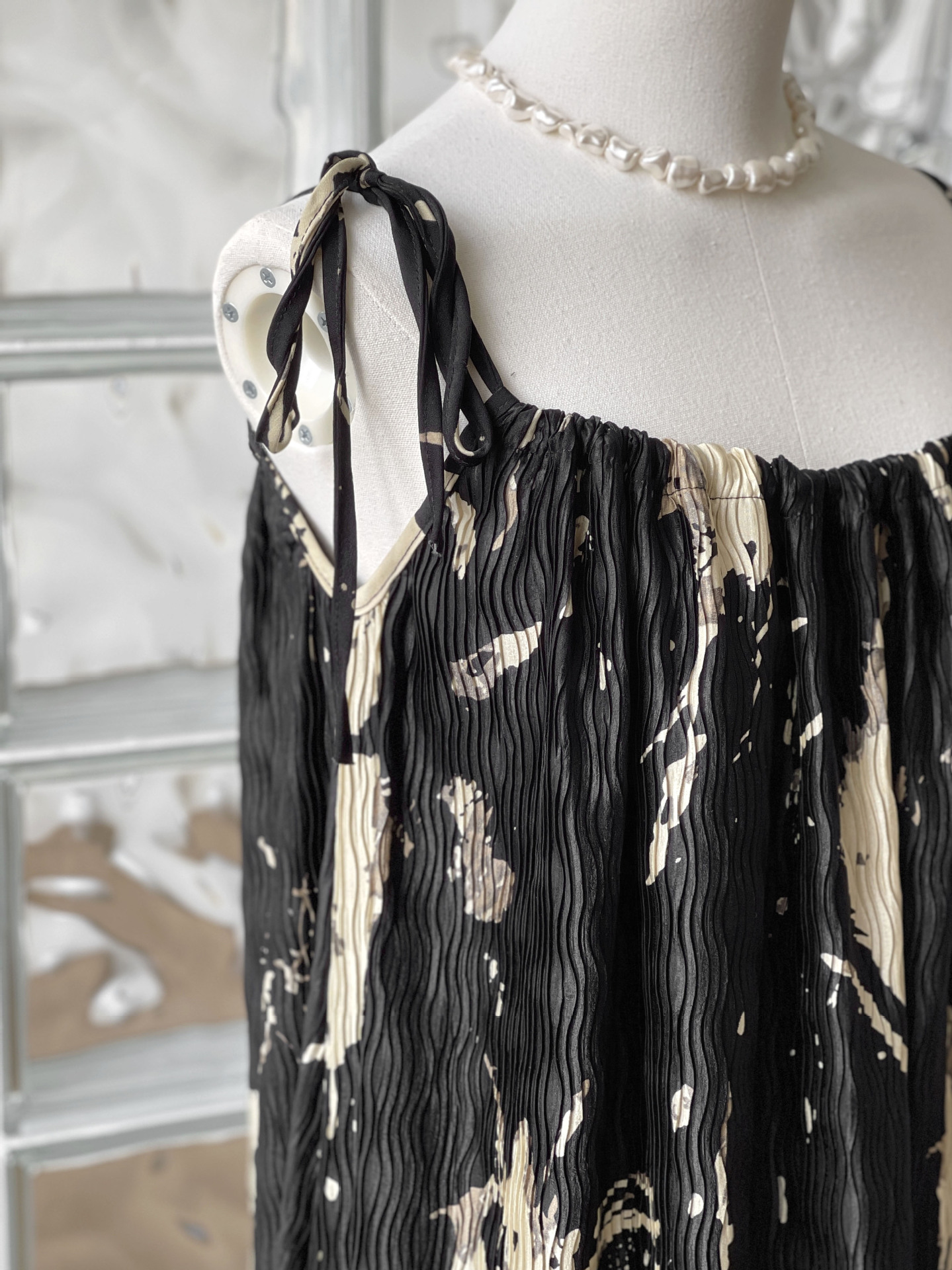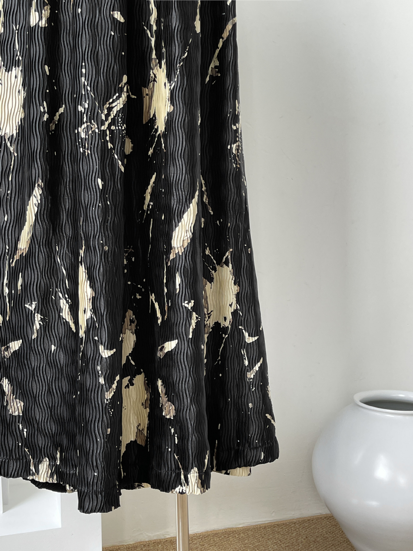 【ワンピース】ブラック&ホワイト ブラック&ホワイト プリント 長袖 ワンピース 【SHシリーズ】