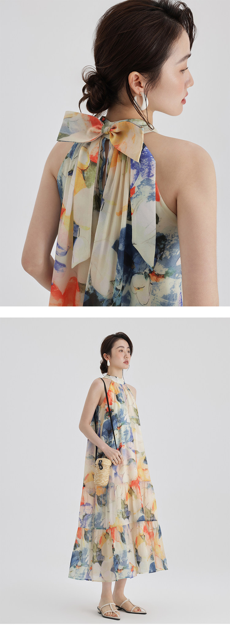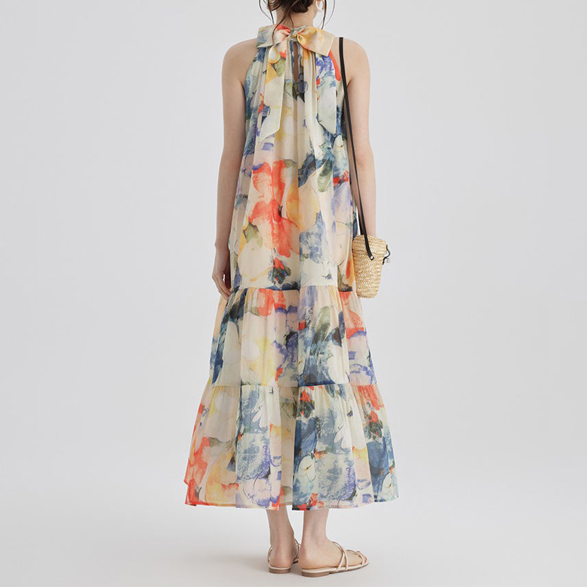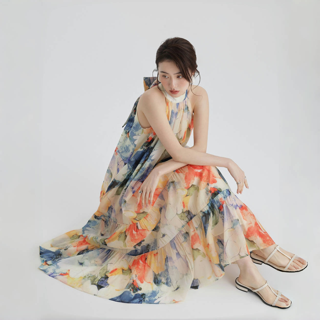 【ワンピース】海辺リゾート気質 フレンチプリント 高級感 ノースリーブワンピース【SHシリーズ】