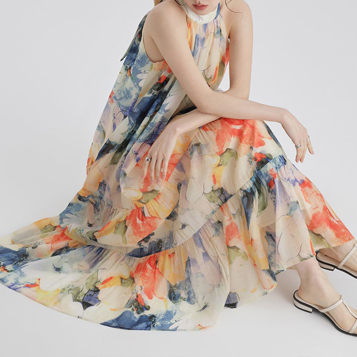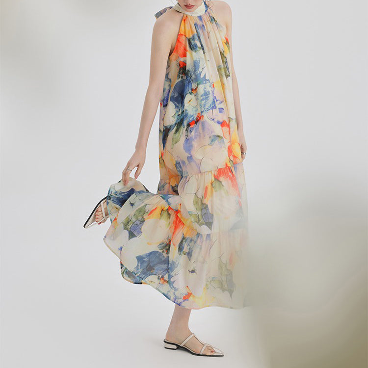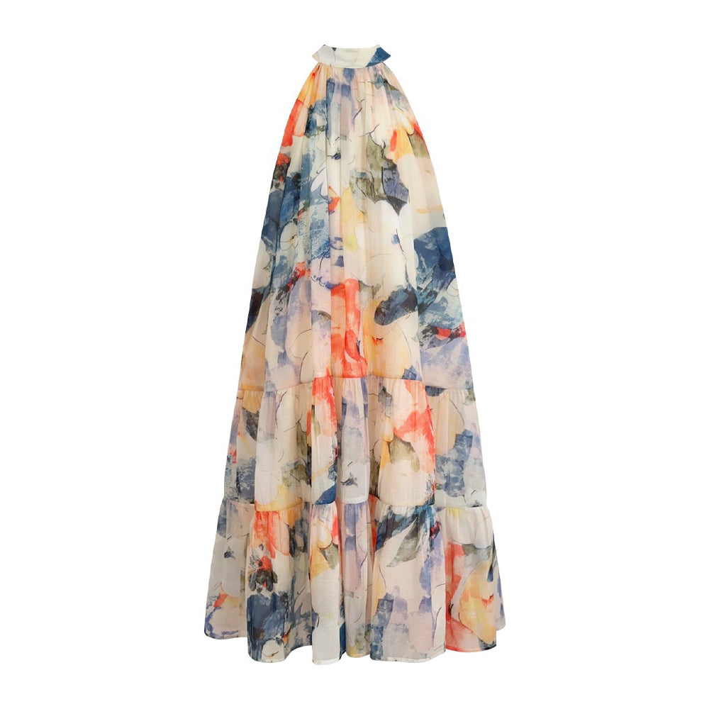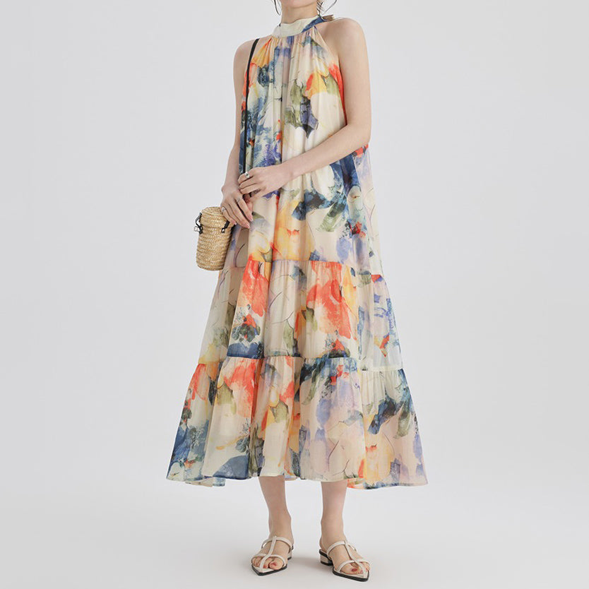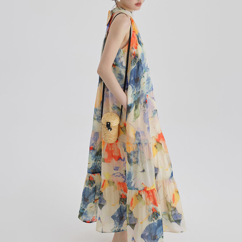 【商品名】【ワンピース】海辺リゾート気質 フレンチプリント 高級感 ノースリーブワンピース【SHシリーズ】
