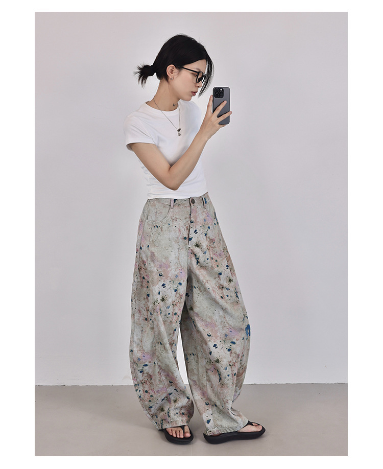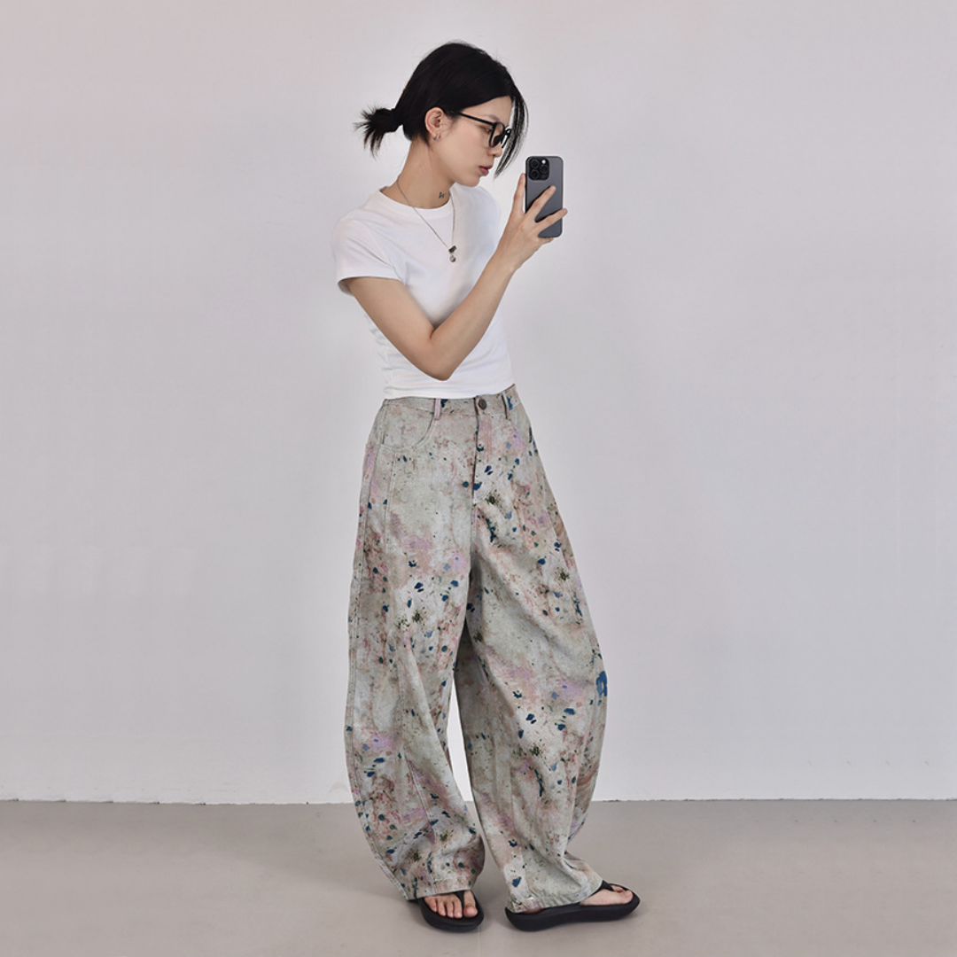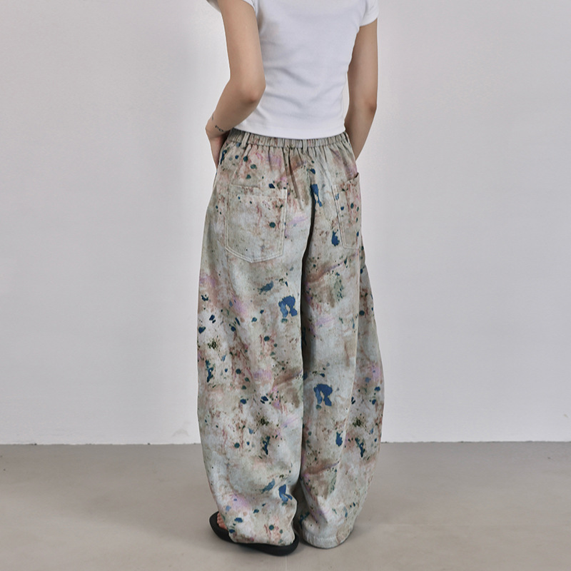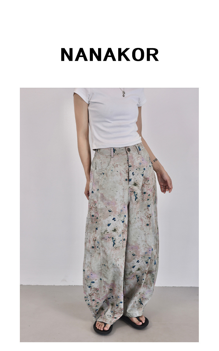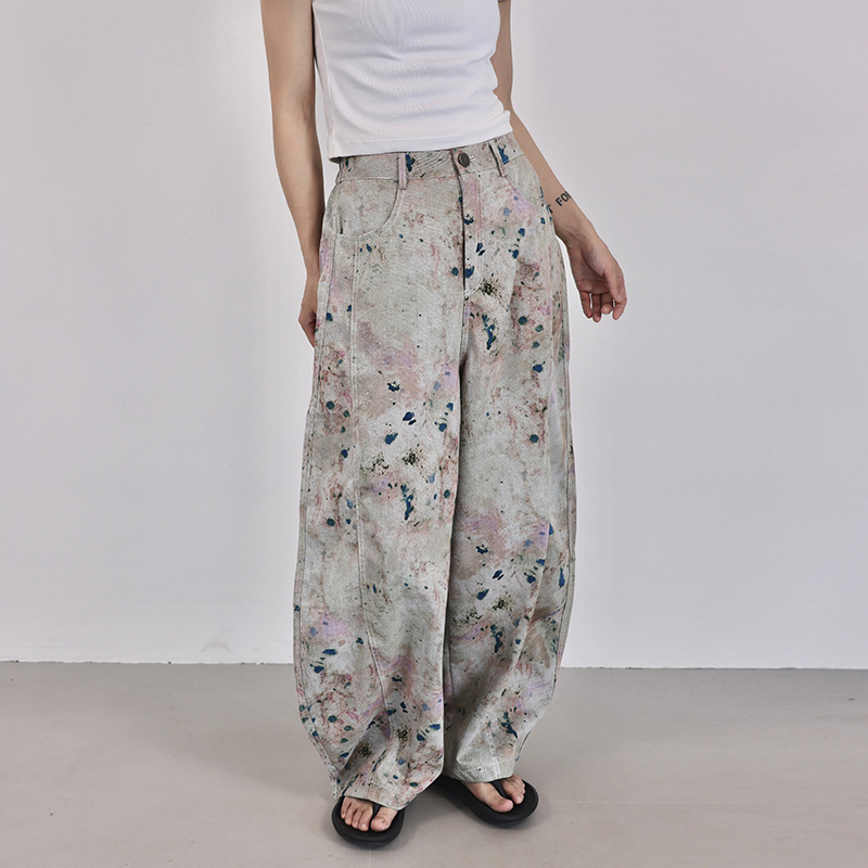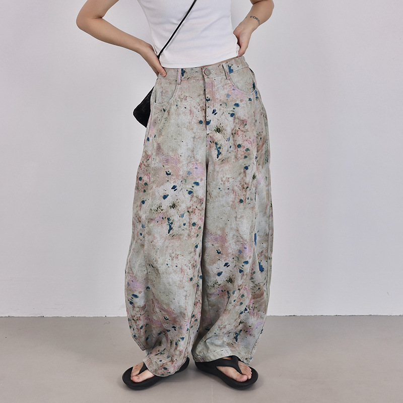 【商品名】【ボトムス】夏 ムラ染め セーバーパンツ風 デニム バナナパンツ 【SHシリーズ】