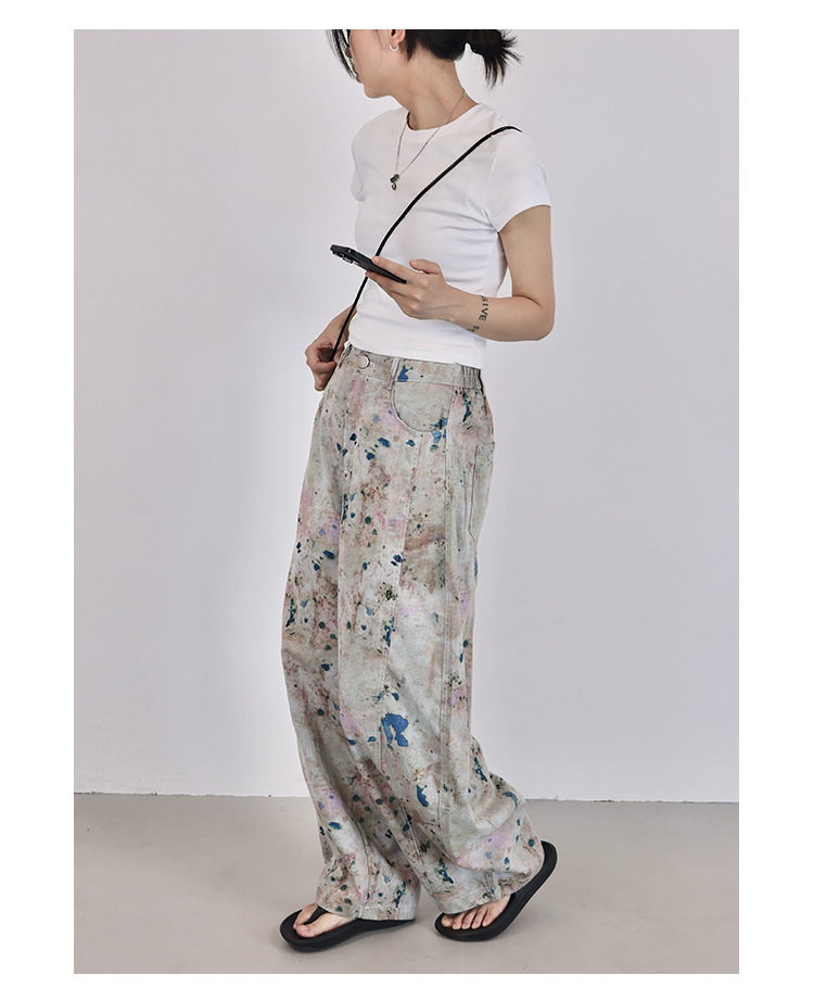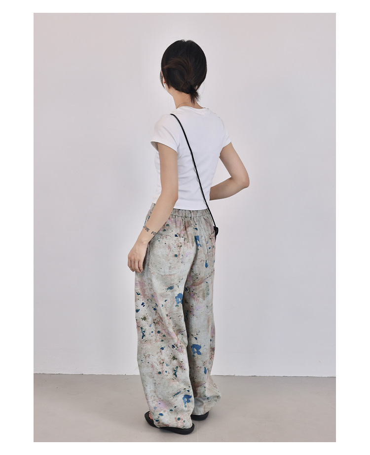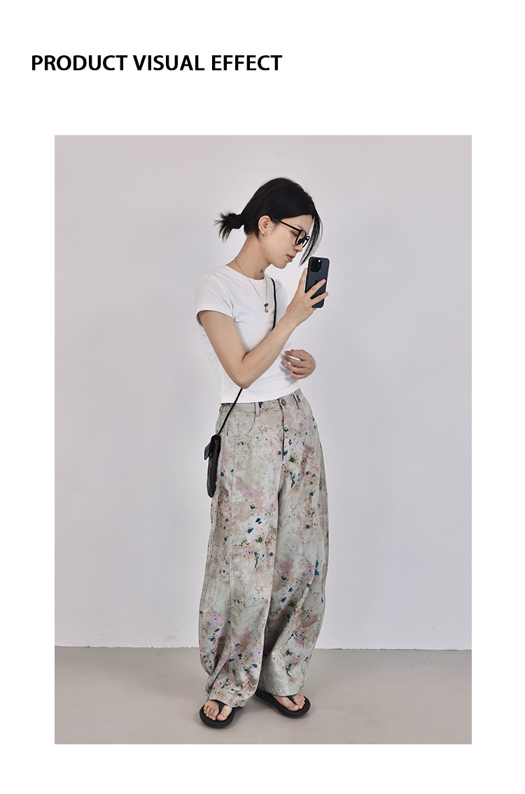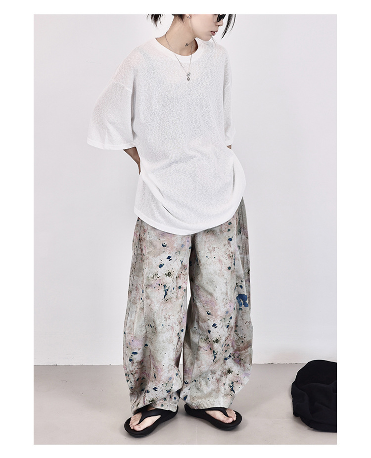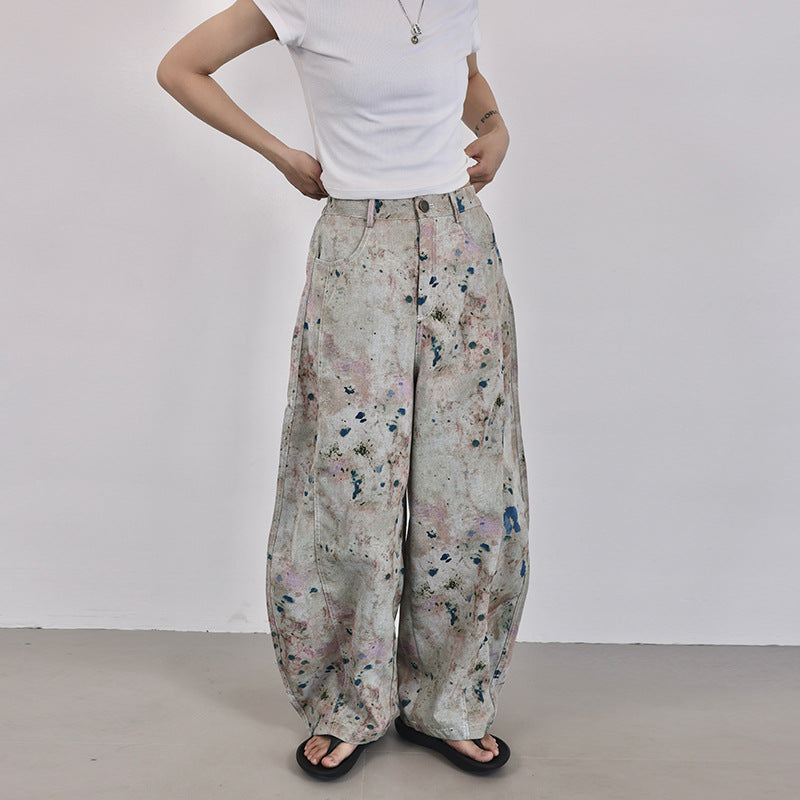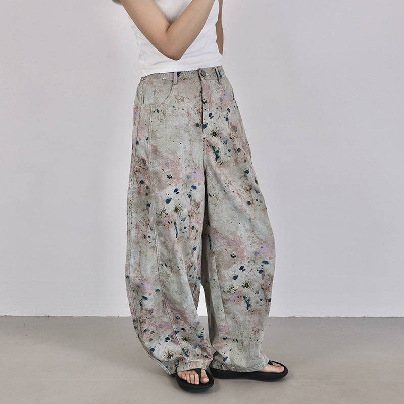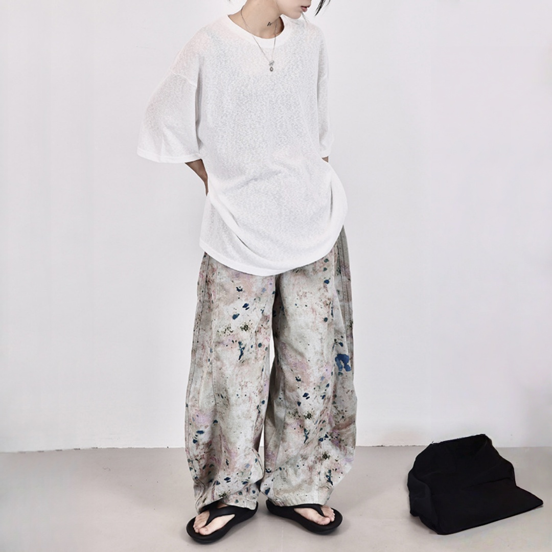 【商品名】【ボトムス】夏 ムラ染め セーバーパンツ風 デニム バナナパンツ 【SHシリーズ】