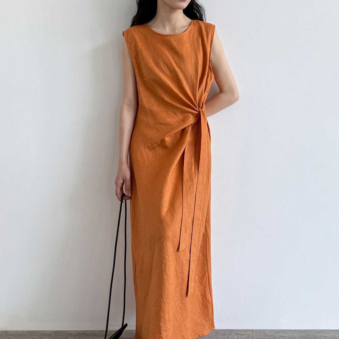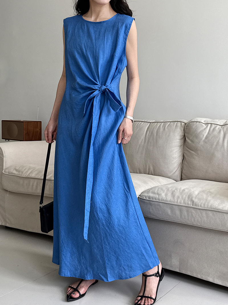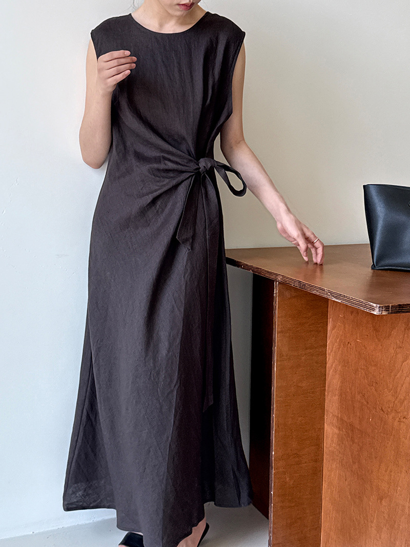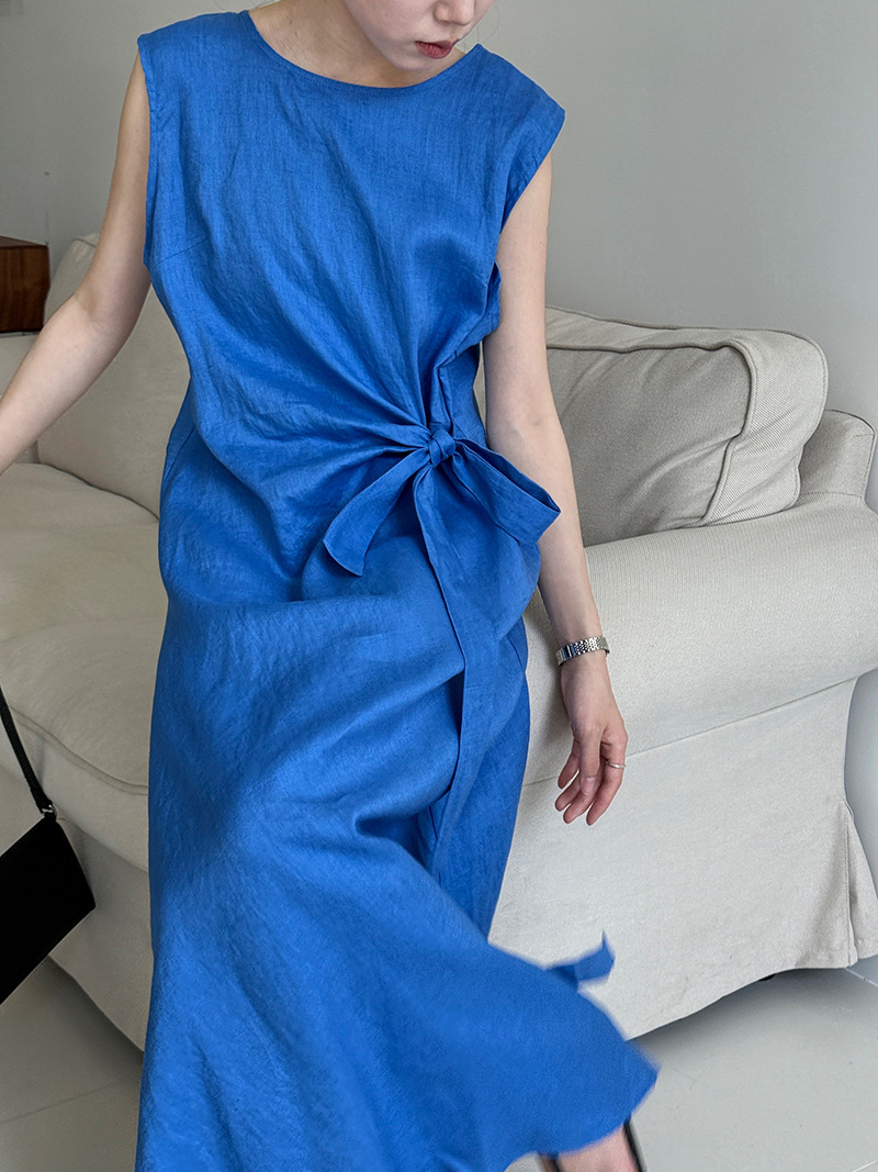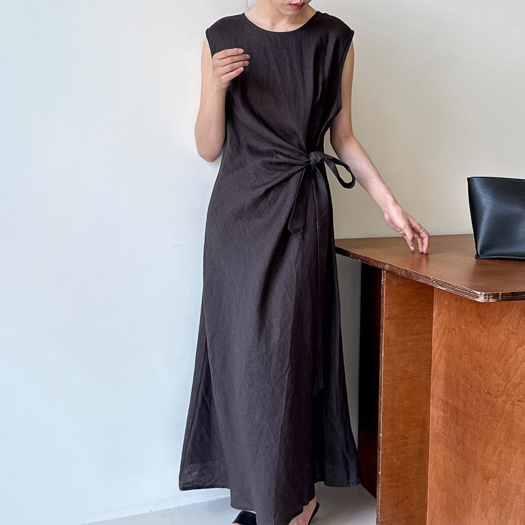【ワンピース】100%ラミー フレンチエレガンス ノースリーブワンピース 夏 スリム効果【JZシリーズ】