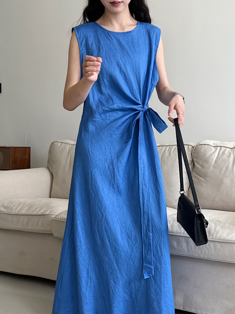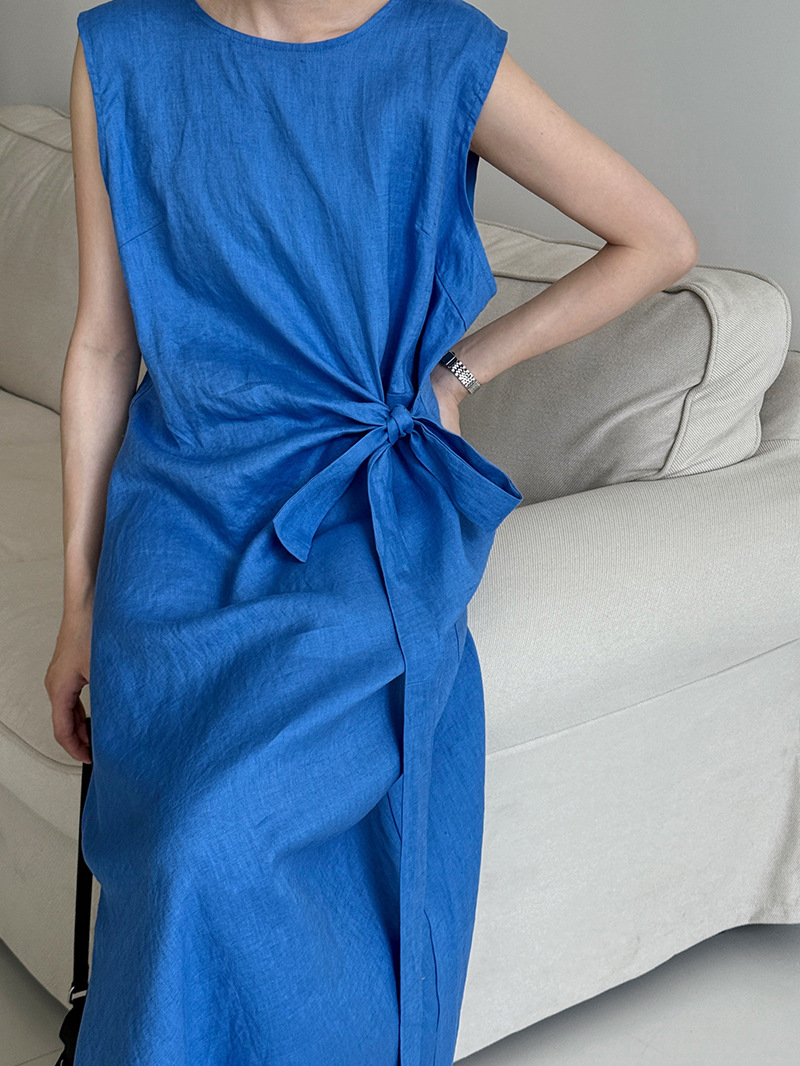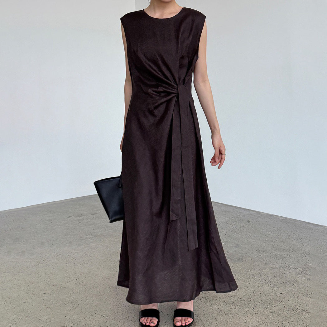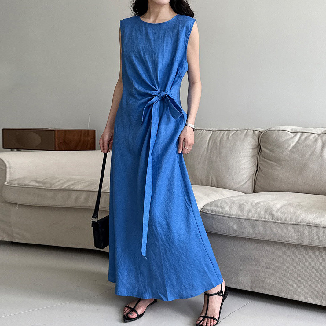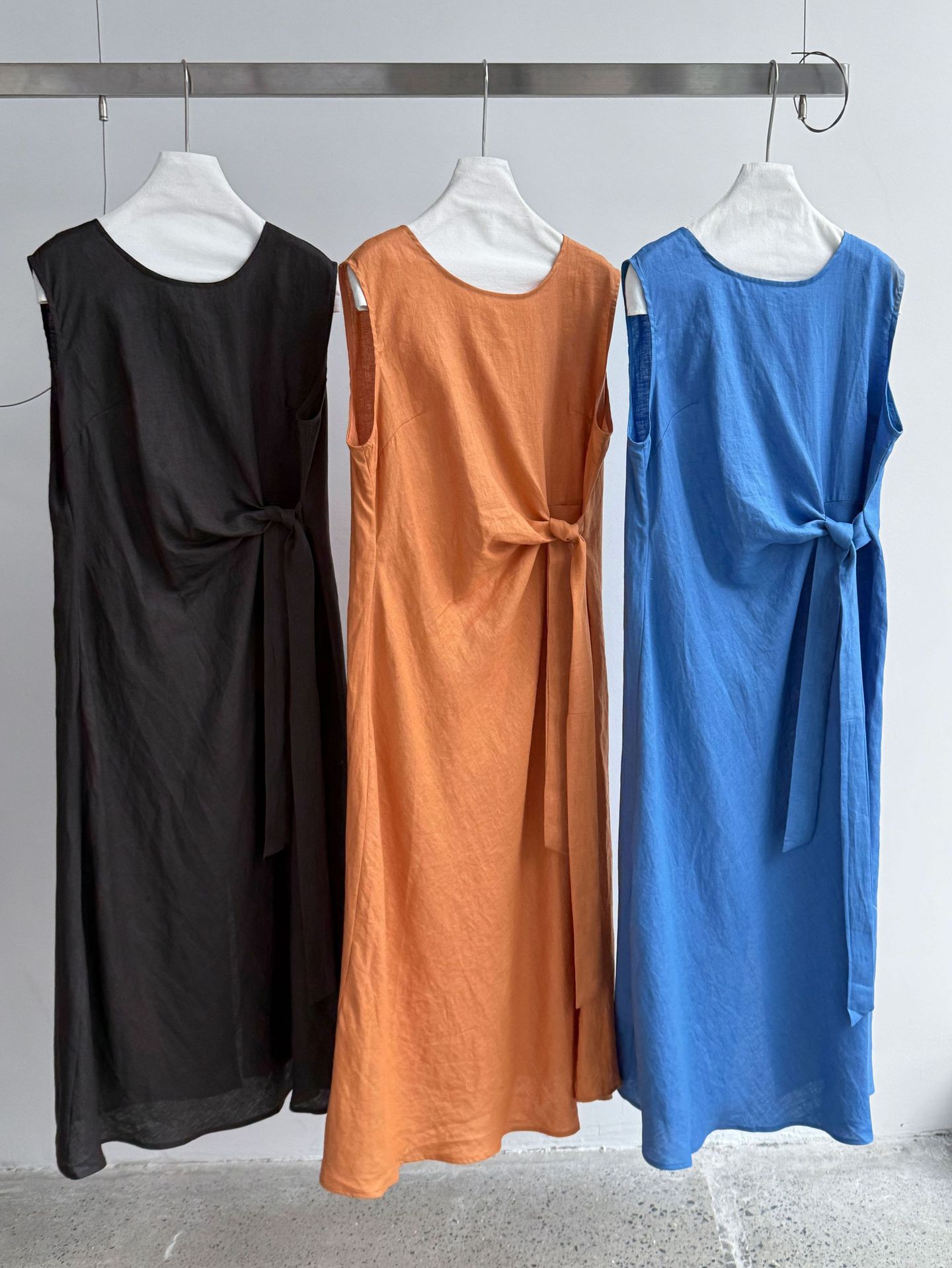 【ワンピース】100%ラミー フレンチエレガンス ノースリーブワンピース 夏 スリム効果【JZシリーズ】