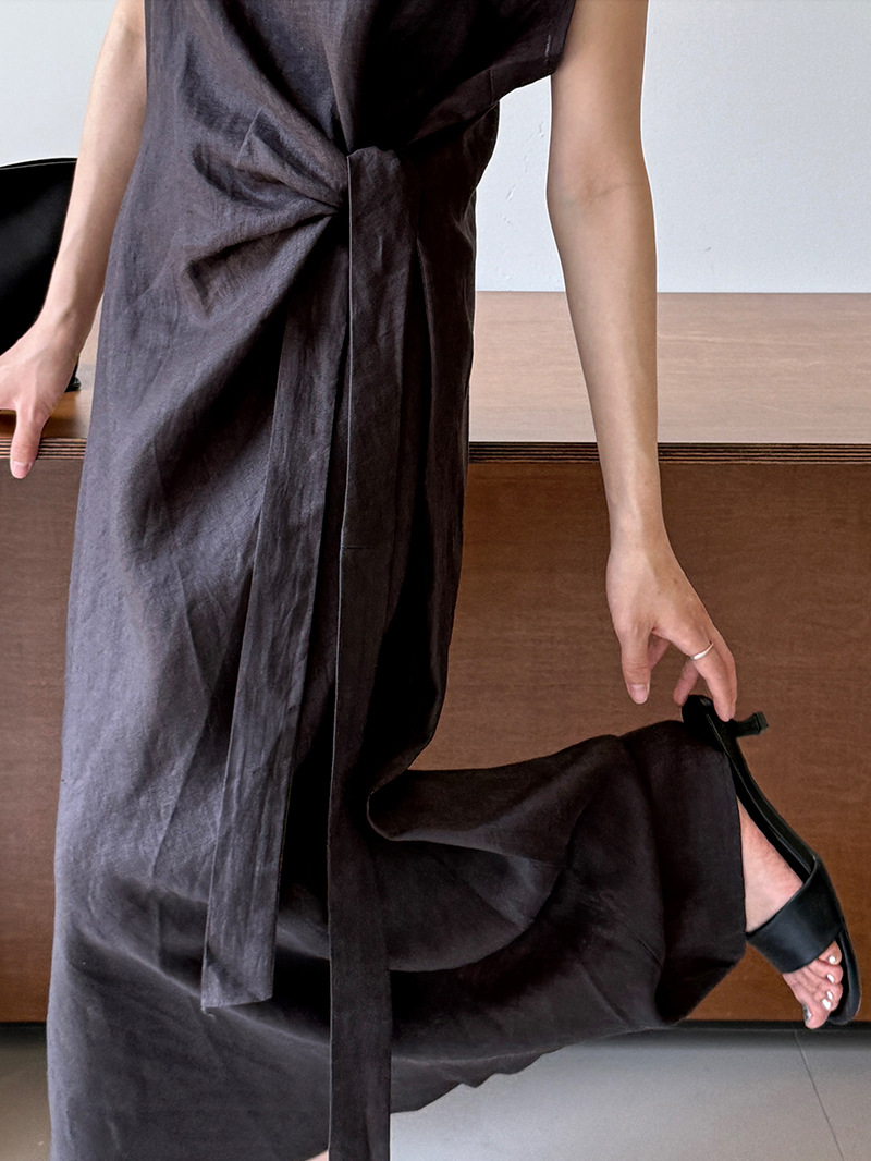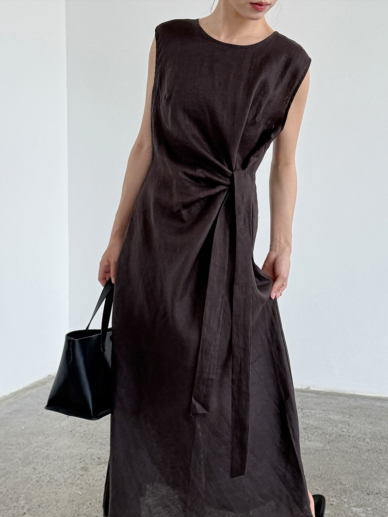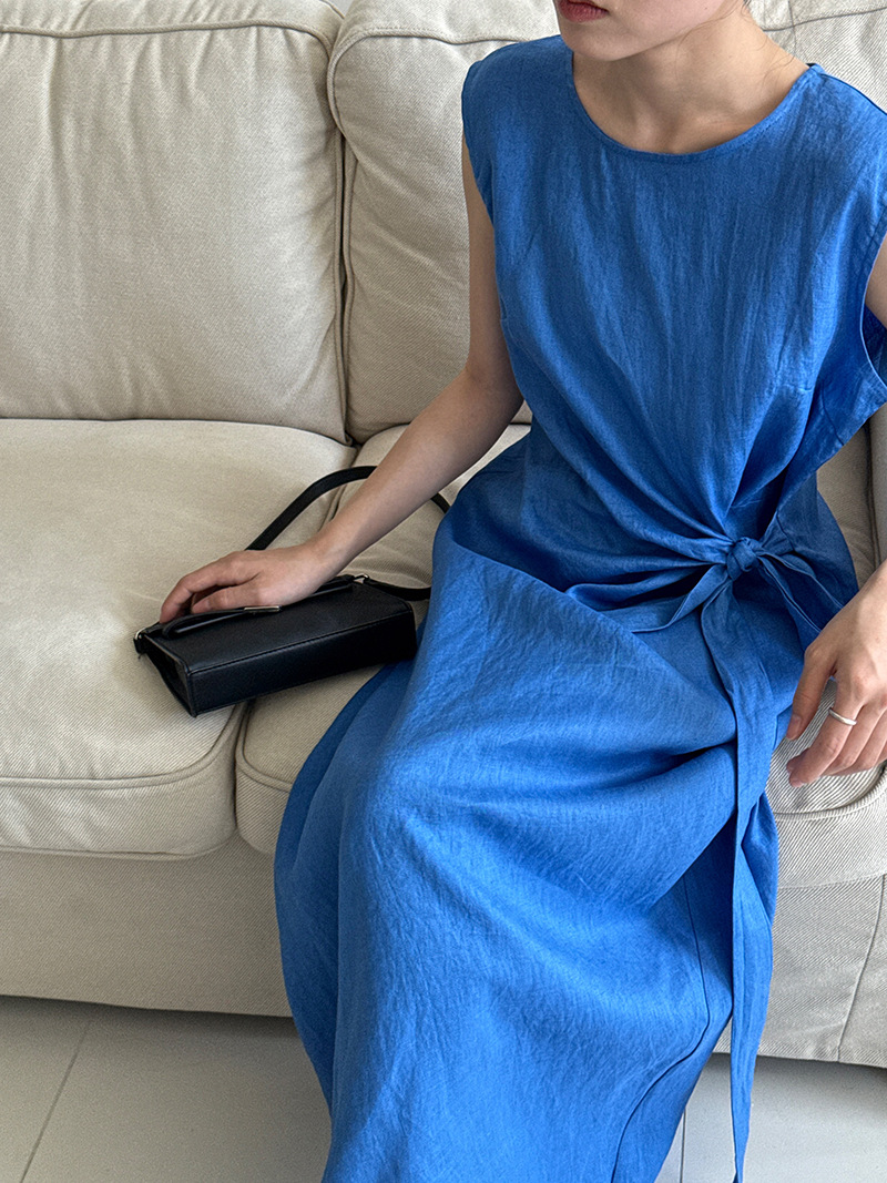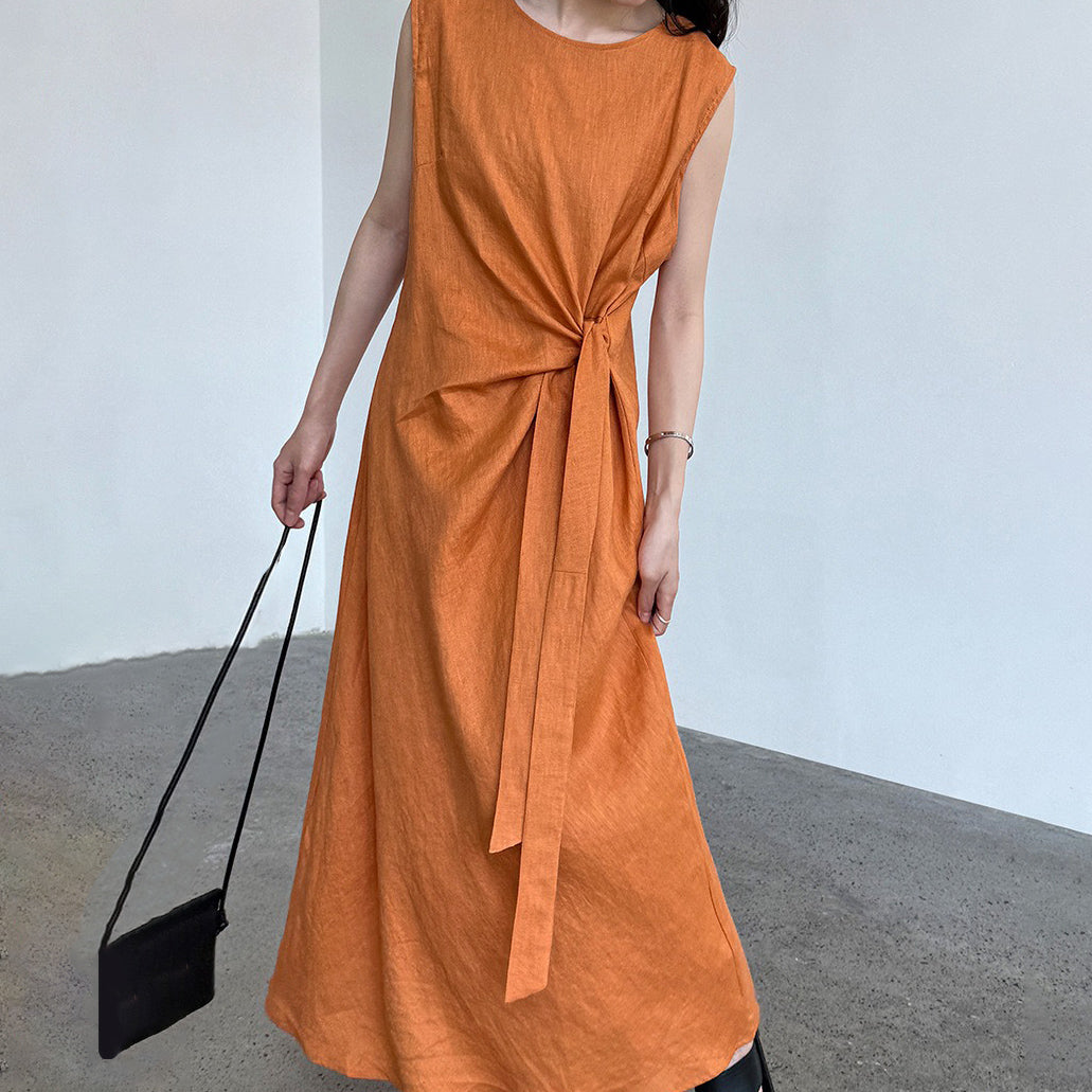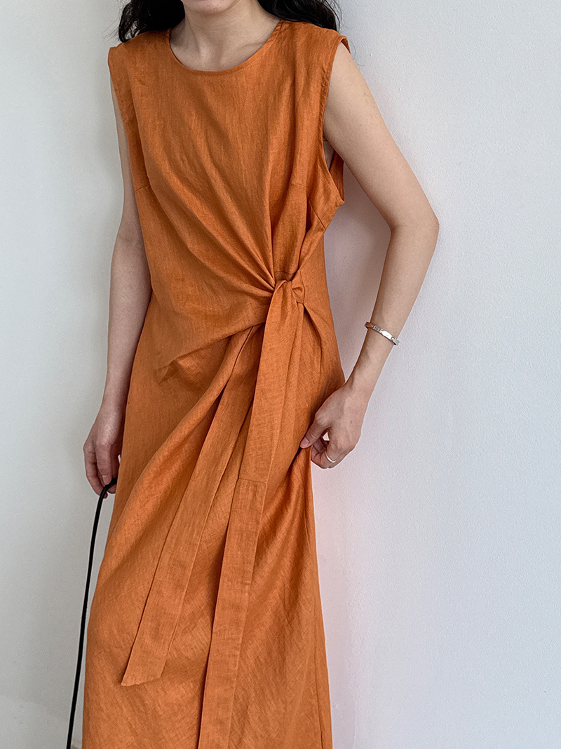 【ワンピース】100%ラミー フレンチエレガンス ノースリーブワンピース 夏 スリム効果【JZシリーズ】