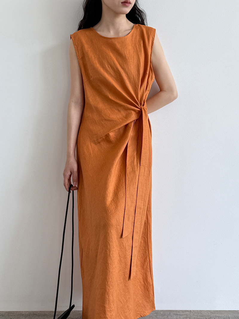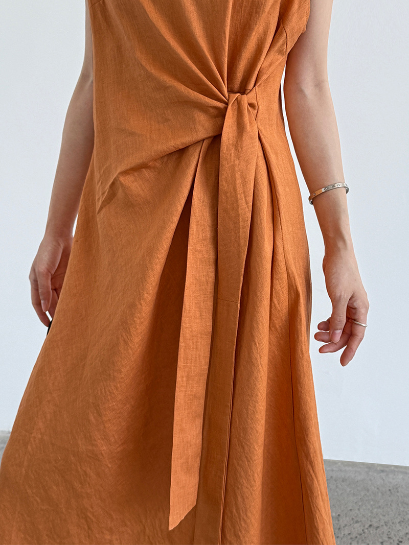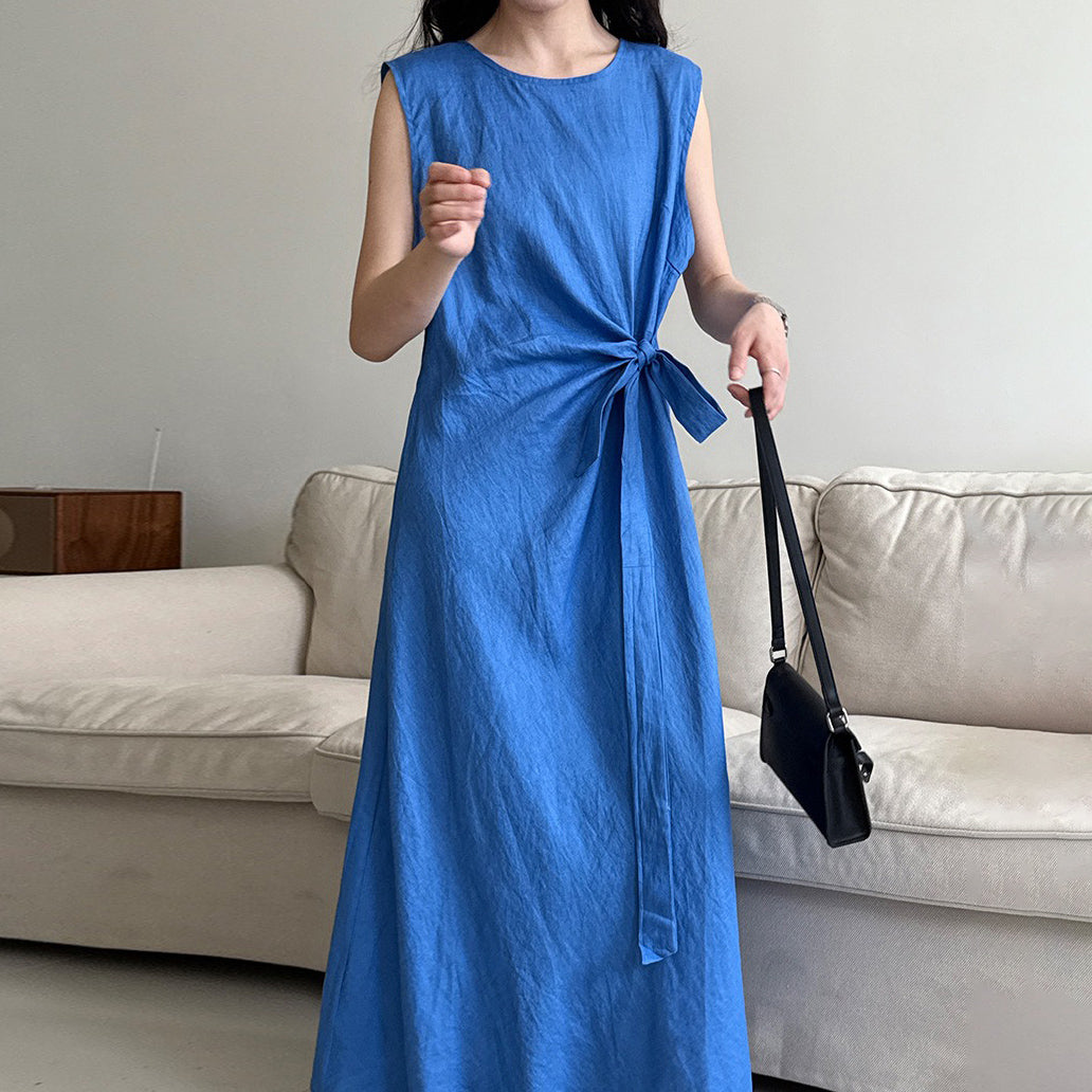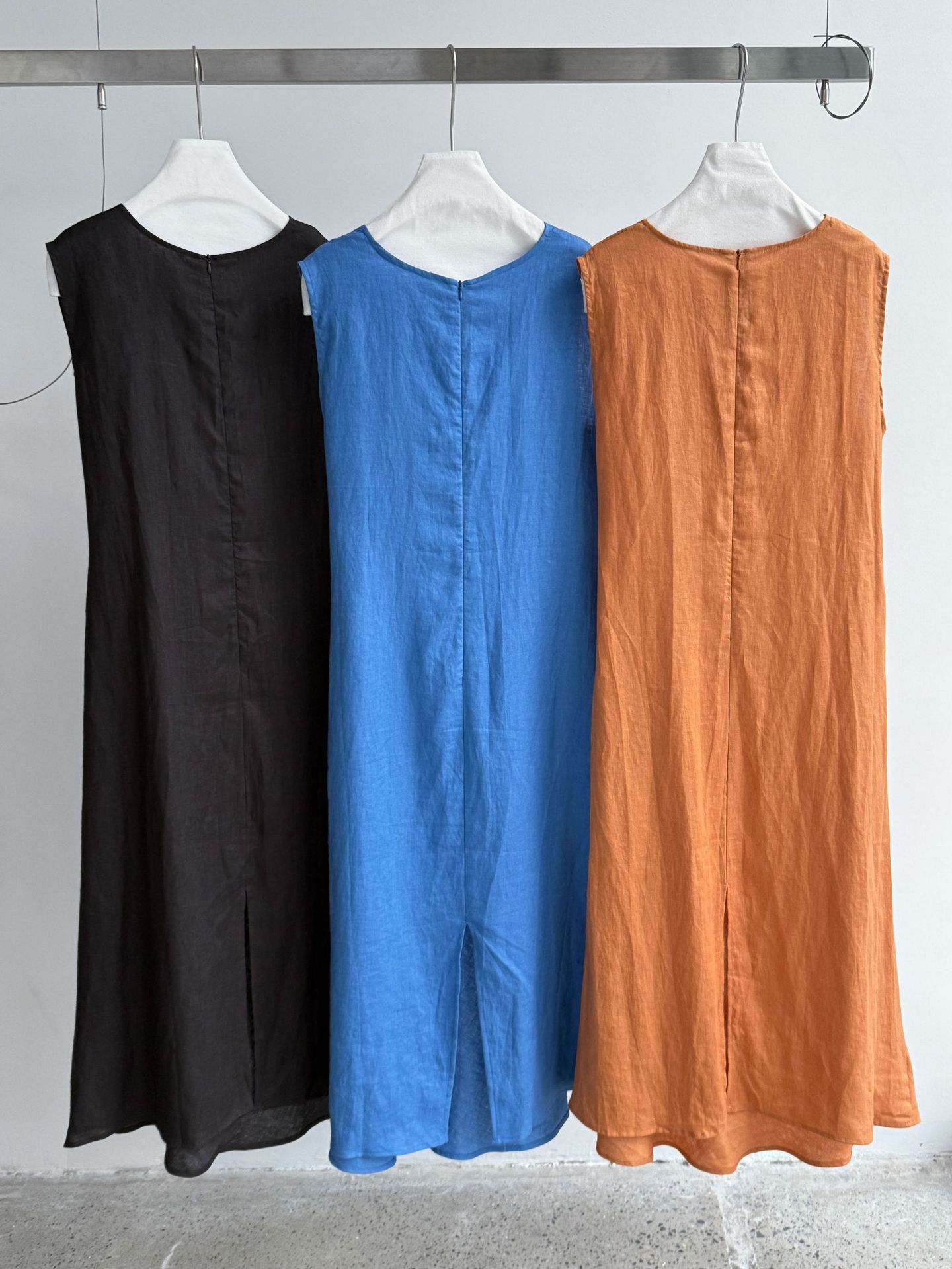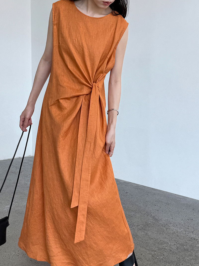 【ワンピース】100%ラミー フレンチエレガンス ノースリーブワンピース 夏 スリム効果【JZシリーズ】