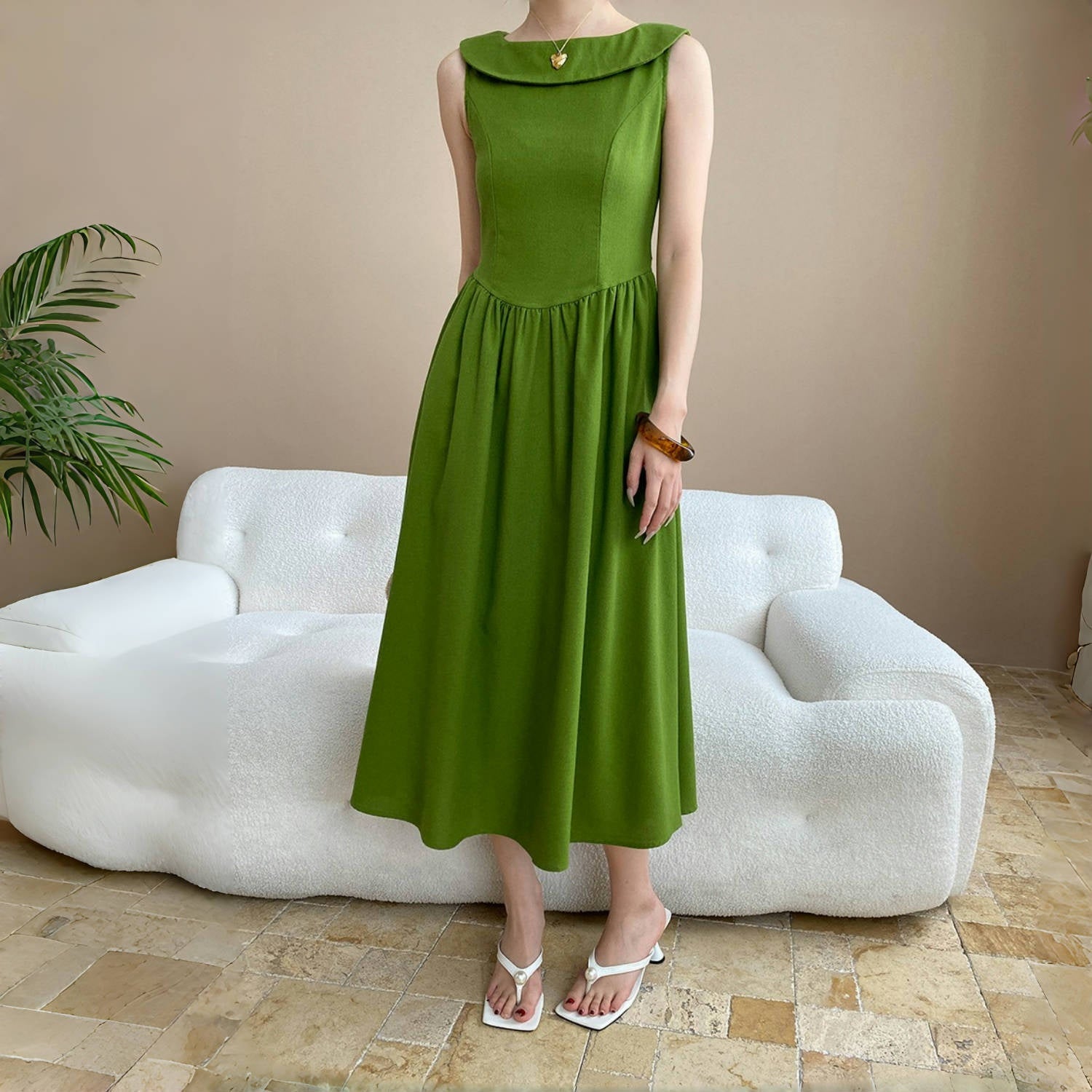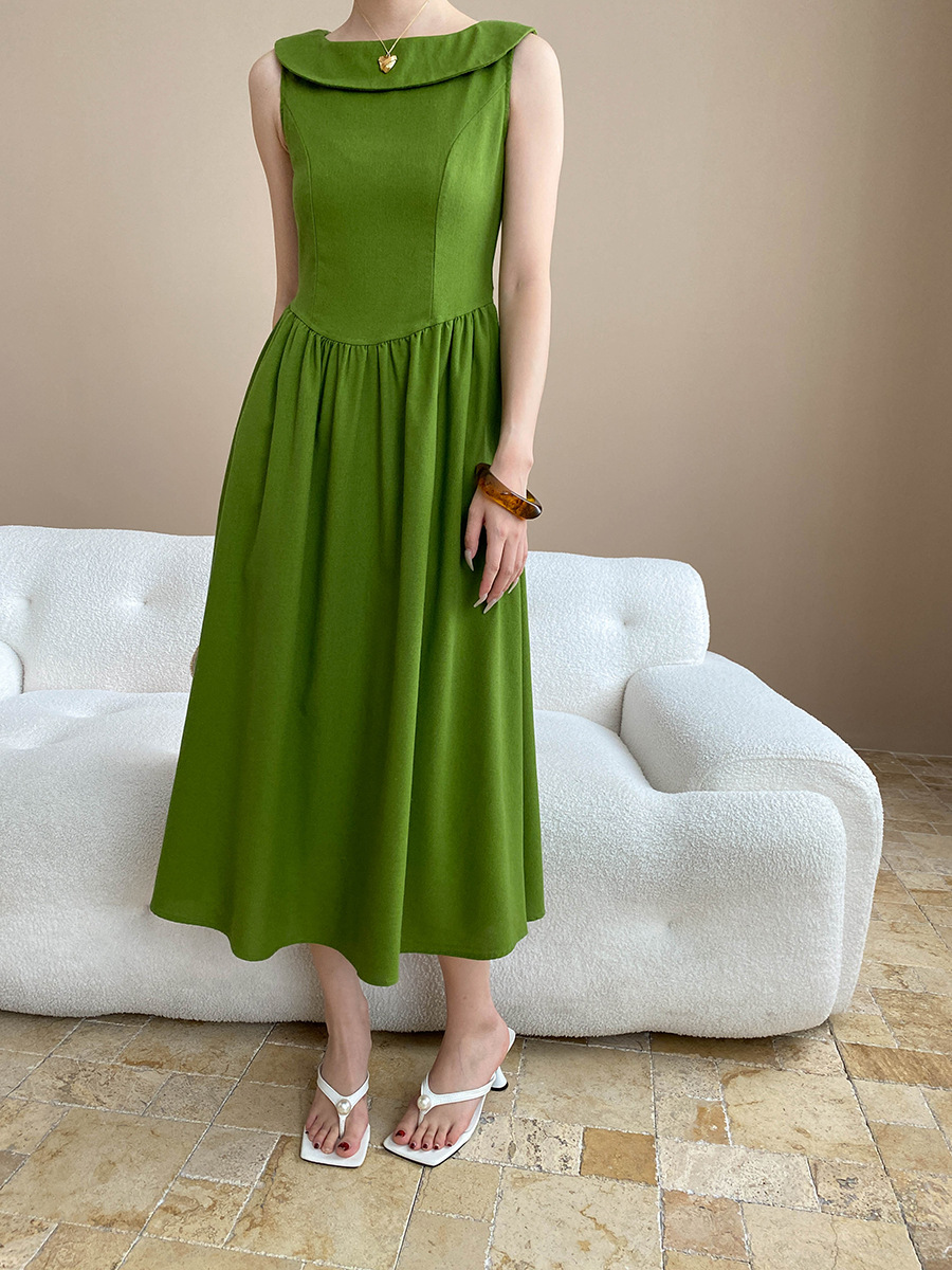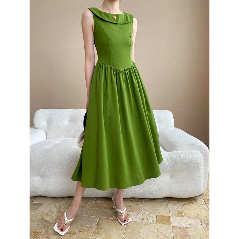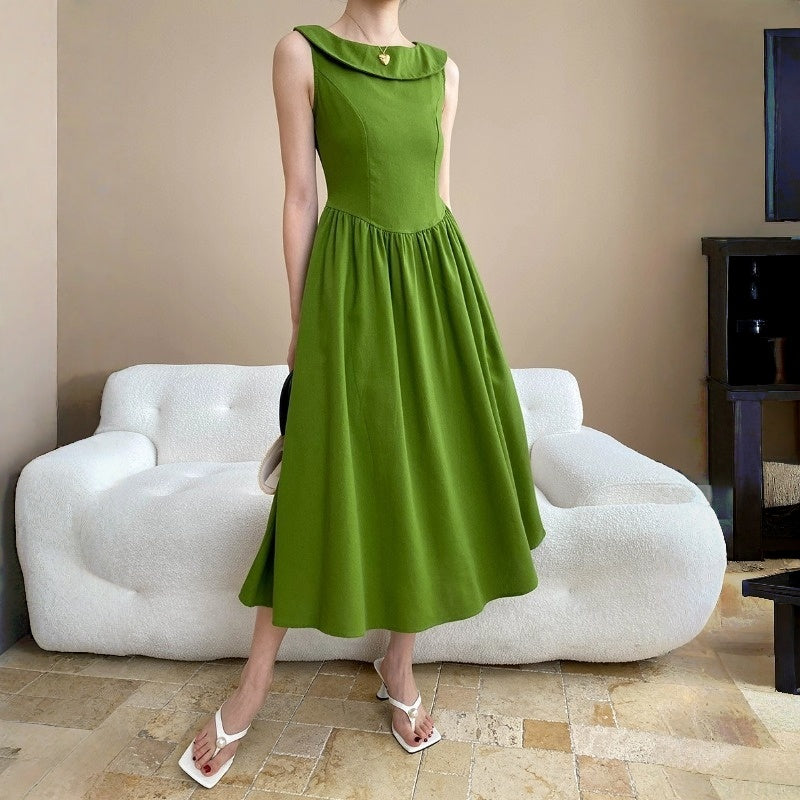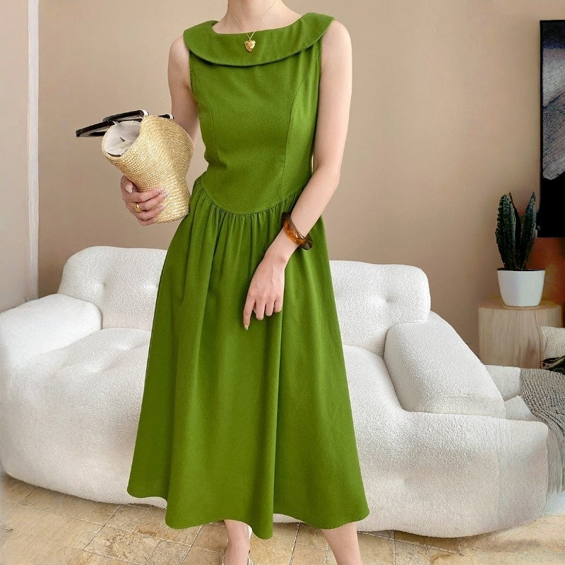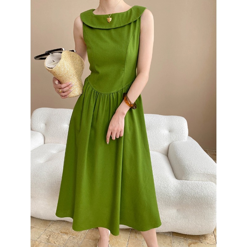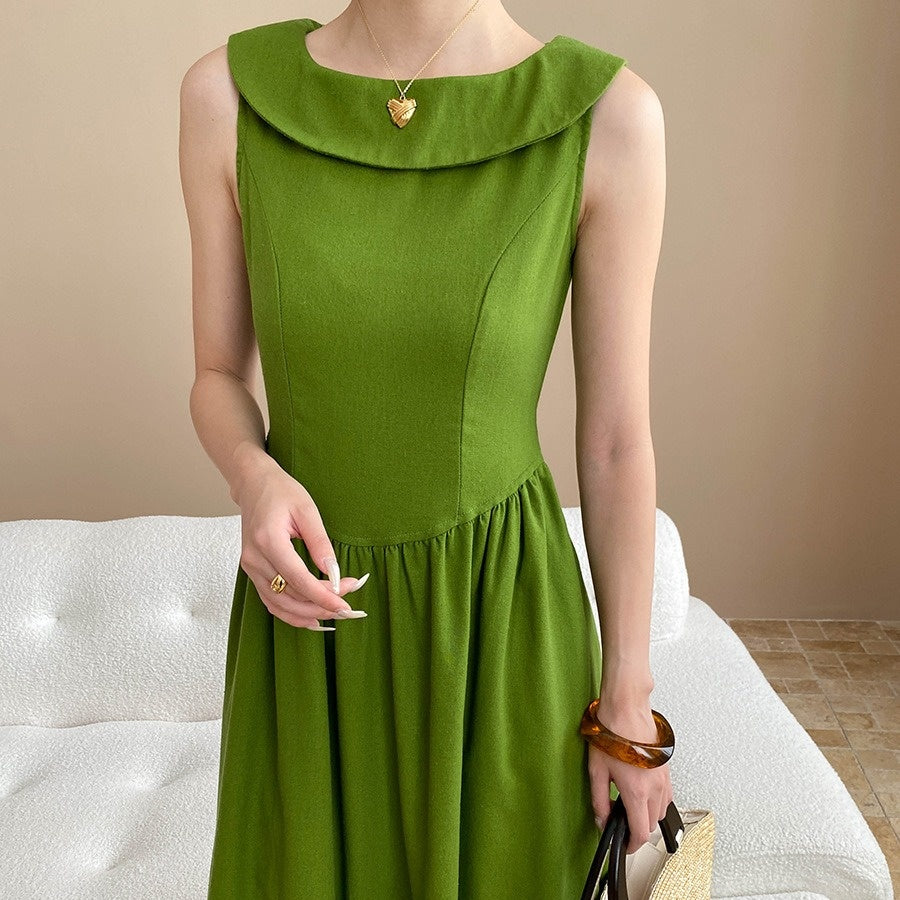 【ワンピース】夏 マンボ デザイン感 フレンチ フリル襟 ウエストマーク ノースリーブ ワンピース 【SNシリーズ】
