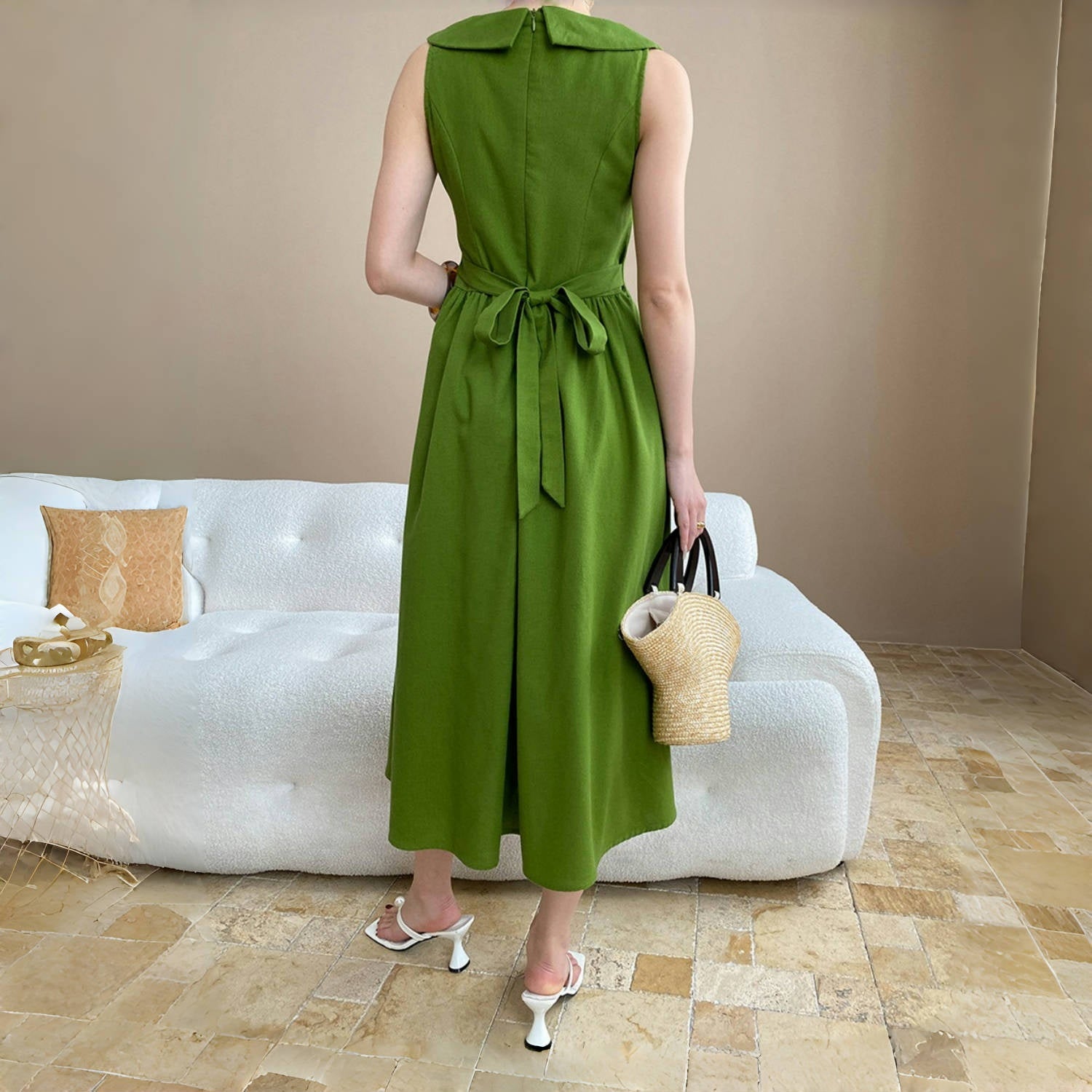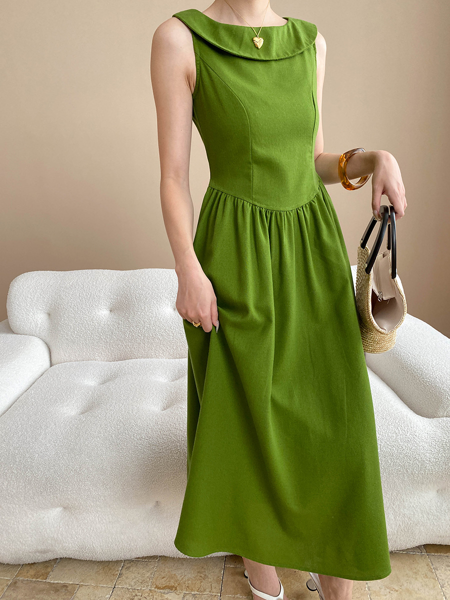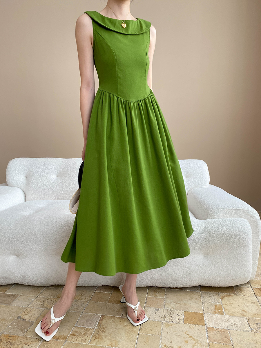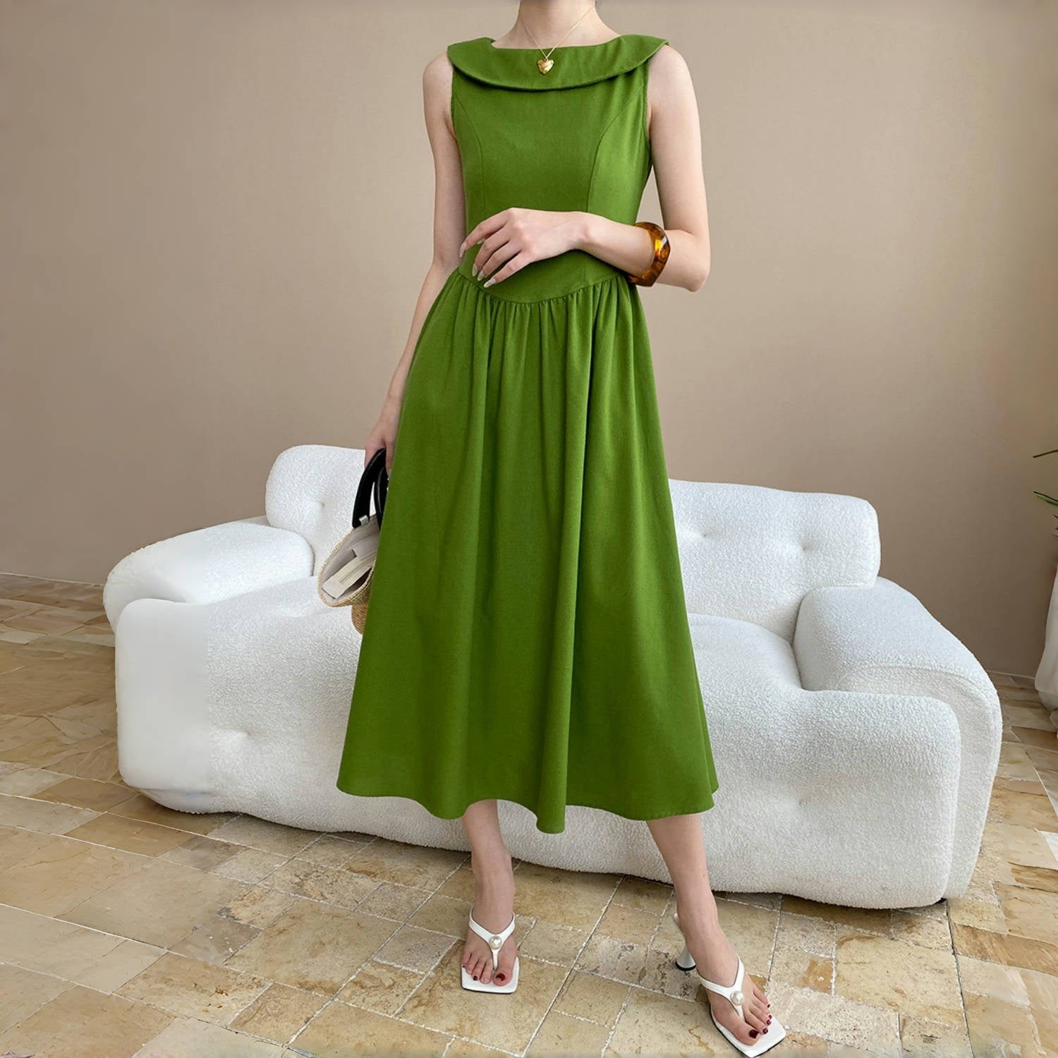 【ワンピース】夏 マンボ デザイン感 フレンチ フリル襟 ウエストマーク ノースリーブ ワンピース 【SNシリーズ】