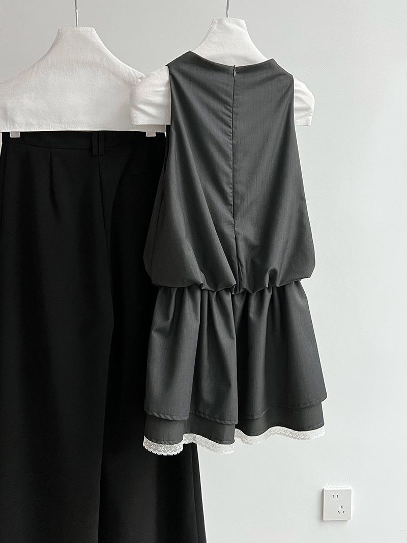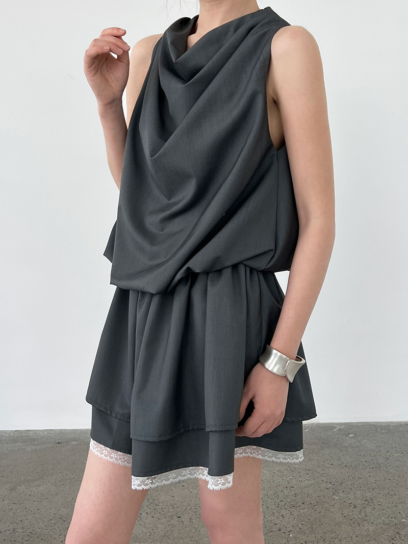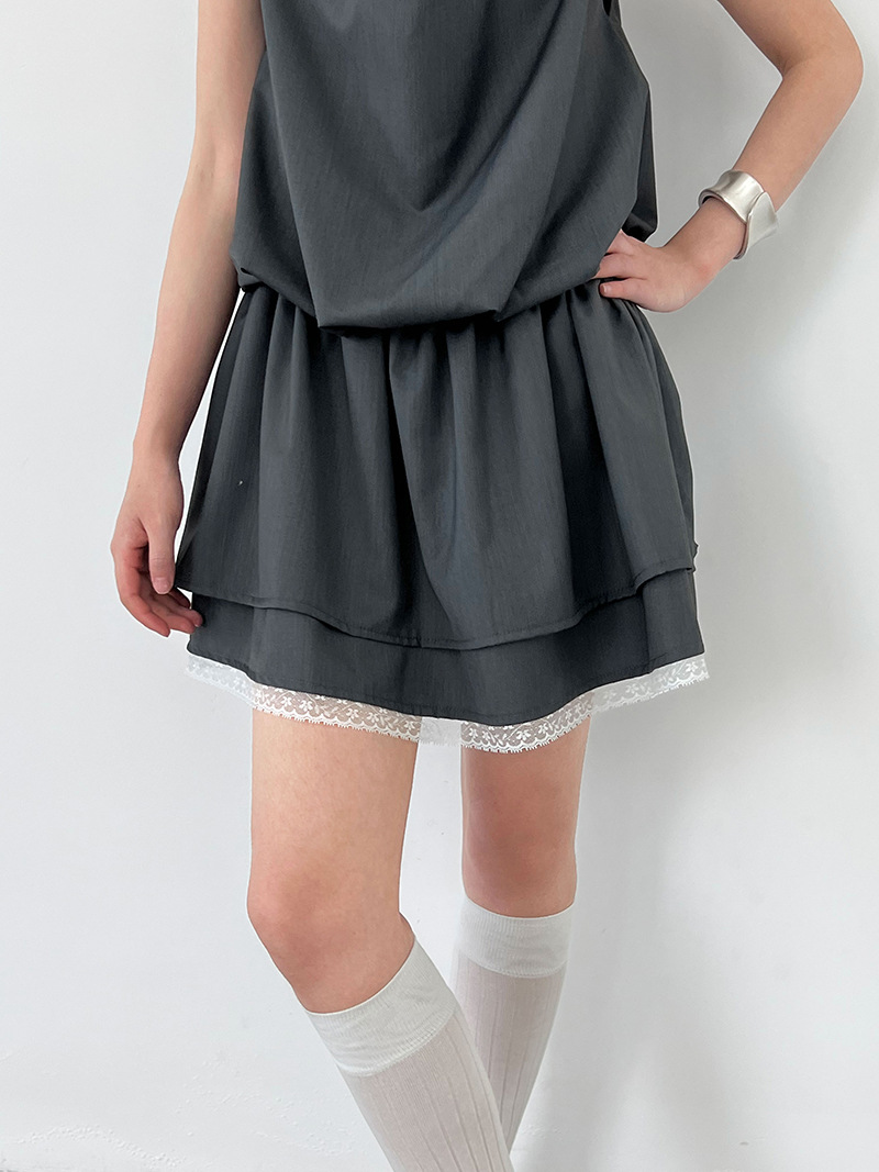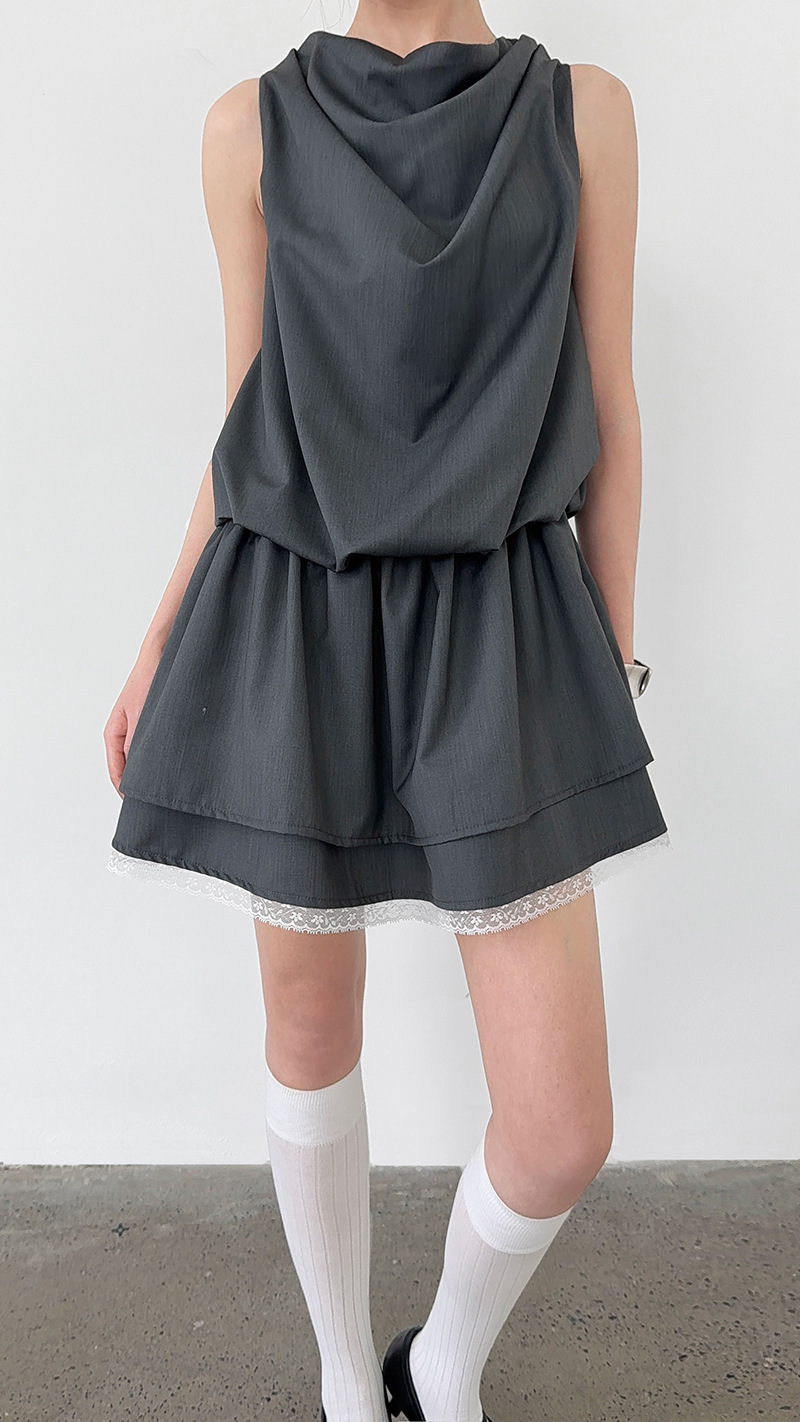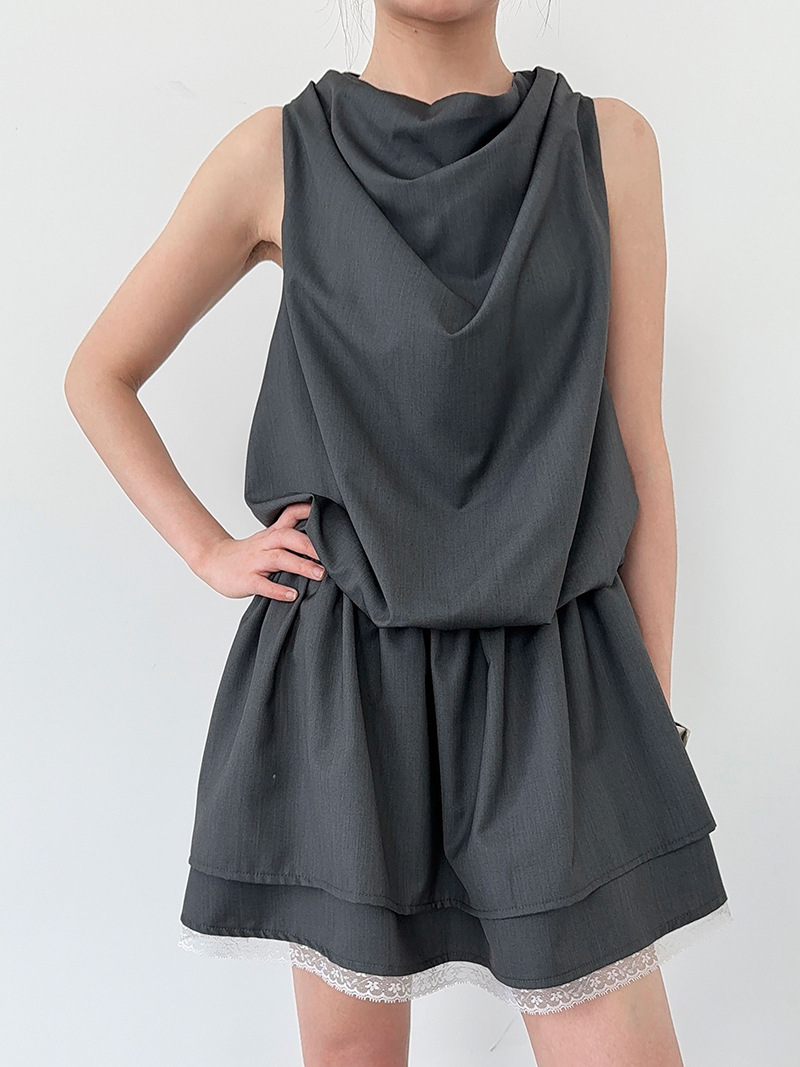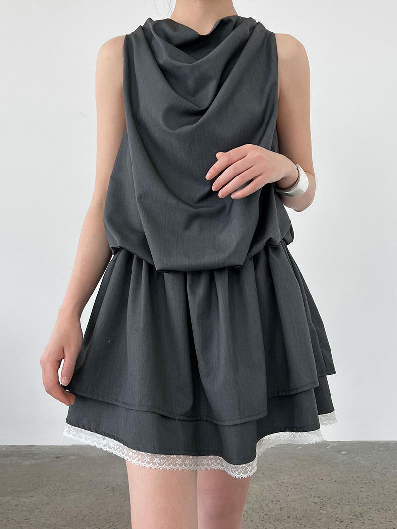 【ワンピース】韓国風 レイヤード 夏 涼しげ Aライン ノースリーブ ショート丈 ワンピース【JZシリーズ】