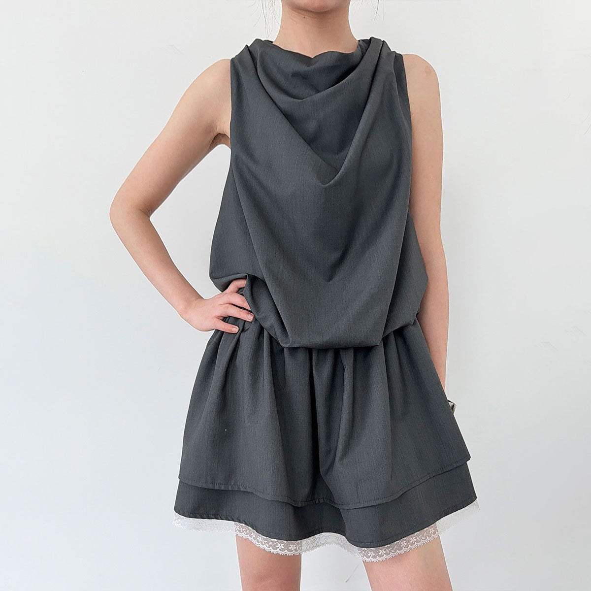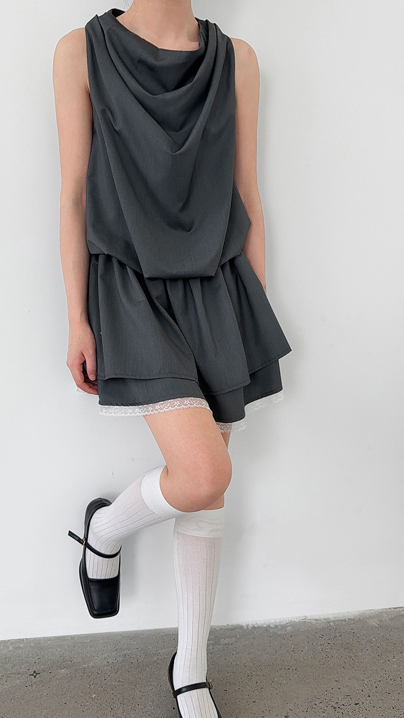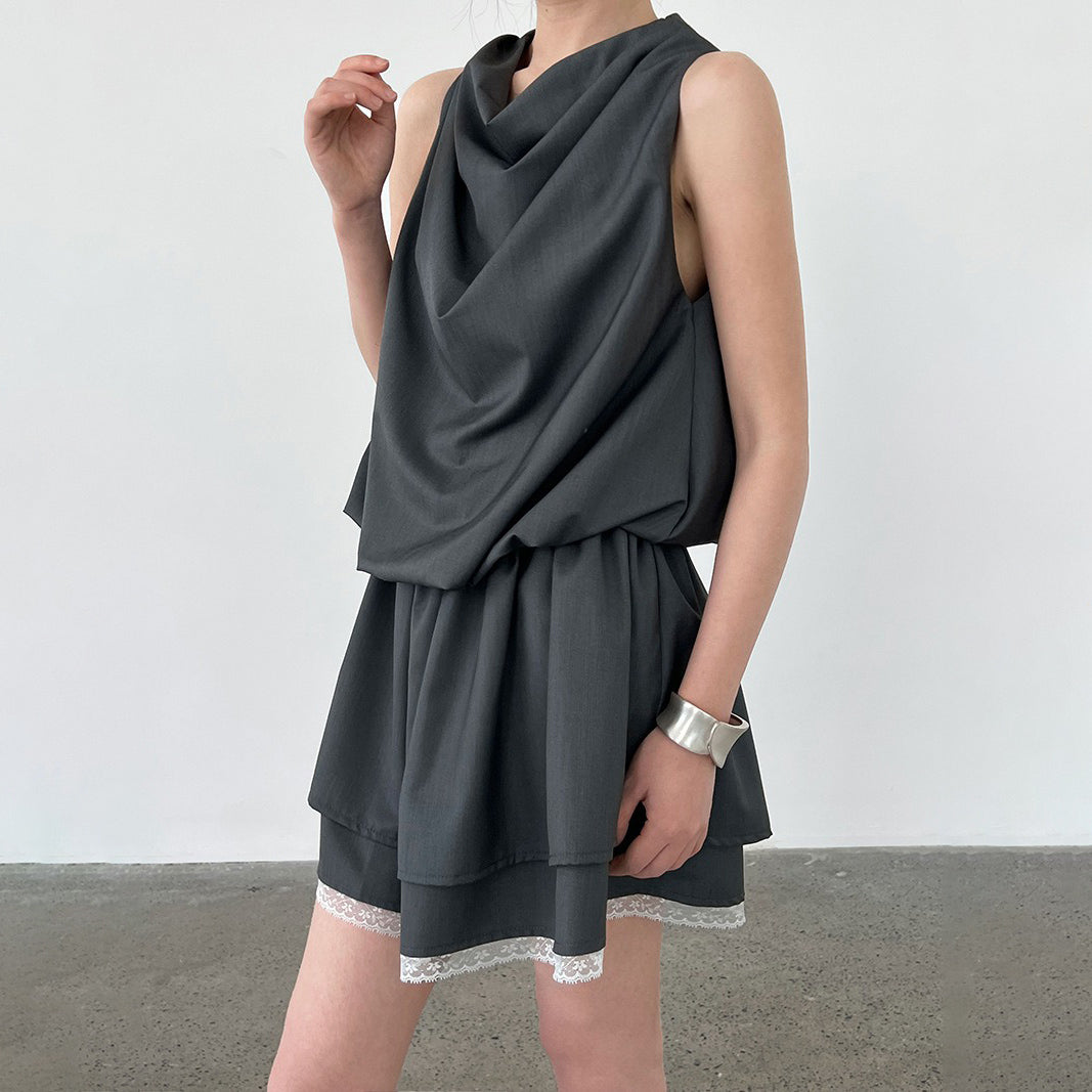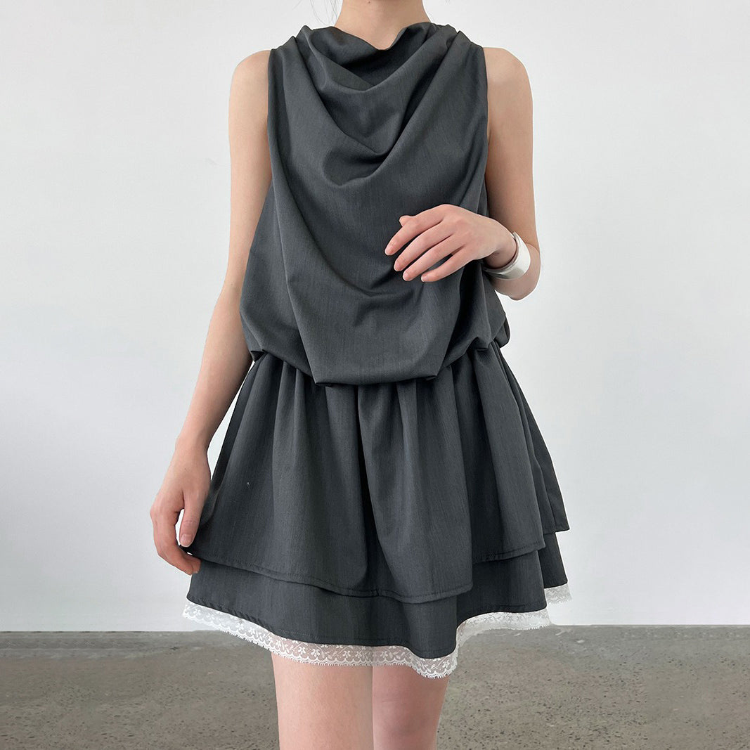 【ワンピース】韓国風 レイヤード 夏 涼しげ Aライン ノースリーブ ショート丈 ワンピース【JZシリーズ】