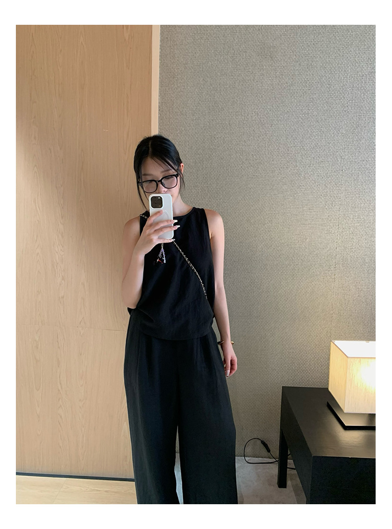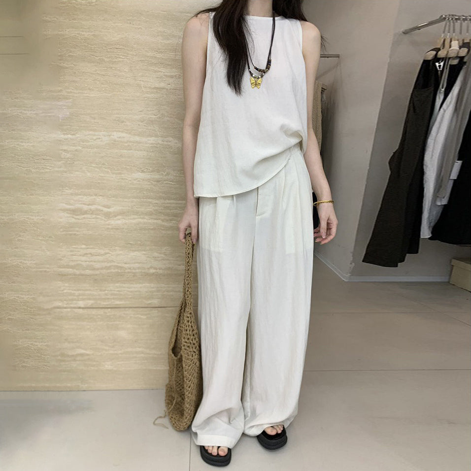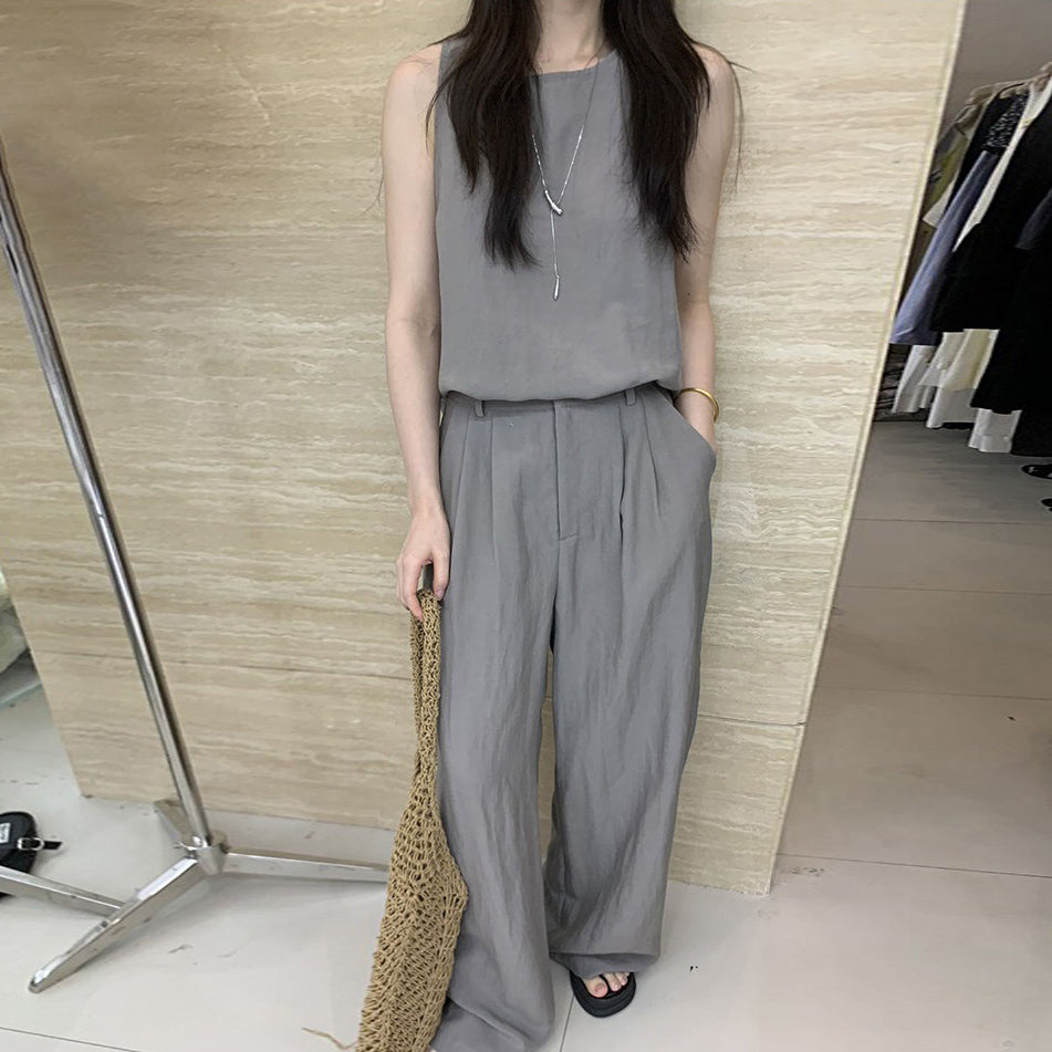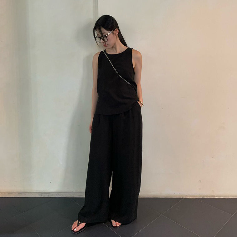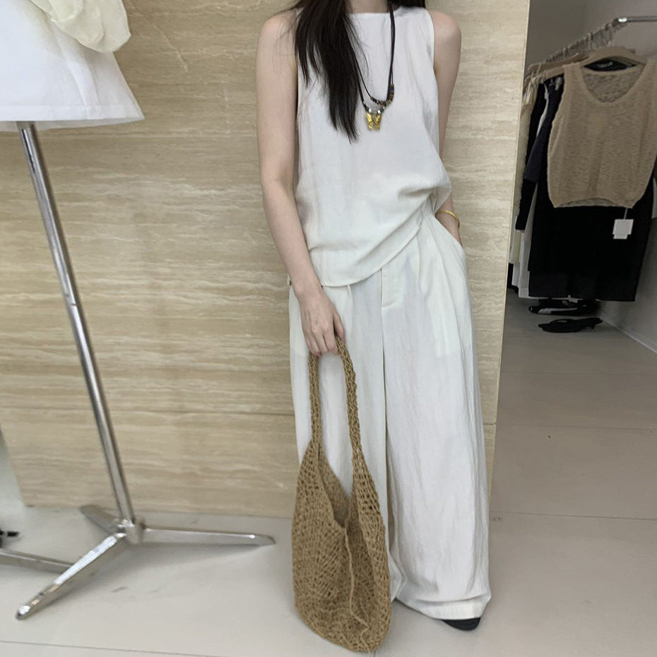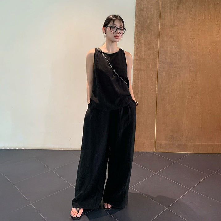 2点セット【セットアップ】夏 シンプル 通勤 タンクトップ+テンセル ワイドレッグパンツ 上下セットアップ【SNシリーズ】