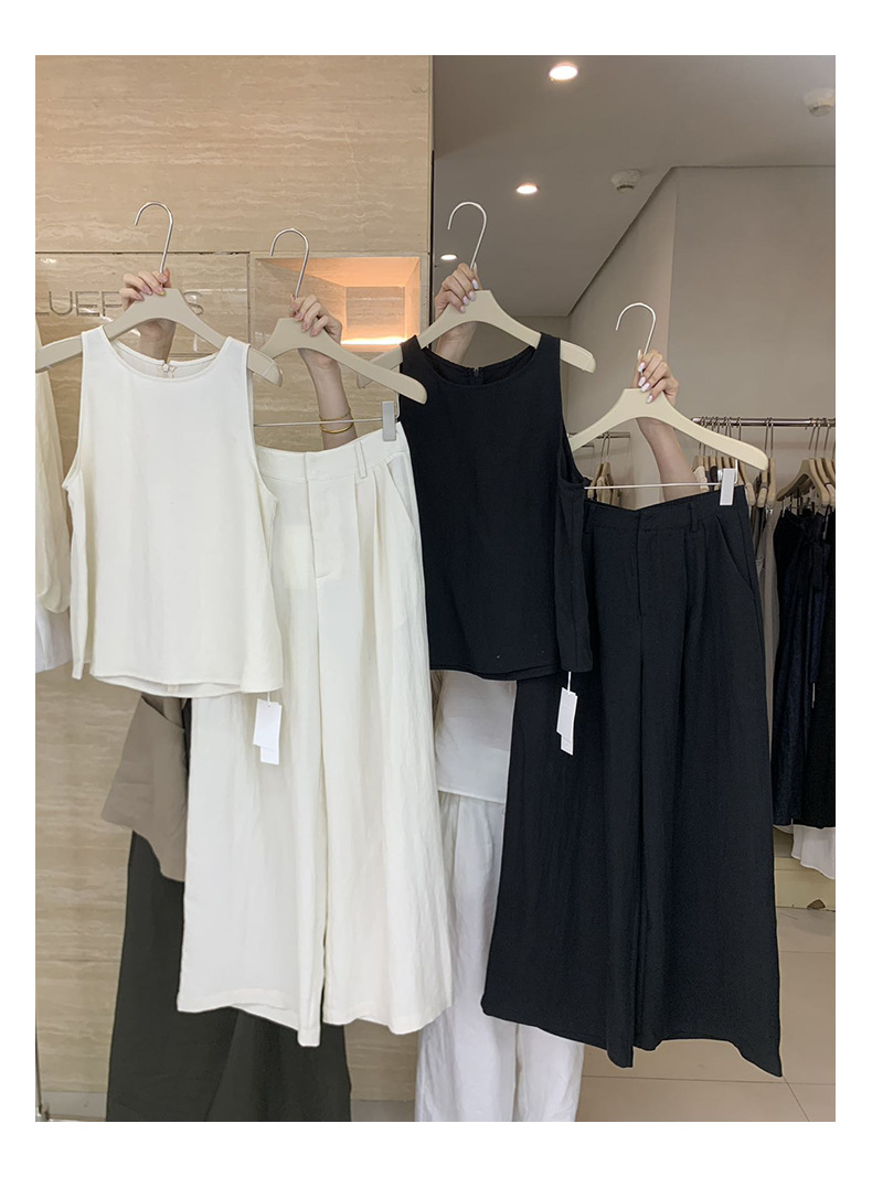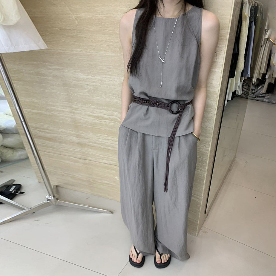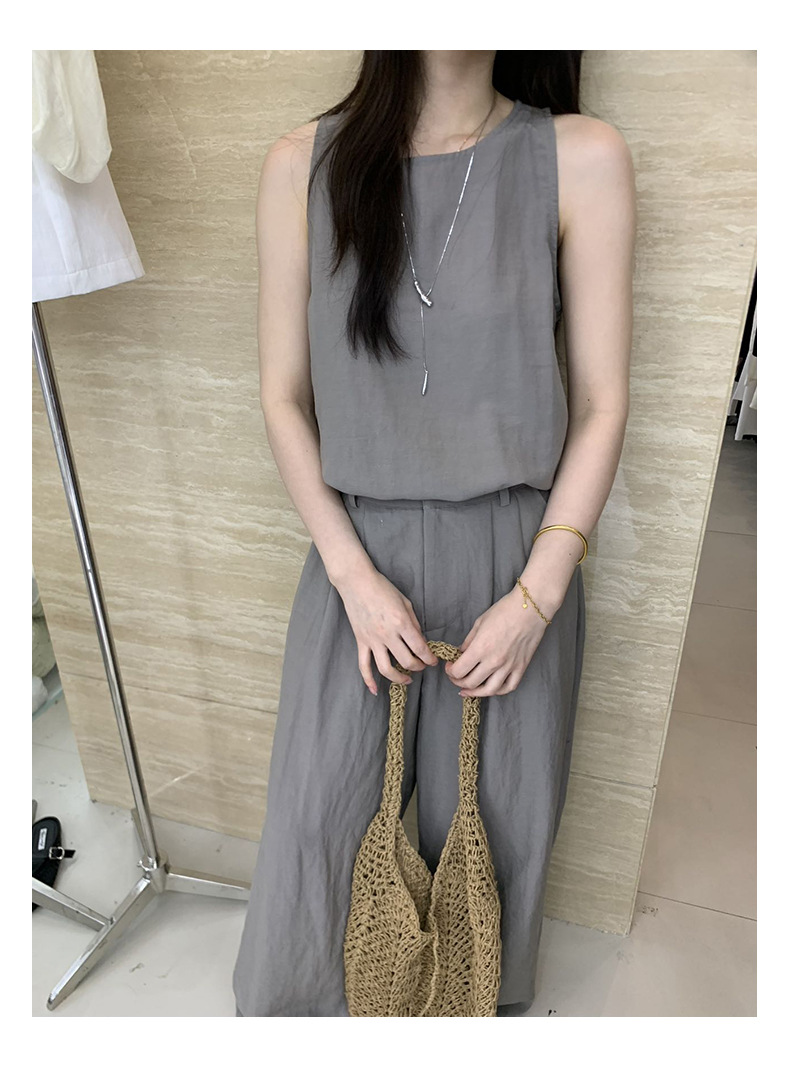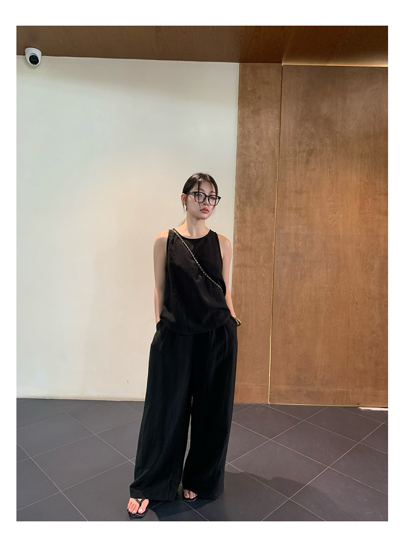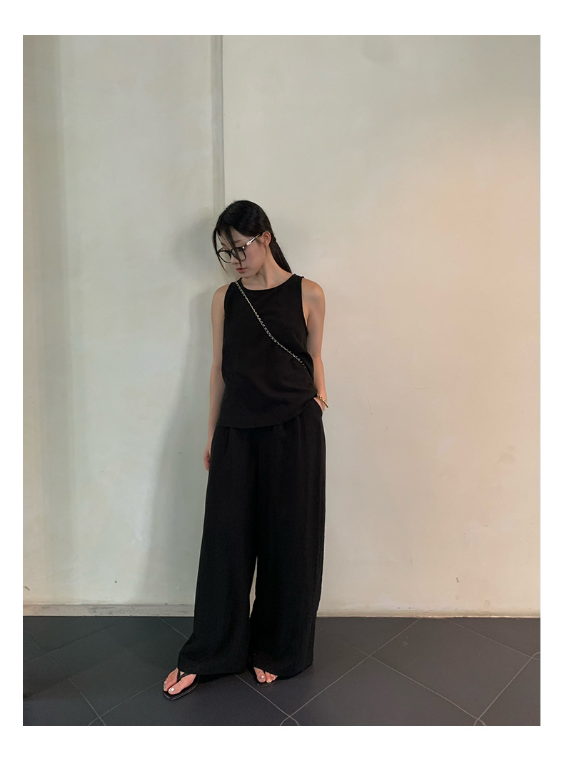 2点セット【セットアップ】夏 シンプル 通勤 タンクトップ+テンセル ワイドレッグパンツ 上下セットアップ【SNシリーズ】