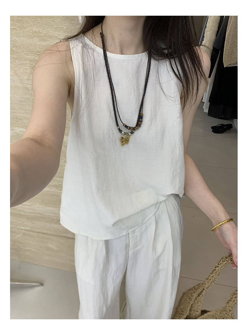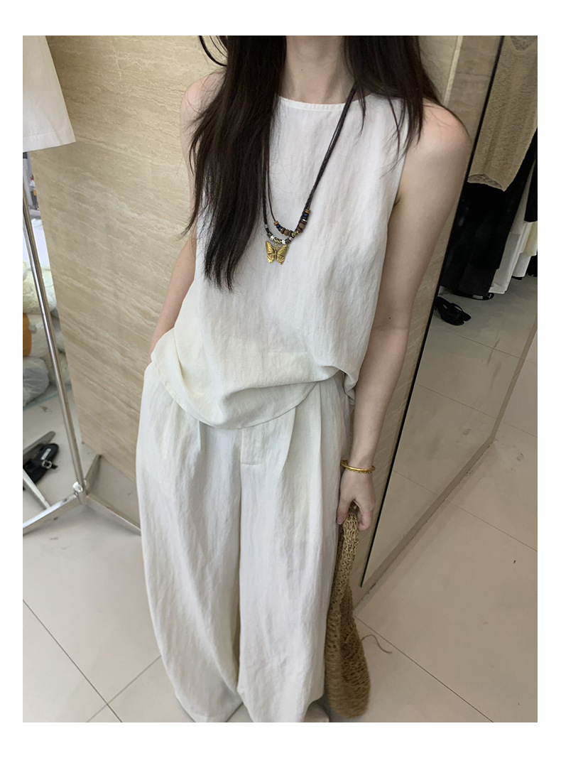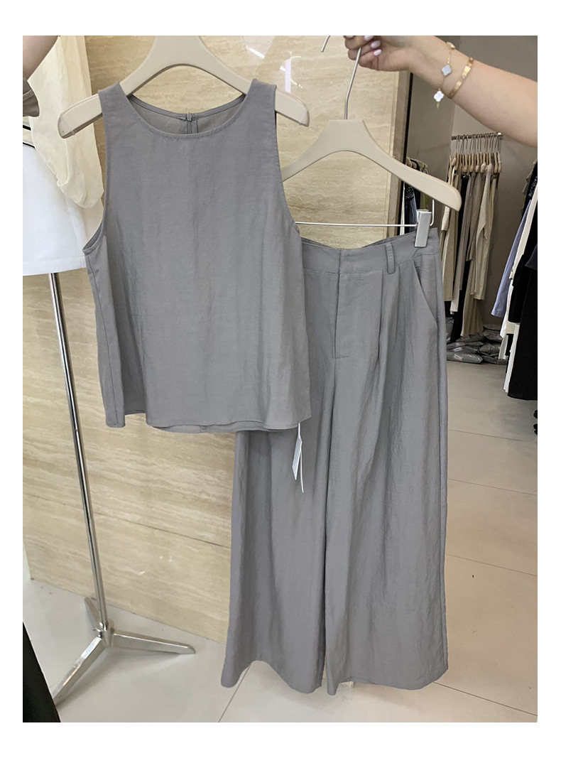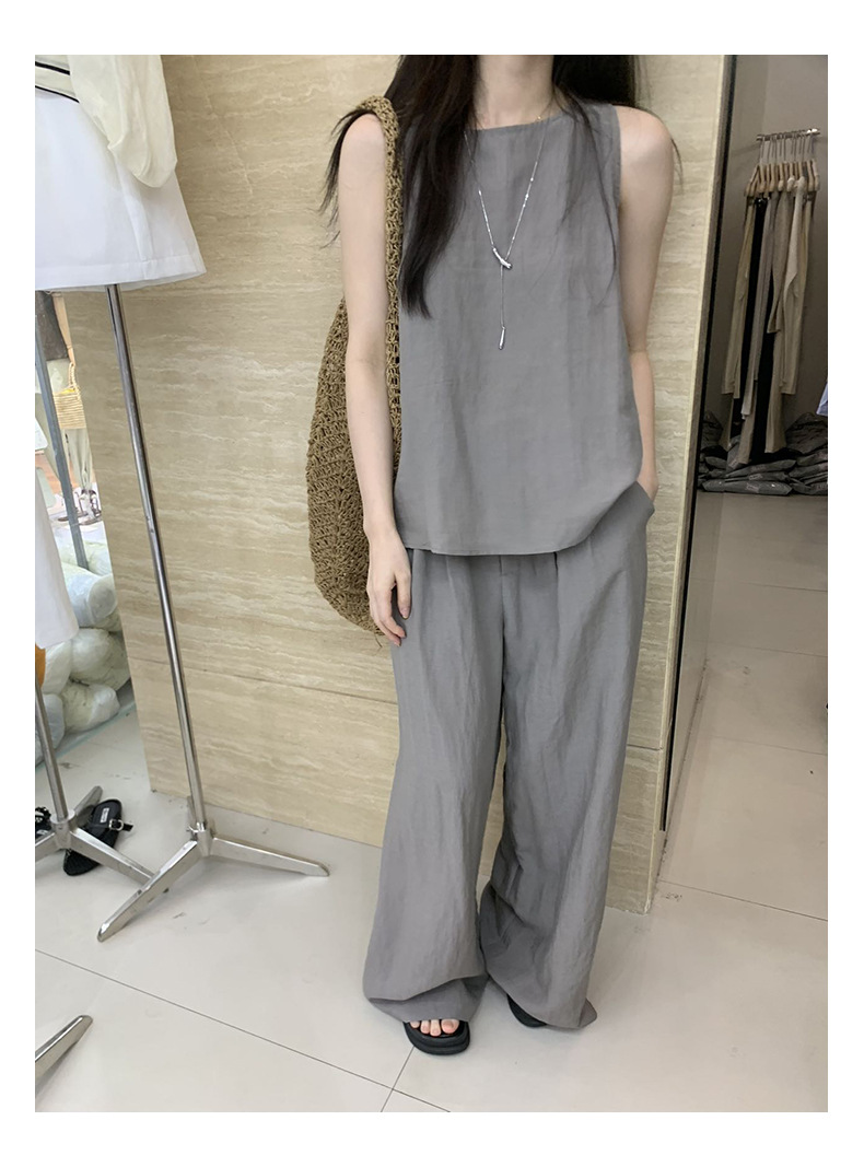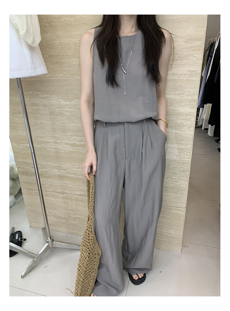2点セット【セットアップ】夏 シンプル 通勤 タンクトップ+テンセル ワイドレッグパンツ 上下セットアップ【SNシリーズ】