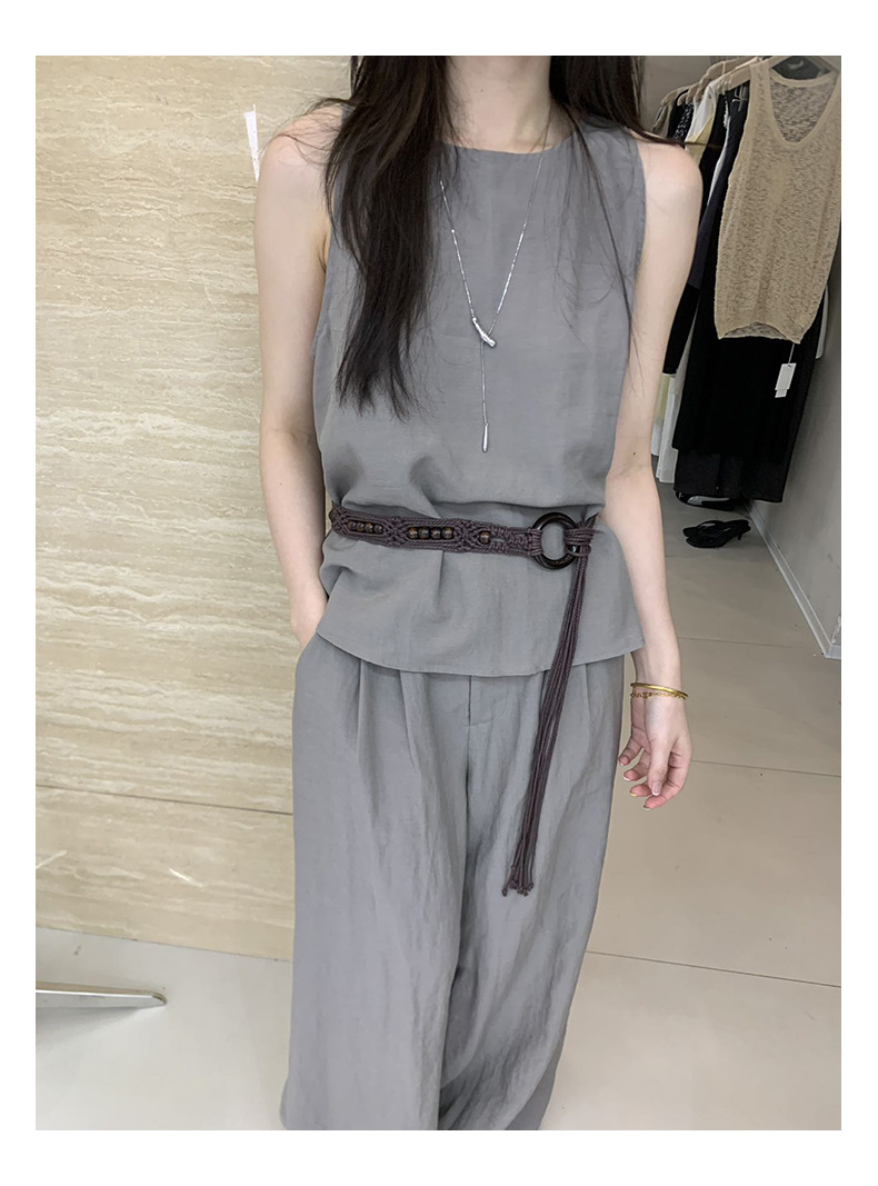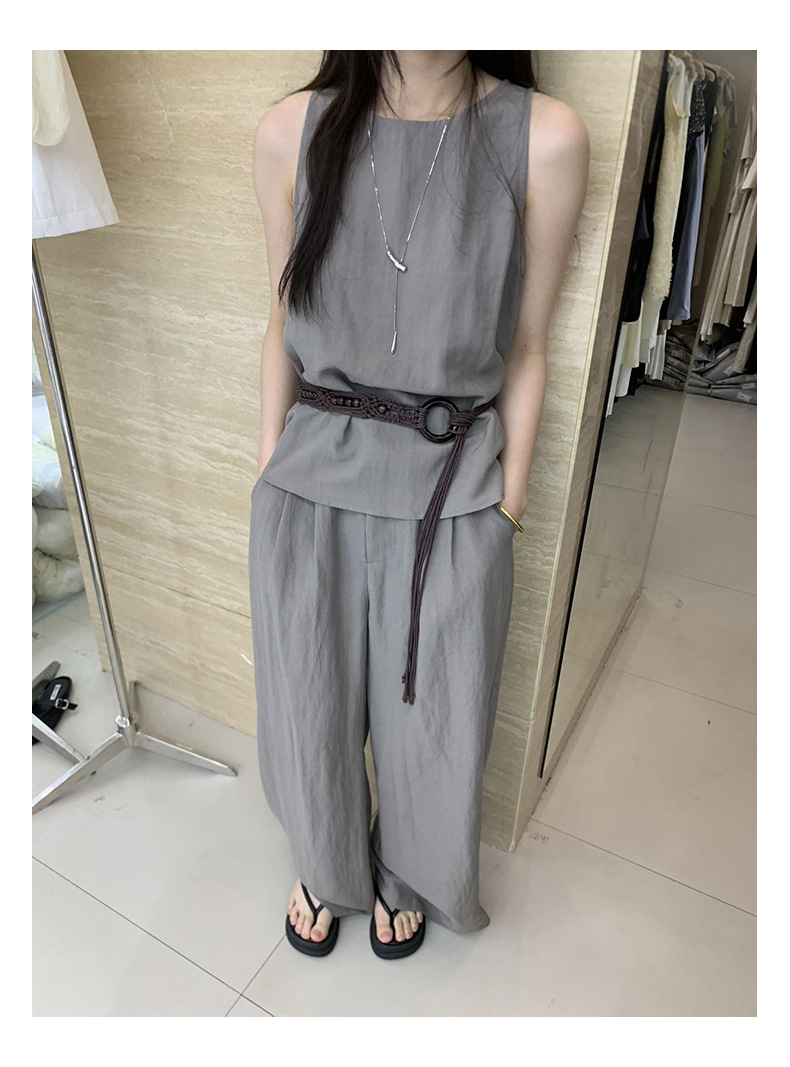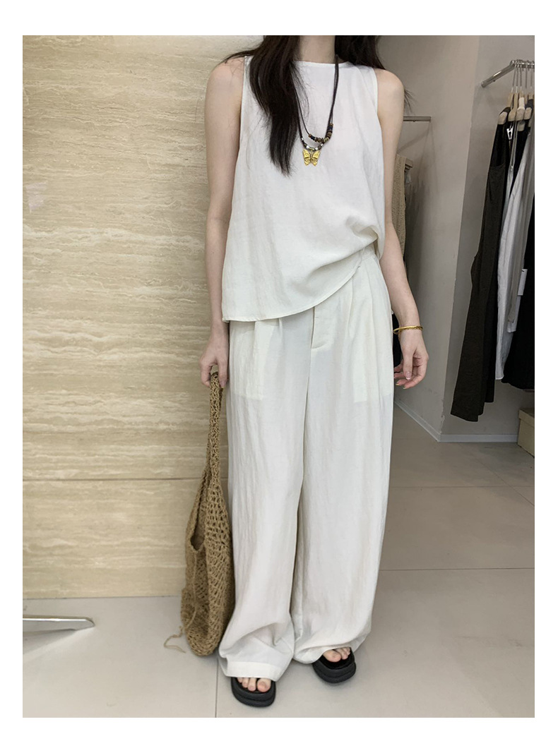 【商品名】【ボトムス】夏 シンプル 通勤 タンクトップ+テンセル ワイドレッグパンツ 上下セットアップ【JZシリーズ】
