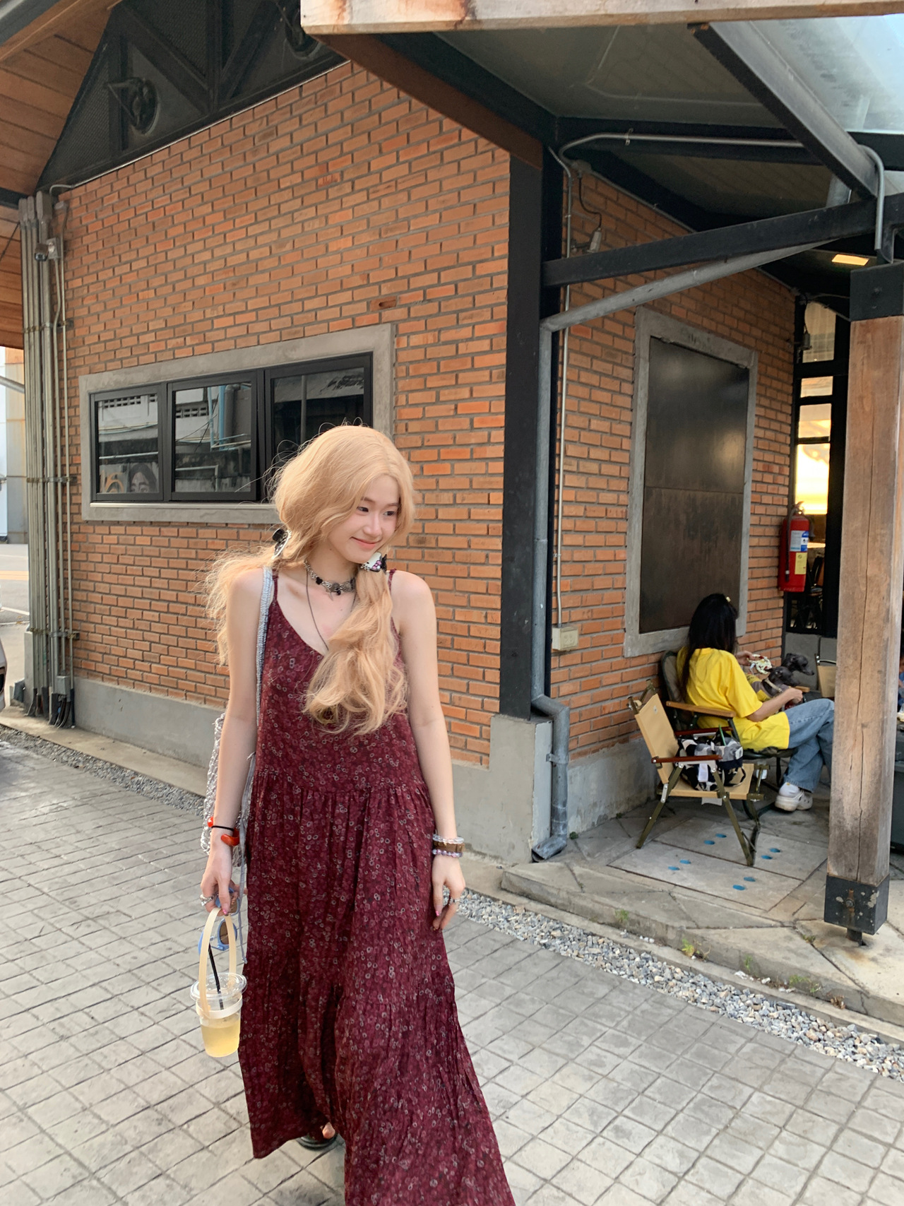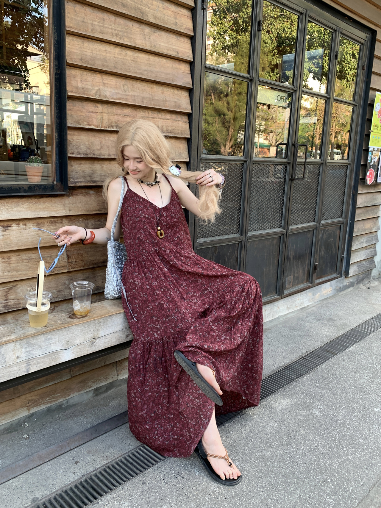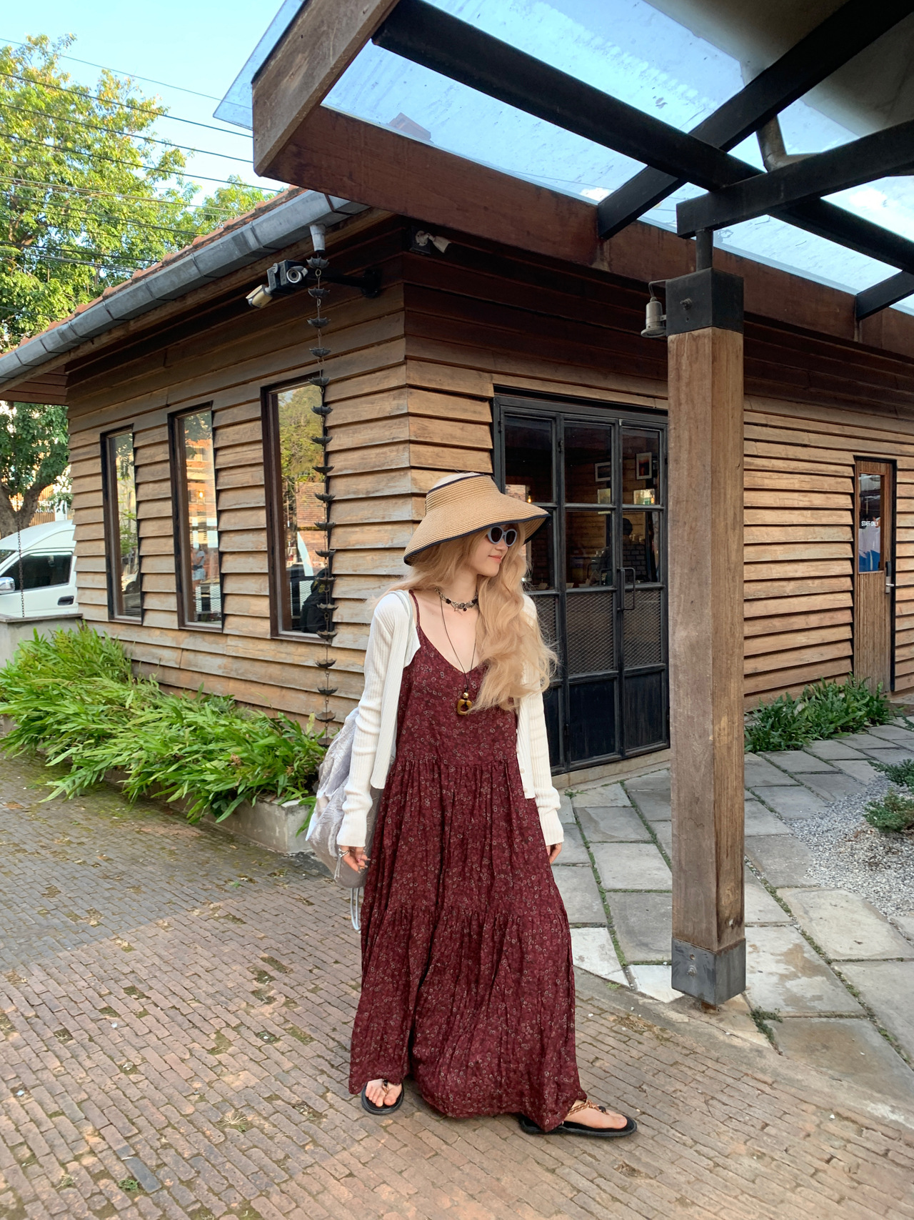 【ワンピース】フレンチエレガンス 花柄 Vネック ノースリーブ キャミワンピース フレアシルエット【SHシリーズ】