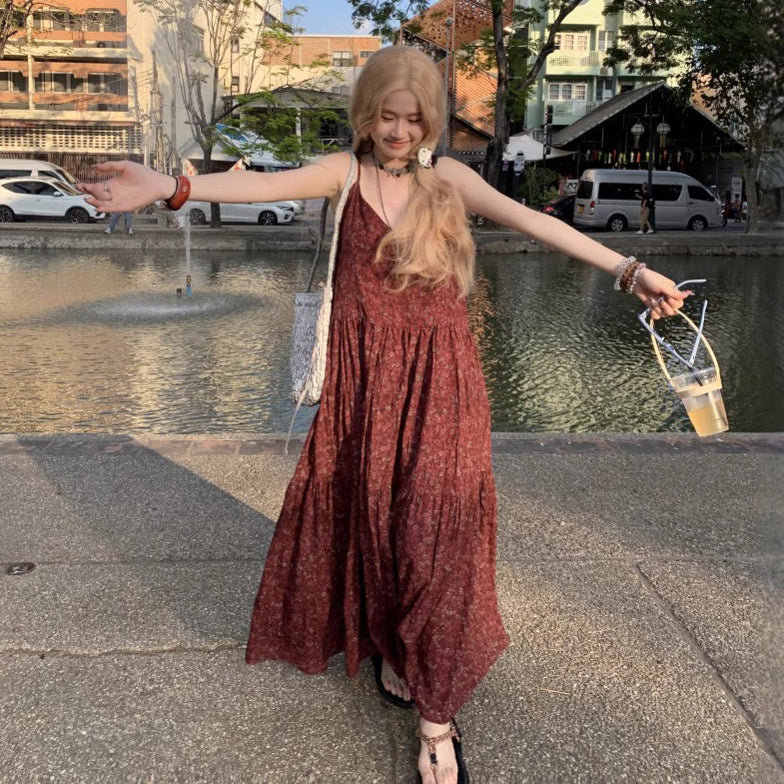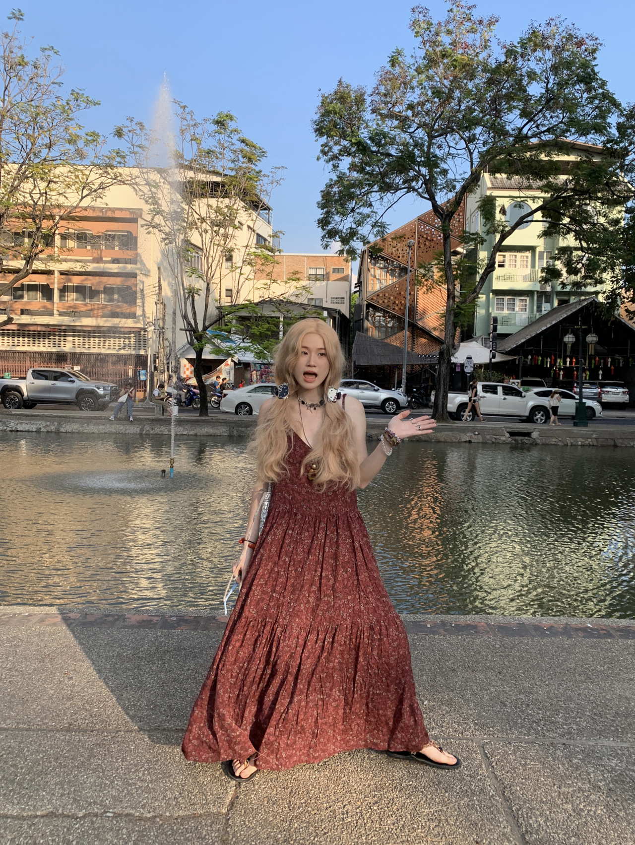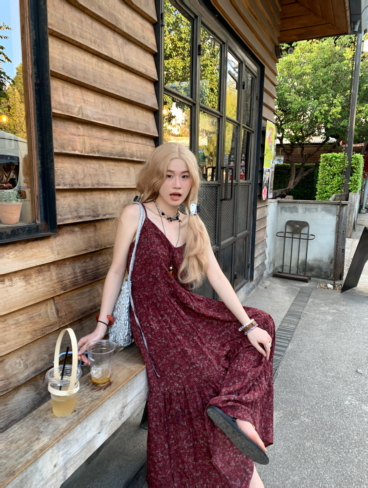 【ワンピース】フレンチエレガンス 花柄 Vネック ノースリーブ キャミワンピース フレアシルエット【SHシリーズ】