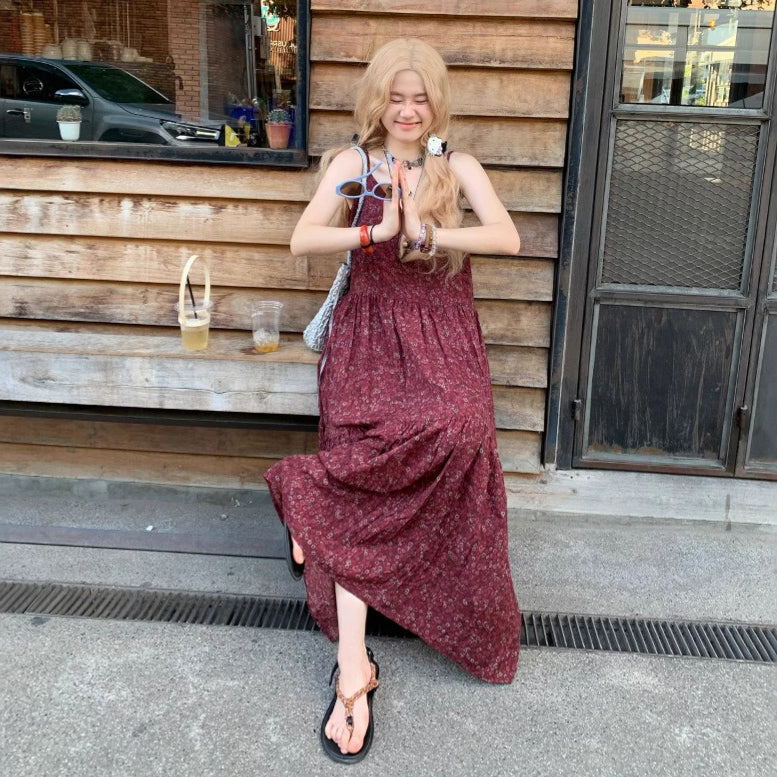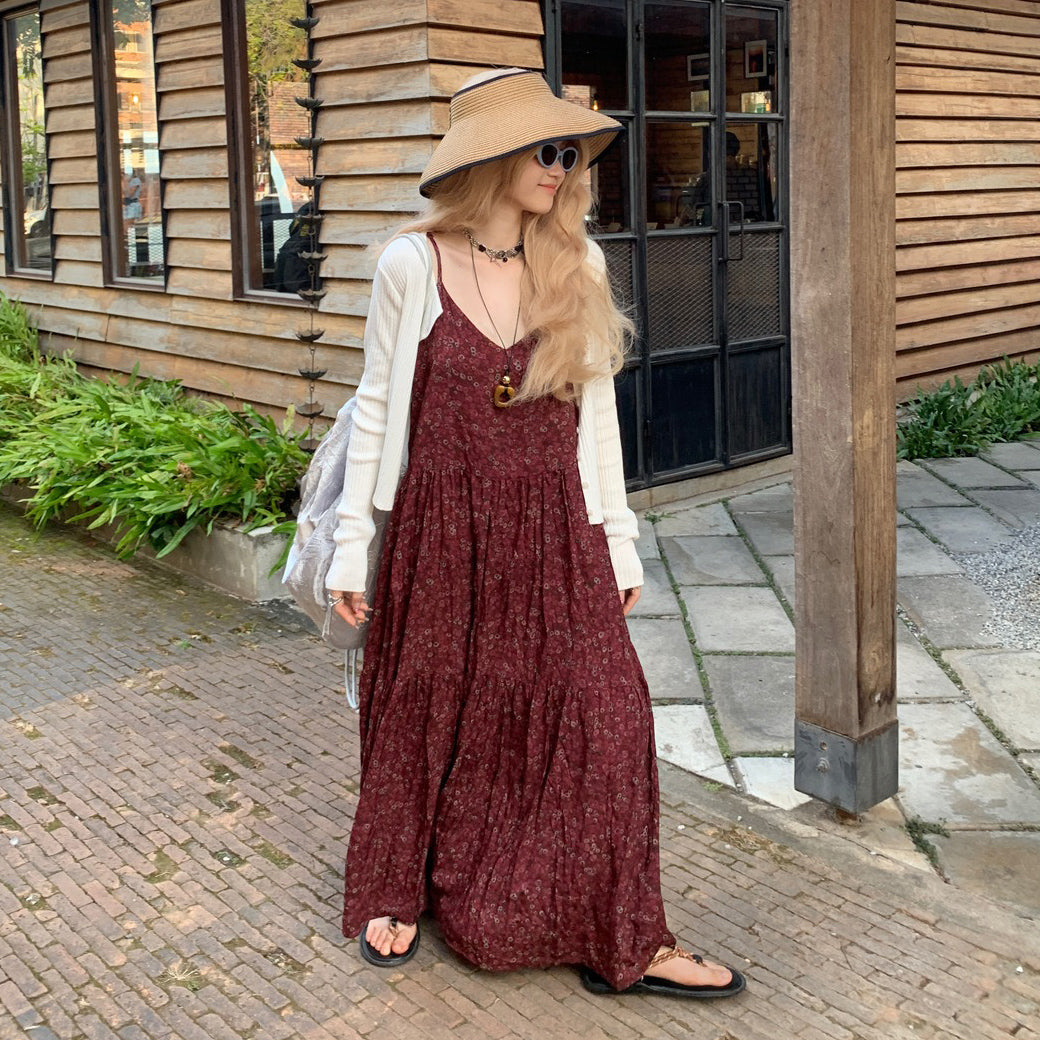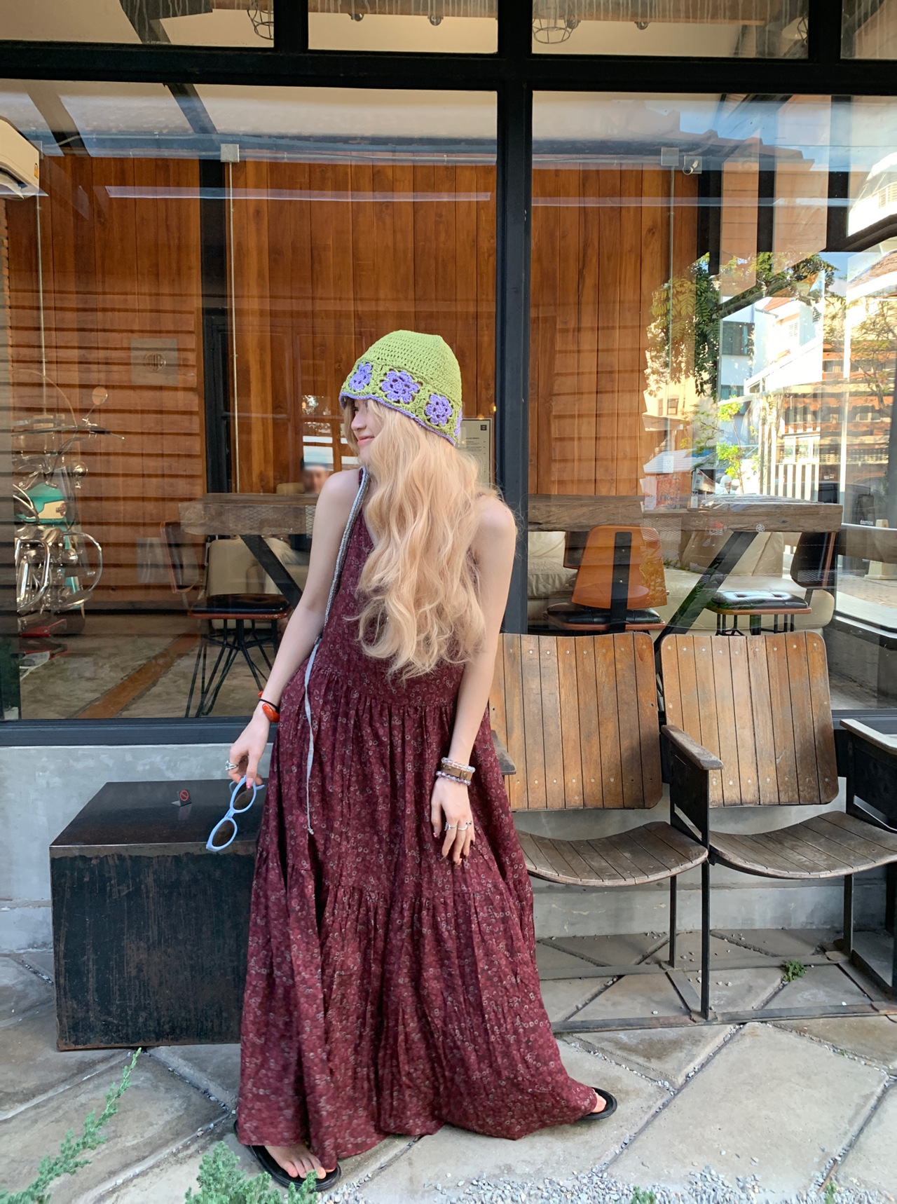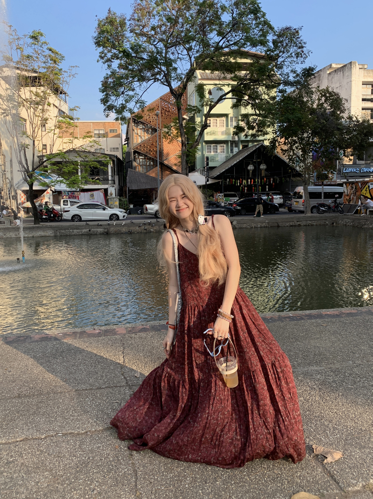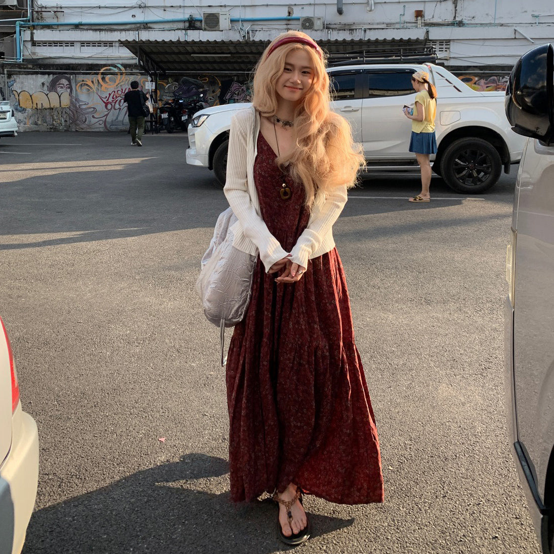 【ボトムス】レトロ 秋冬新作 ゆったり体型カバー 大きめフレア ロング フラワー 裏起毛スカート【SHシリーズ】