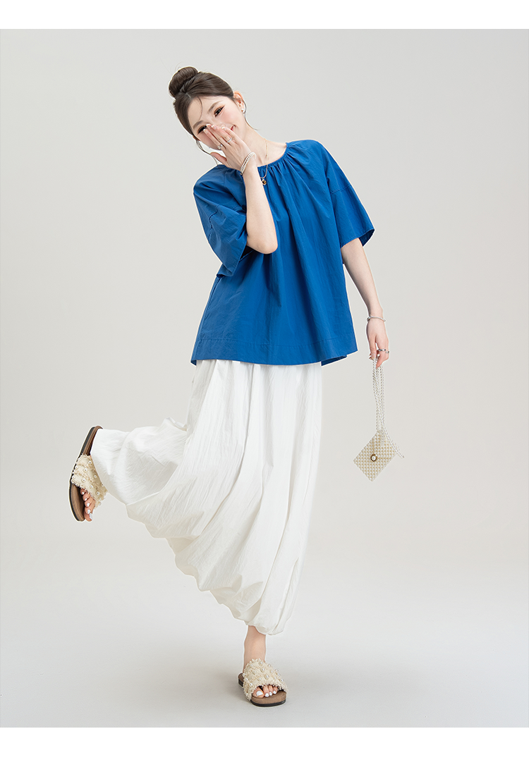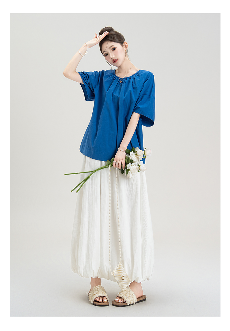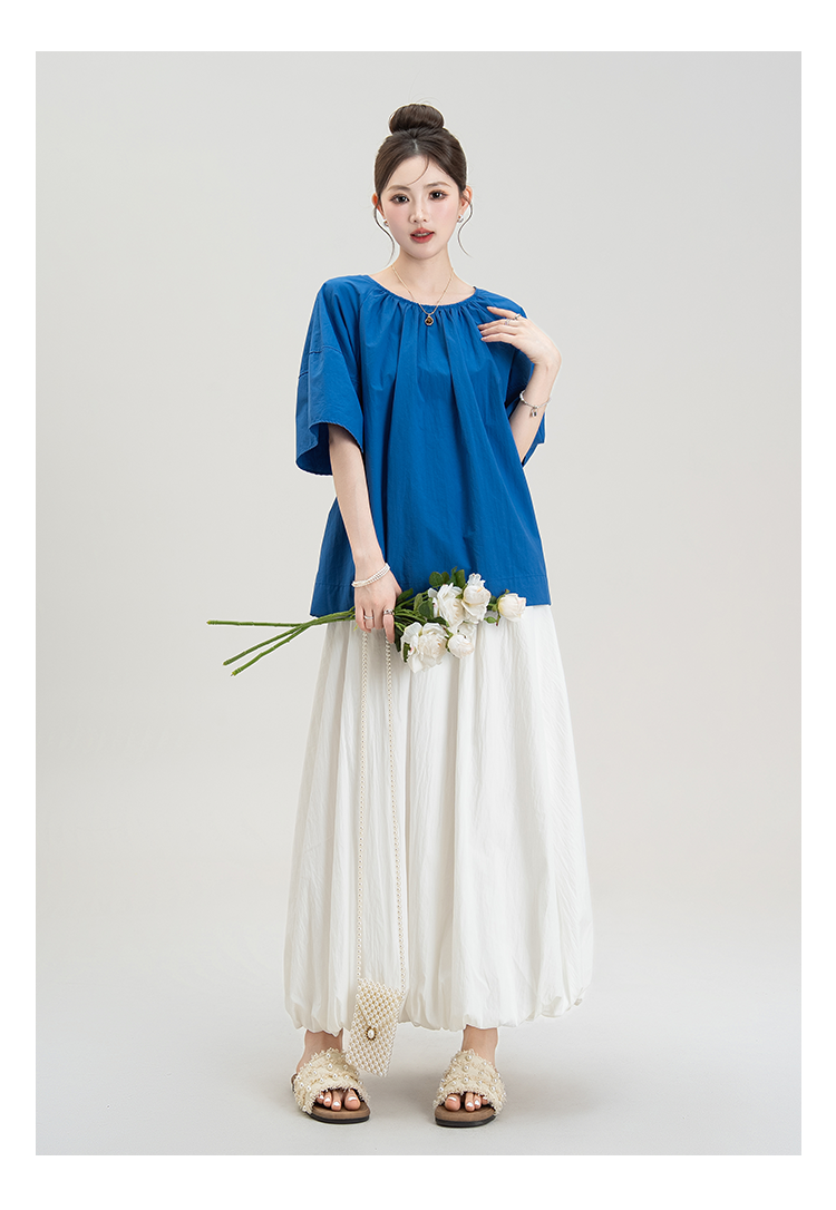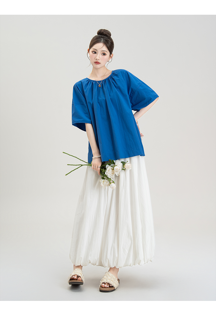 【商品名】【単品注文】【ボトムス】夏新作 フレンチガーリー感 後ろリボンオープンバック 半袖シャツ+ハイウエスト スカート 上下セット【JZシリーズ】