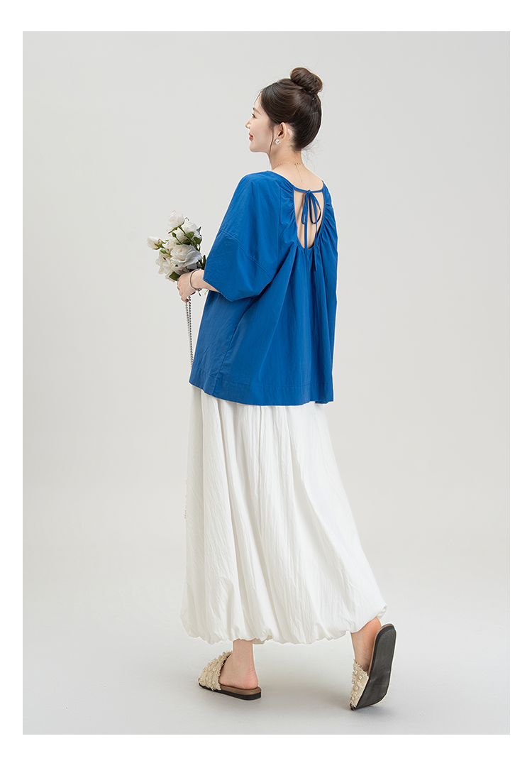 【単品注文】【セットアップ】夏新作 フレンチガーリー感 後ろリボンオープンバック 半袖シャツ+ハイウエスト スカート 上下セット【JZシリーズ】