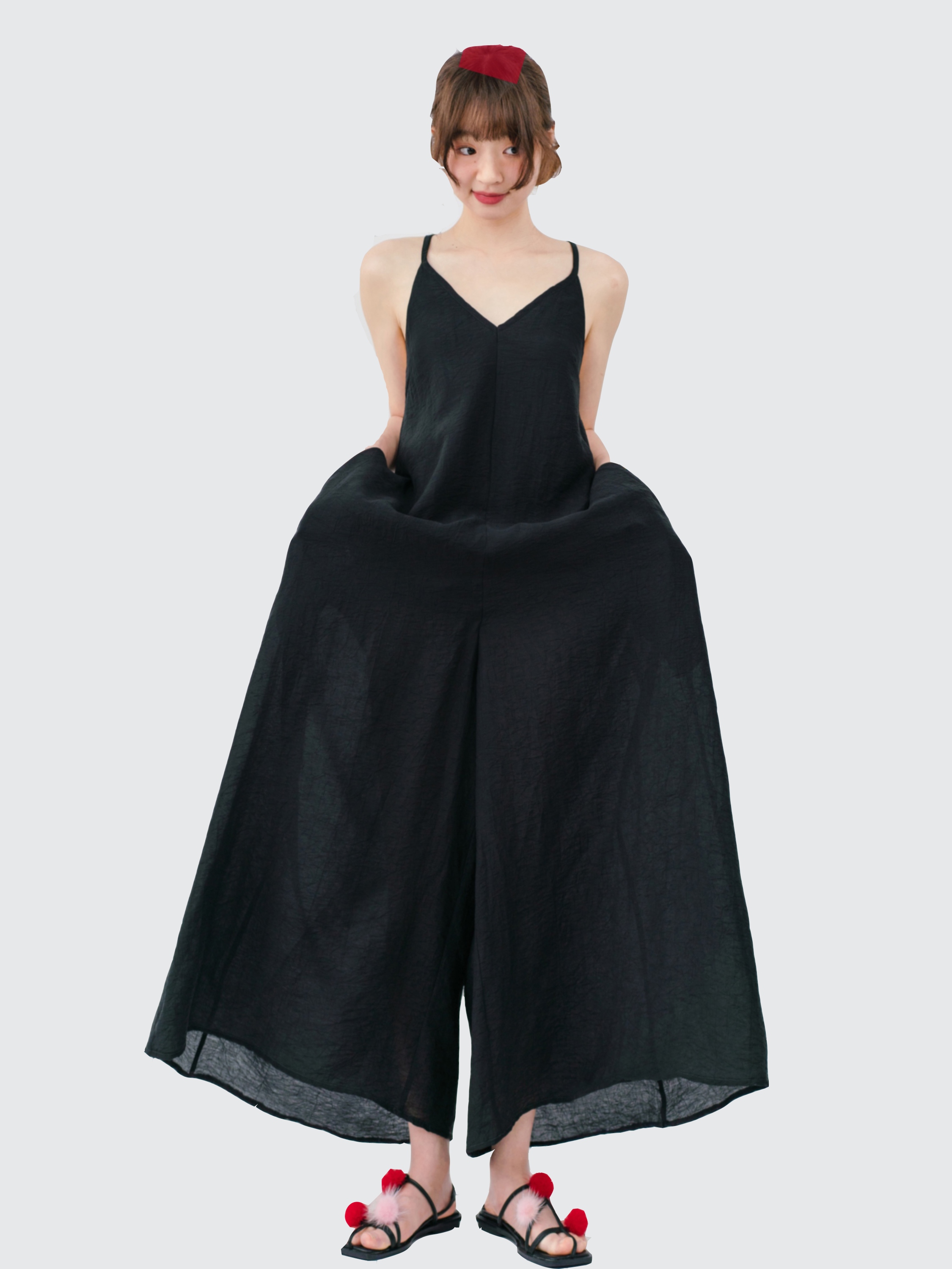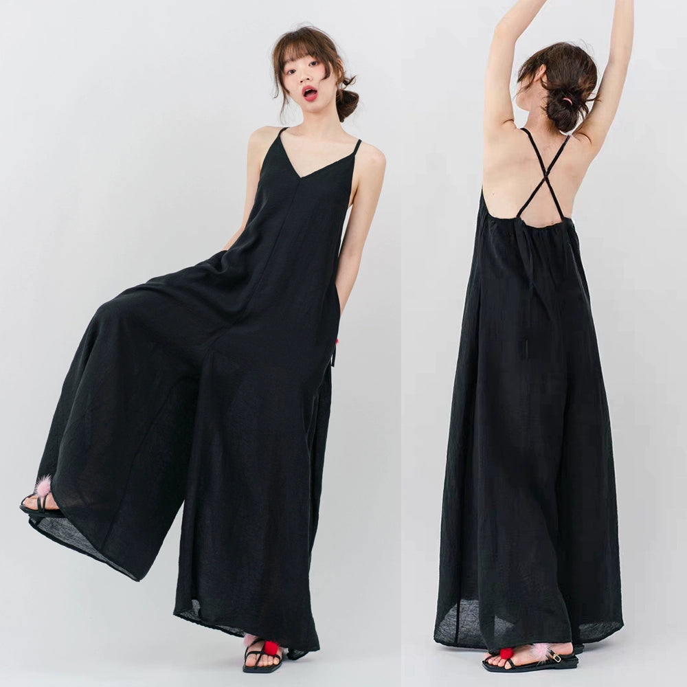 【ボトムス】ミニマルでおしゃれなオーバーサイズ 夏用 ゆったり涼しい キャミソールオールインワン