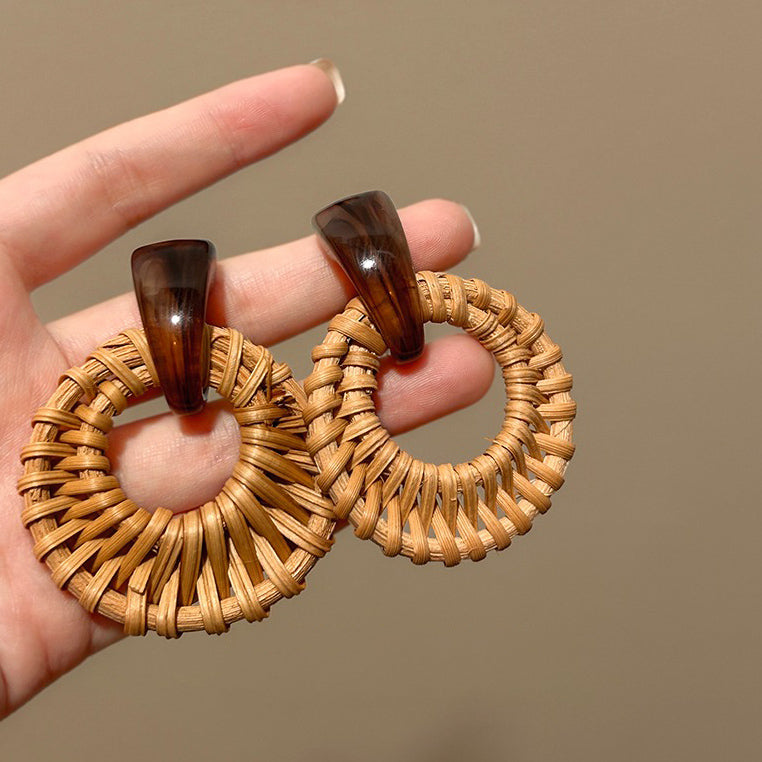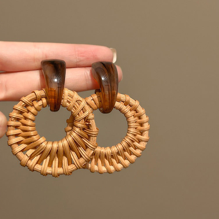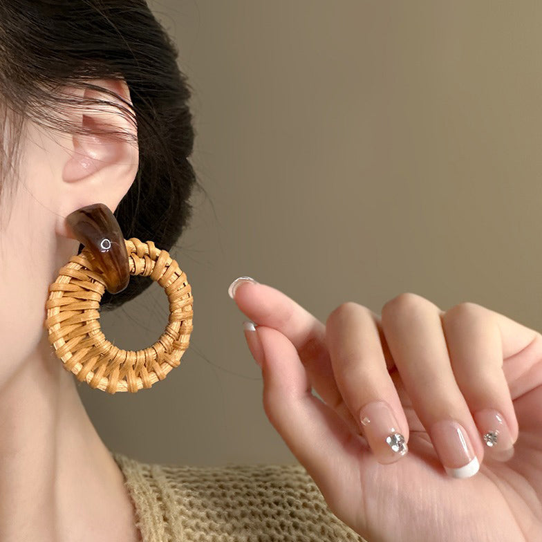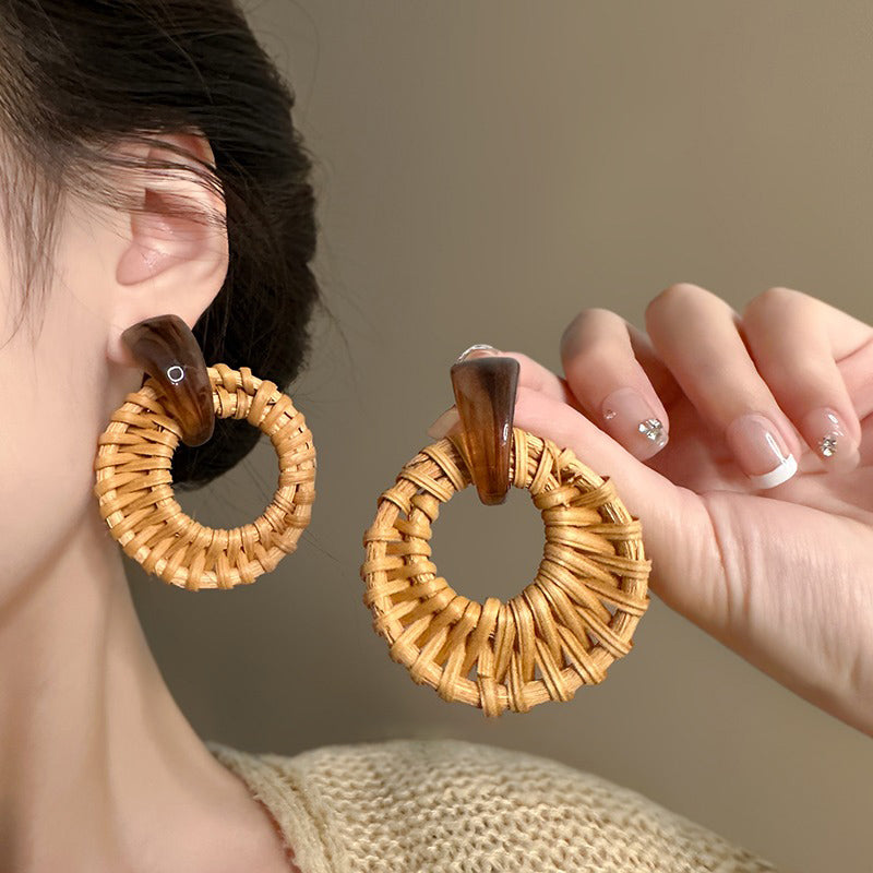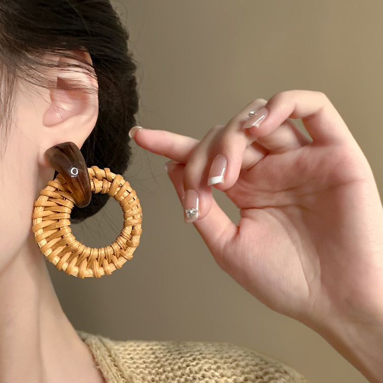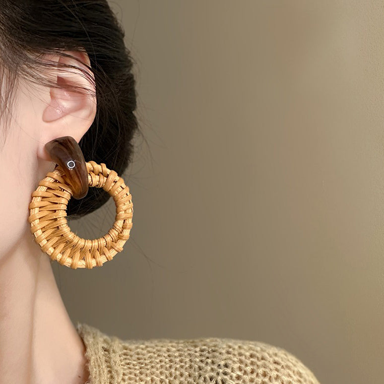 【🎁 B2G1|先行スタート!】【グッズ】ヴィンテージ風バンブー&ストロー編みピアス 春夏にぴったりのリゾート感&高見えデザイン