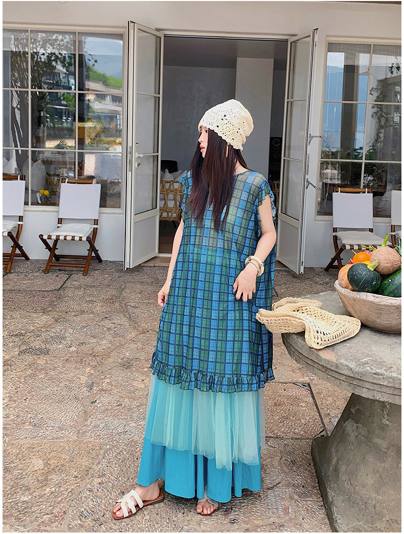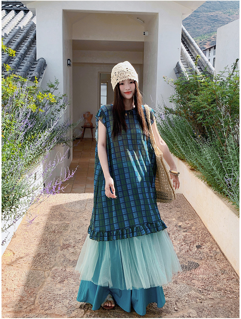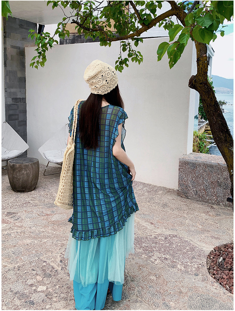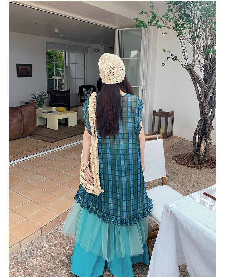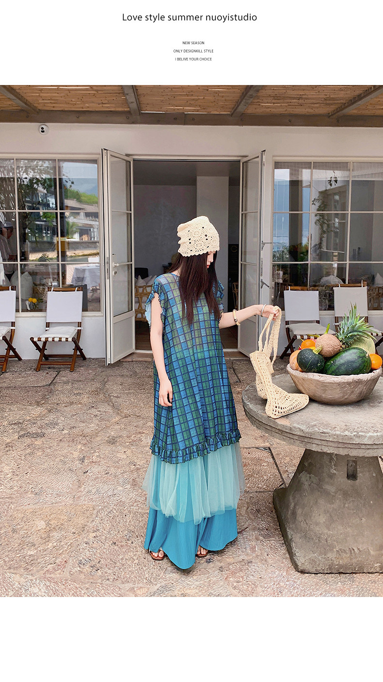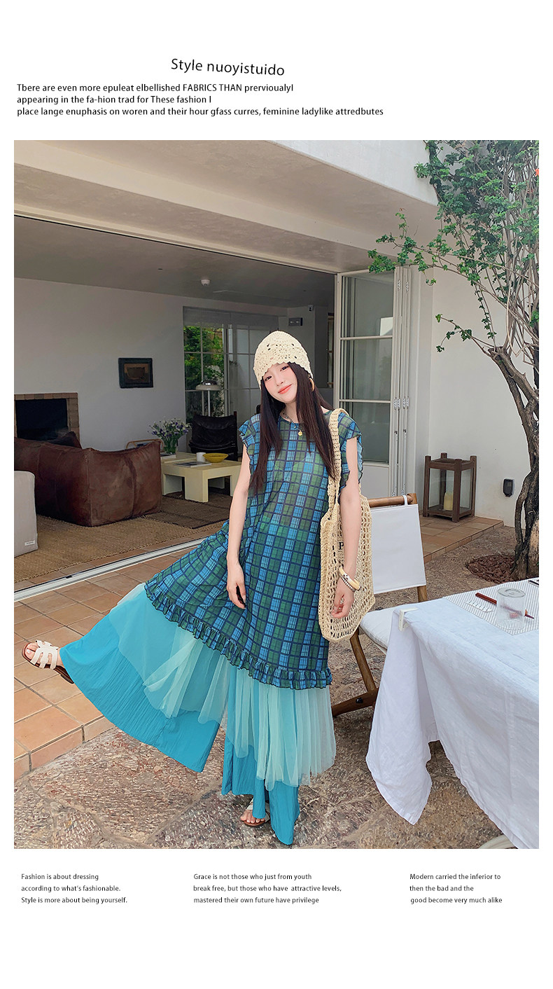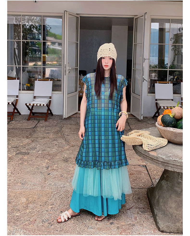 【商品名】【ワンピース】配色チェック柄ベストワンピース+ワイドパンツセットアップ 2点セット【SHシリーズ】