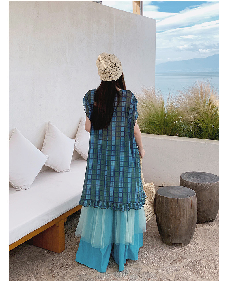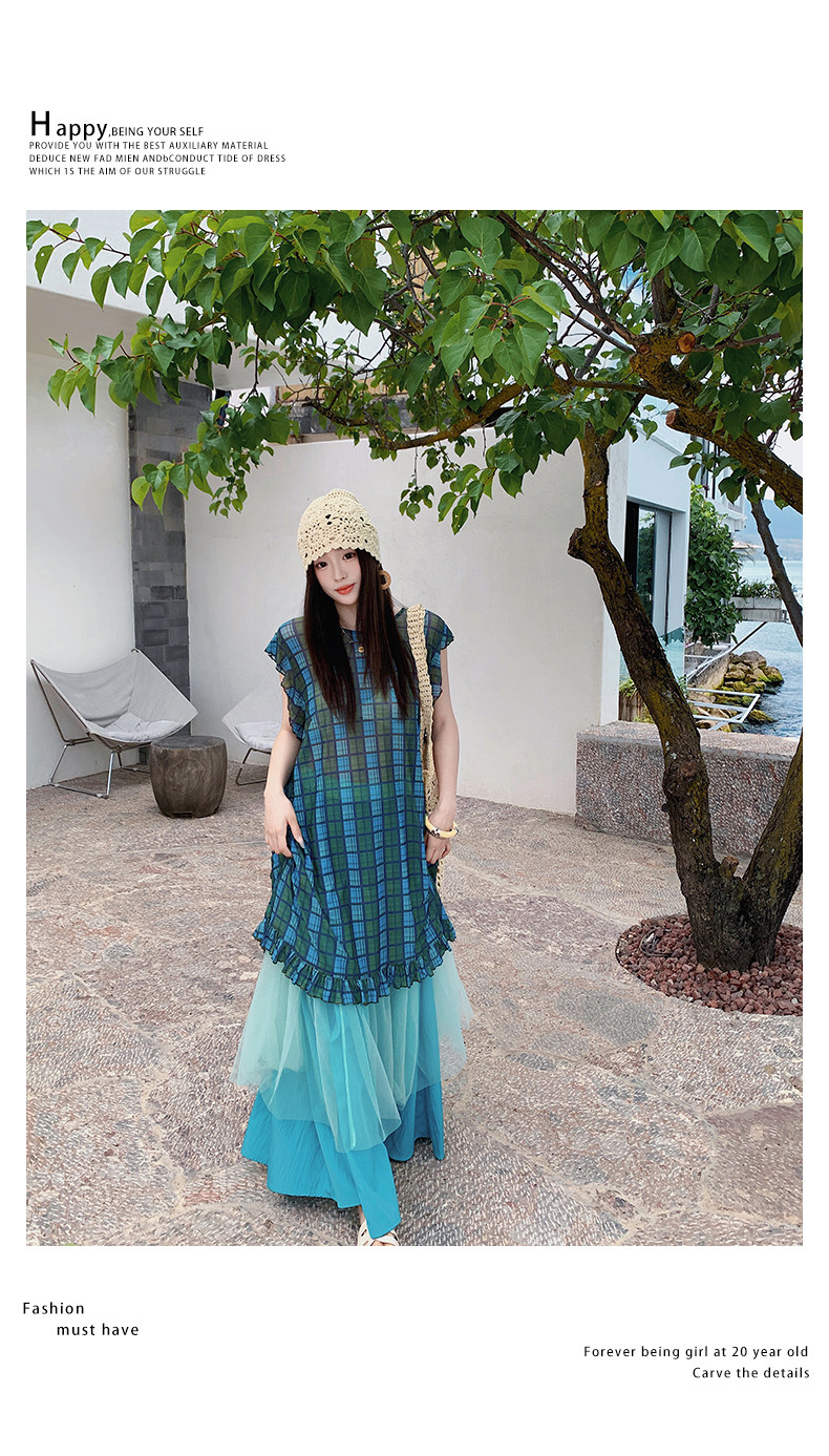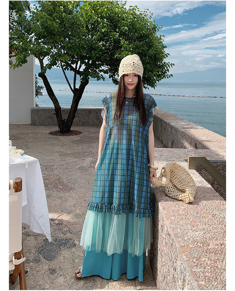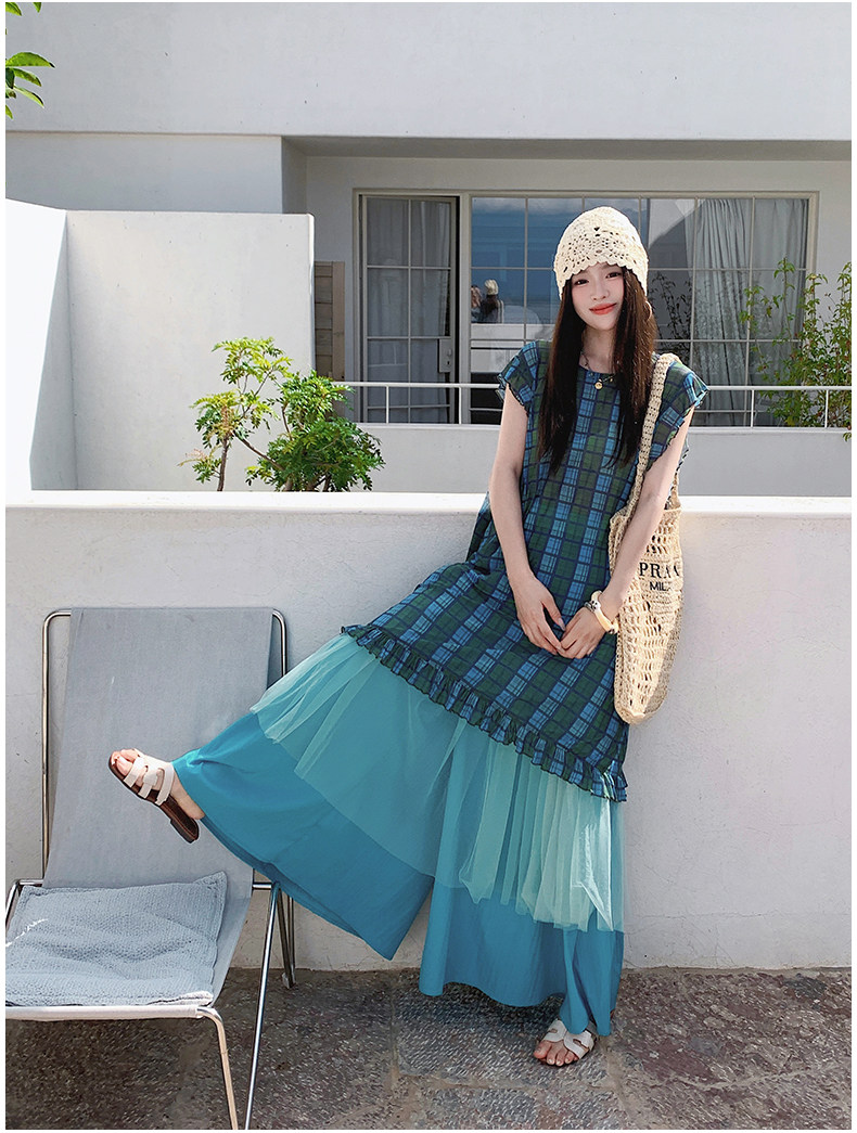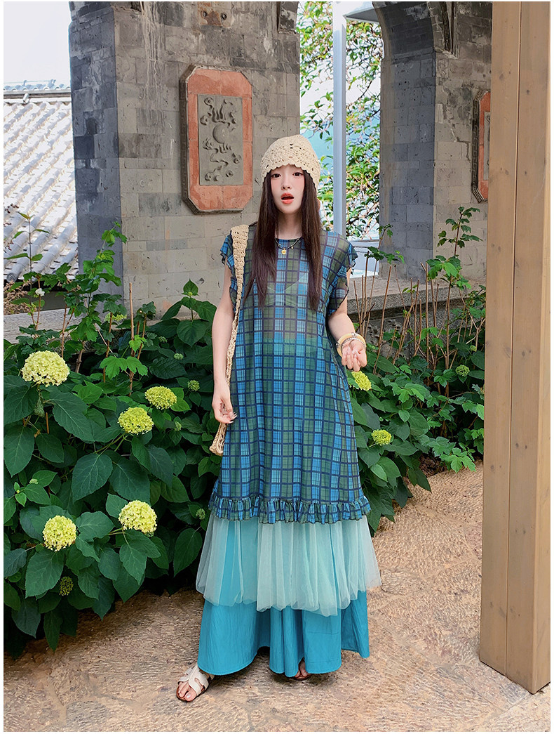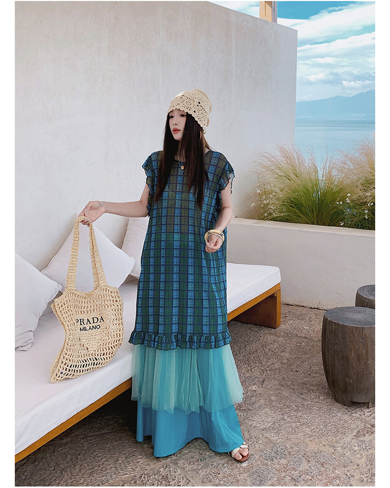 【商品名】【ワンピース】配色チェック柄ベストワンピース+ワイドパンツセットアップ 2点セット【SHシリーズ】