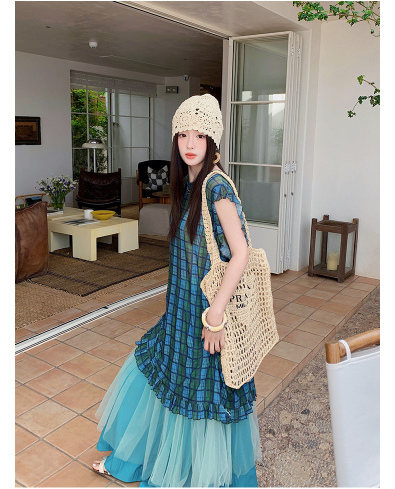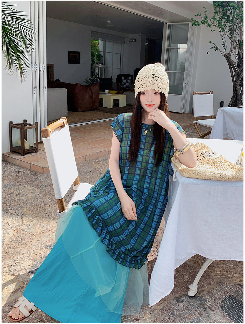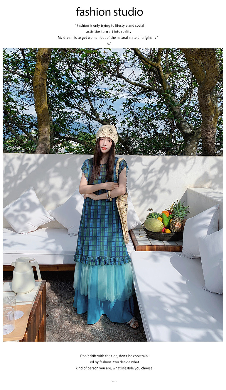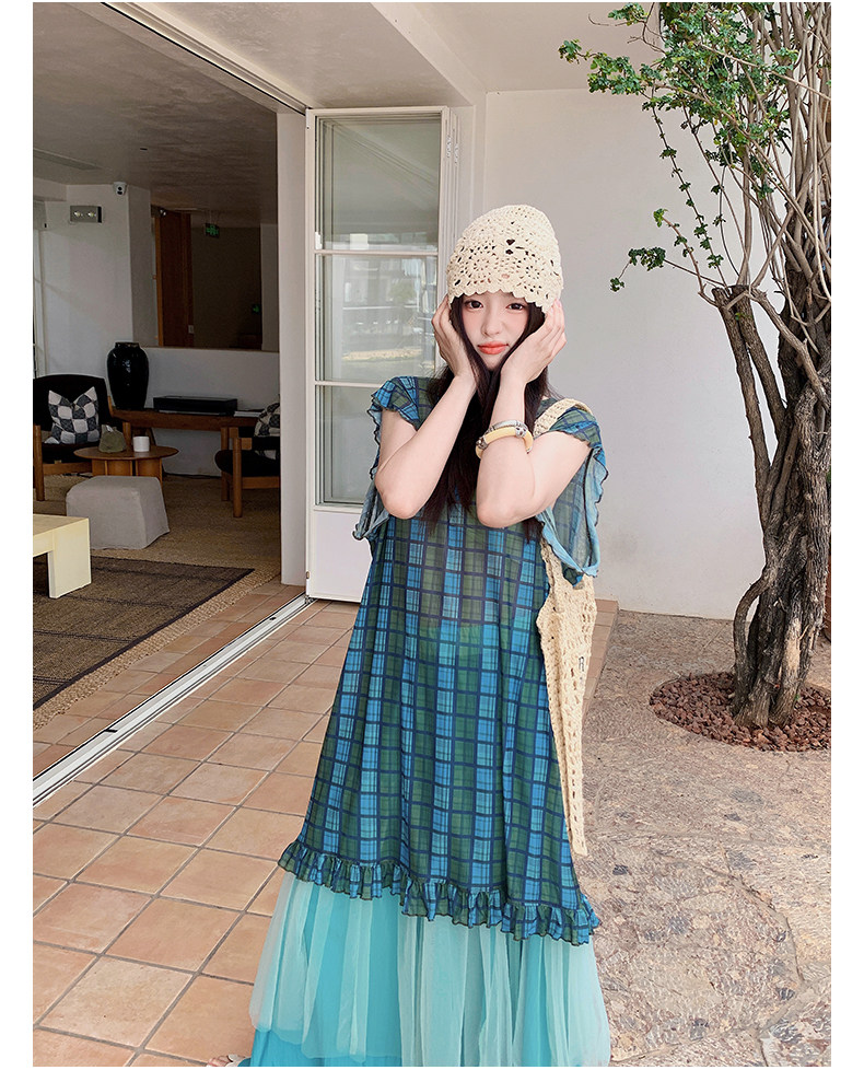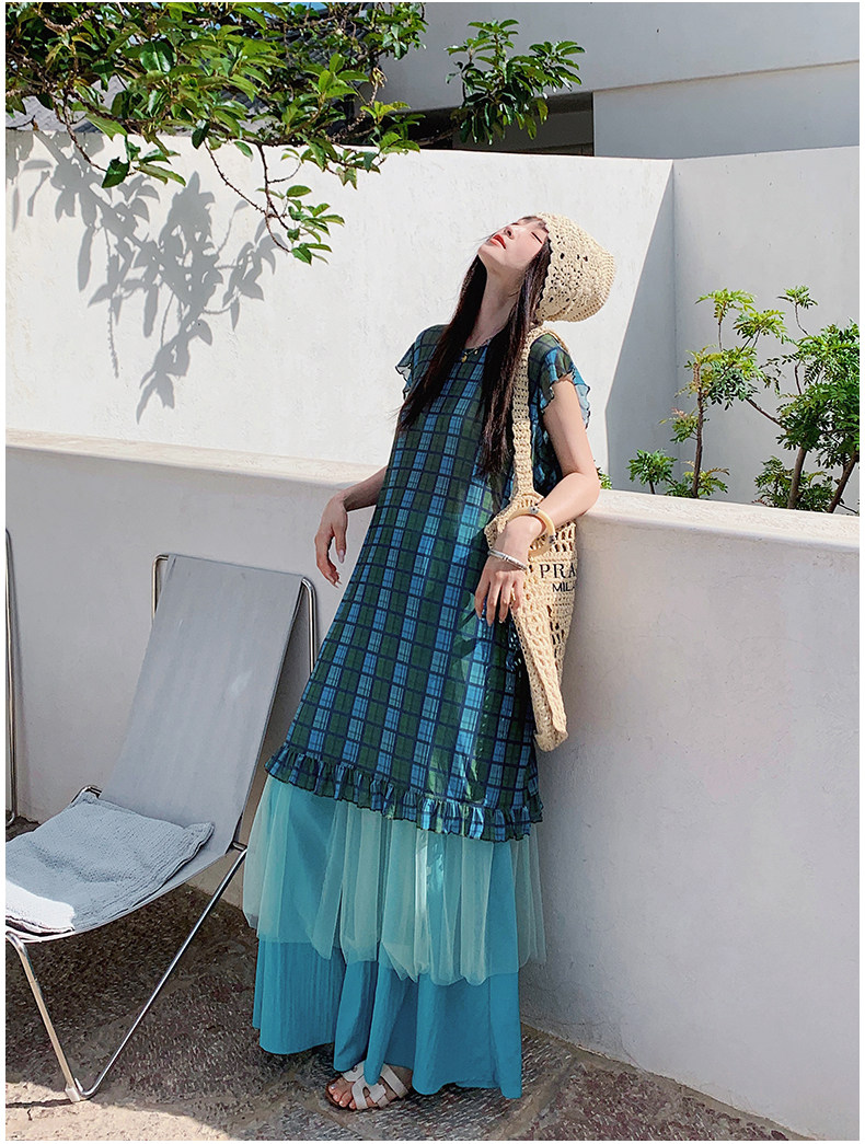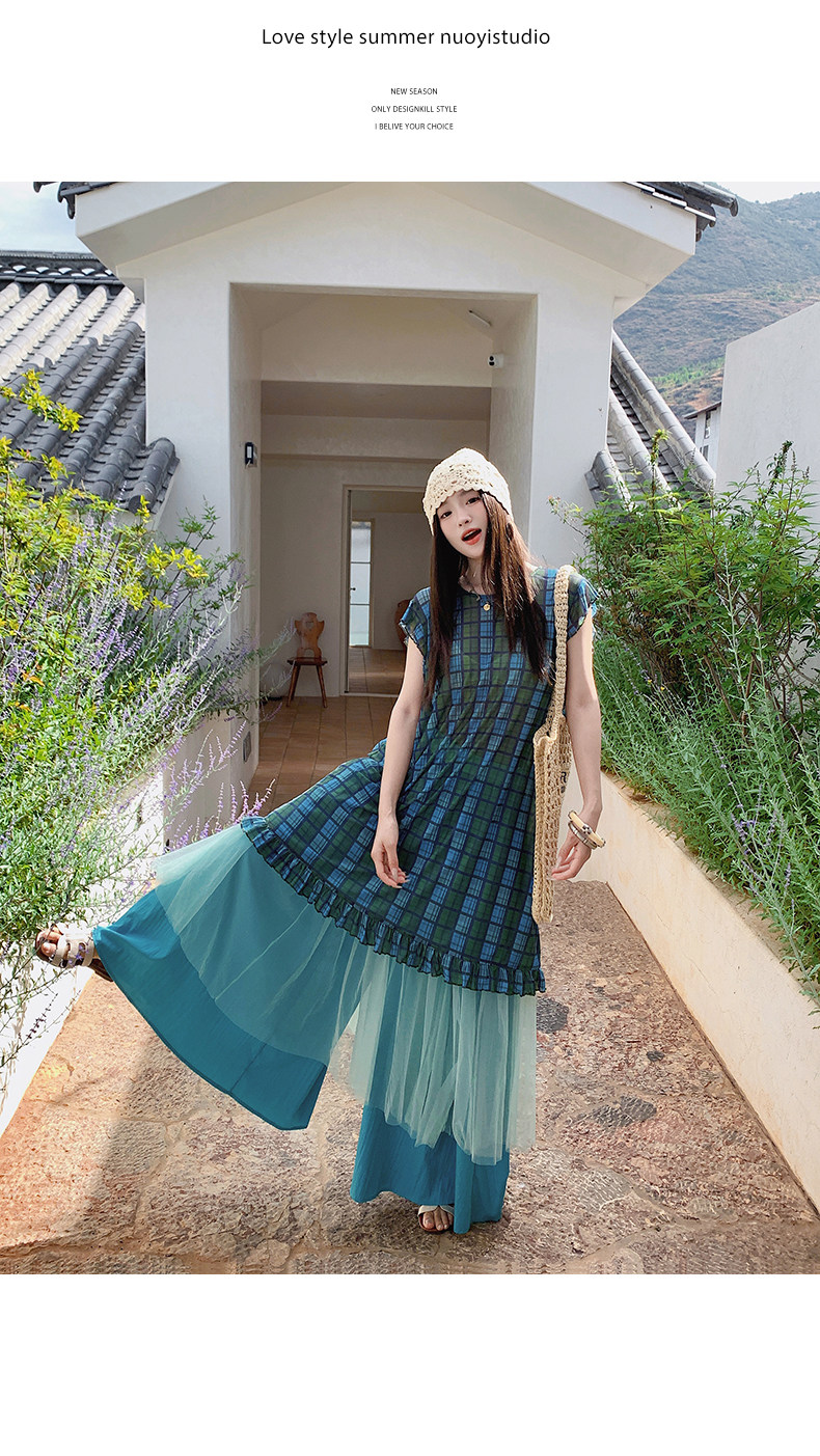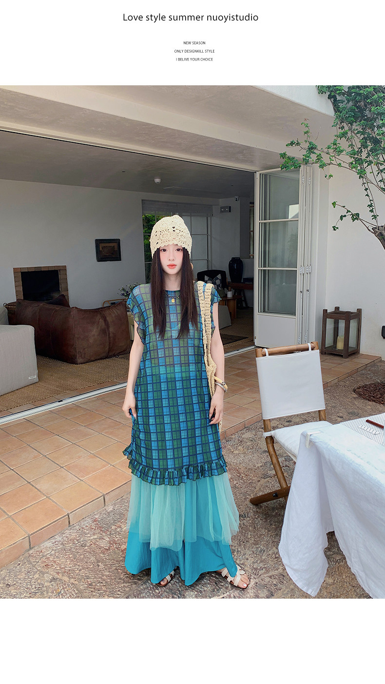 【商品名】【ワンピース】配色チェック柄ベストワンピース+ワイドパンツセットアップ 2点セット【SHシリーズ】