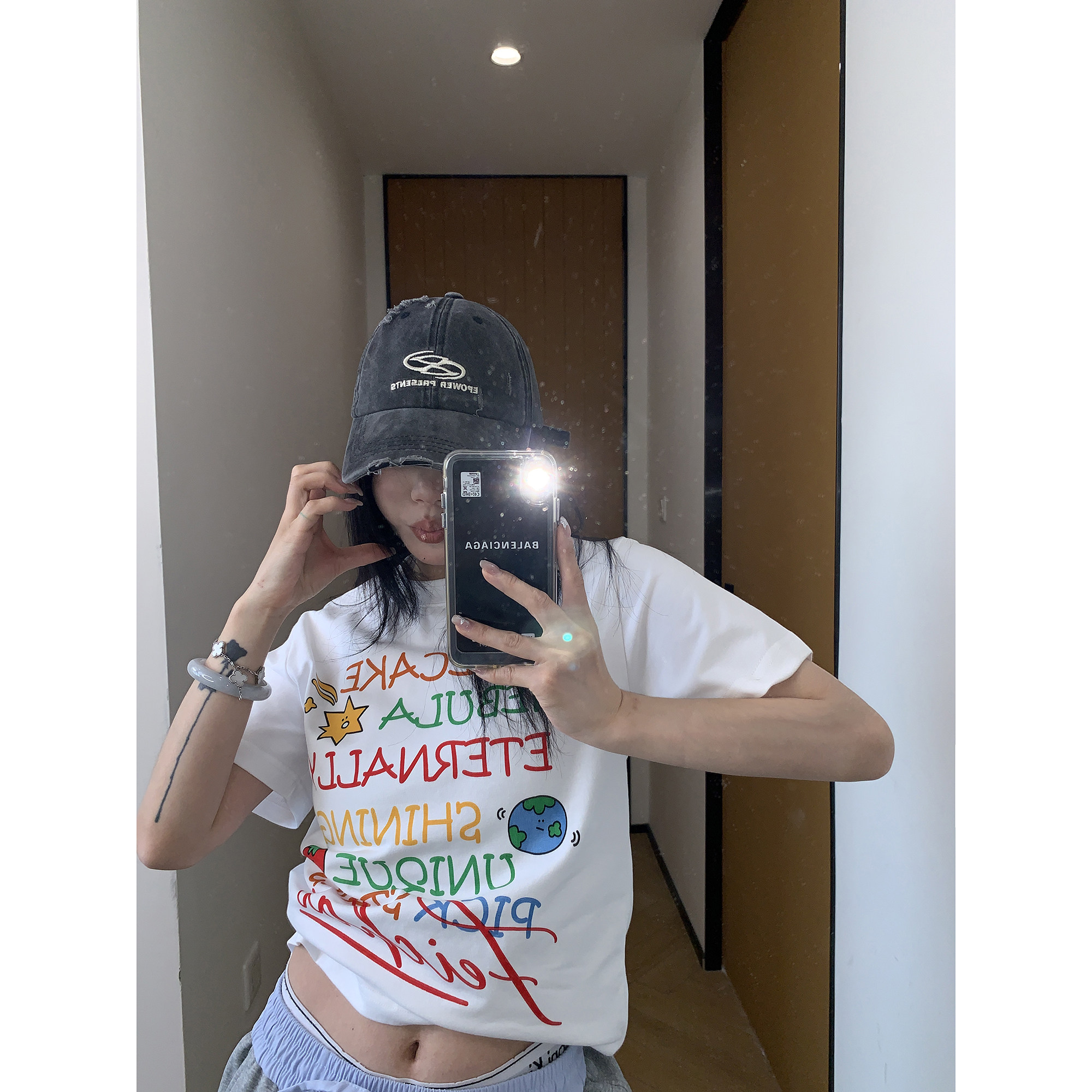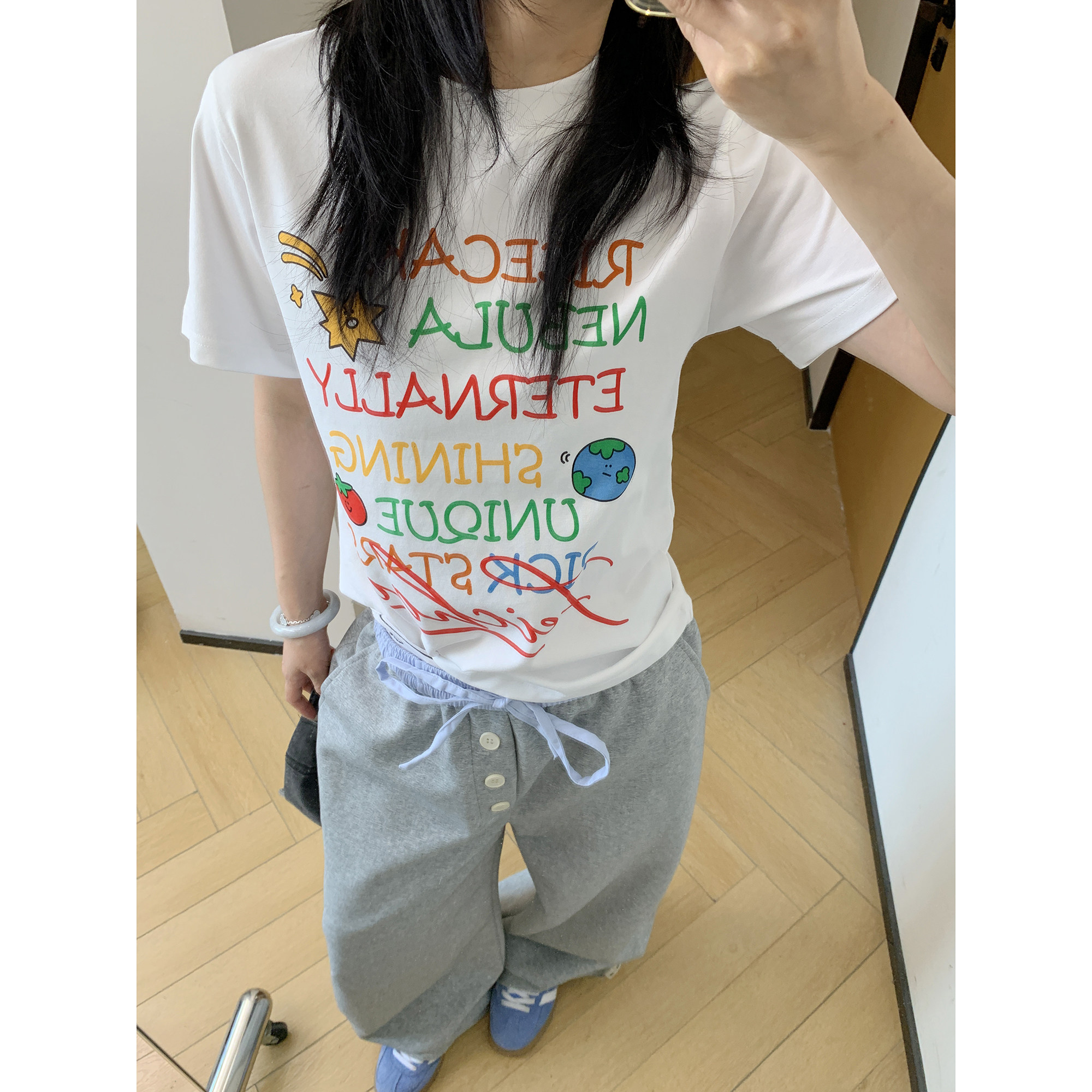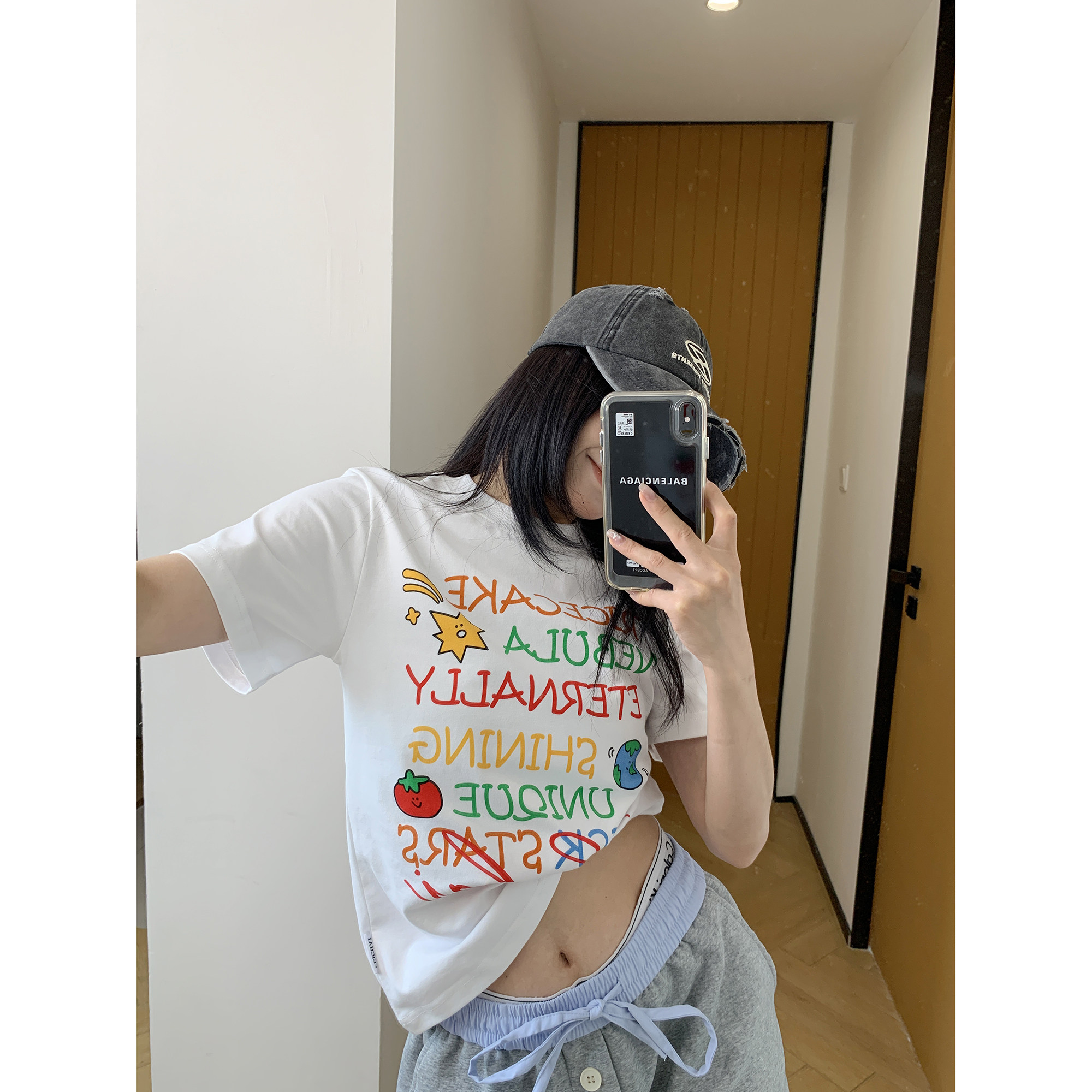 【トップス】夏 グラフィティ風 カラフルロゴプリント ショート丈 Tシャツ 【FCシリーズ】