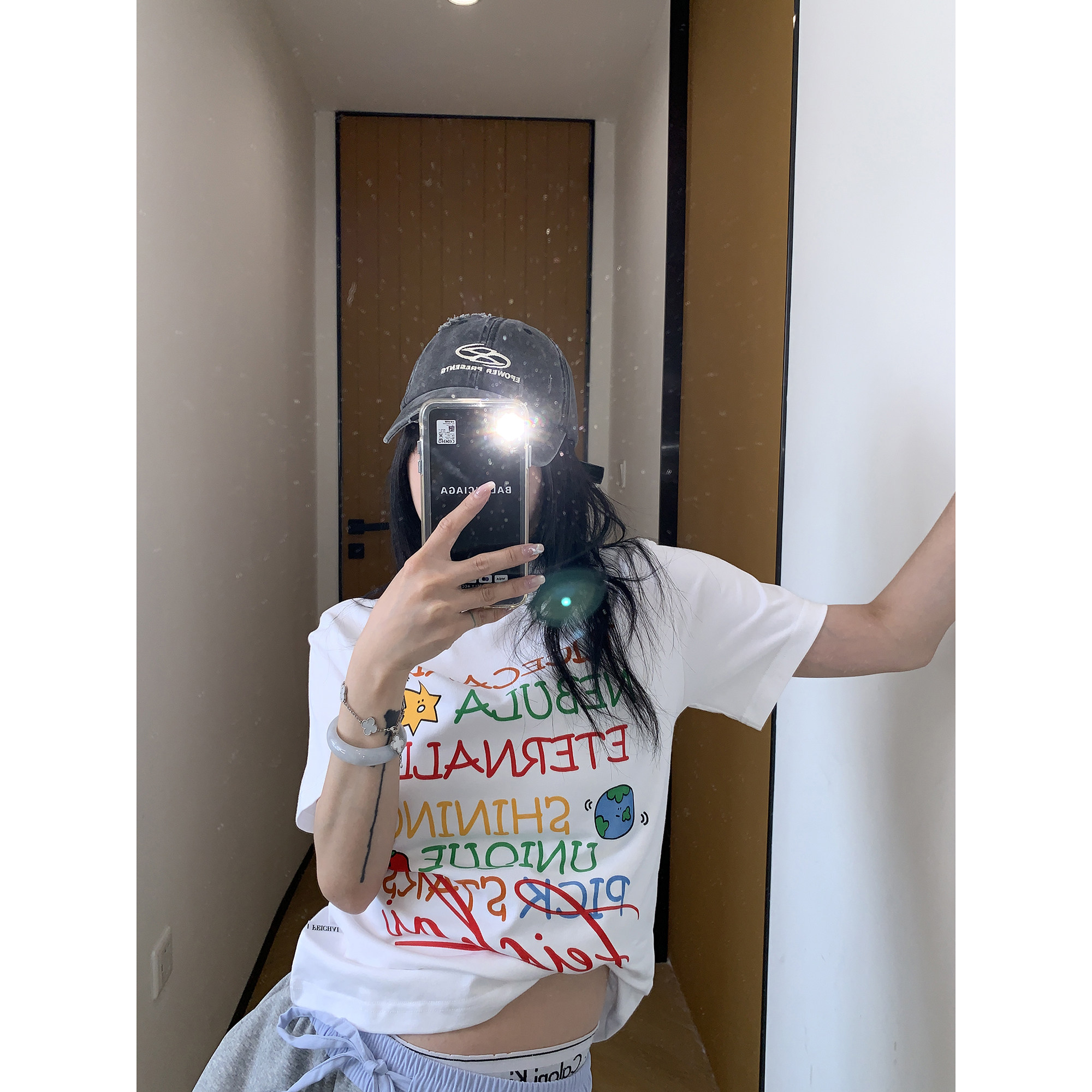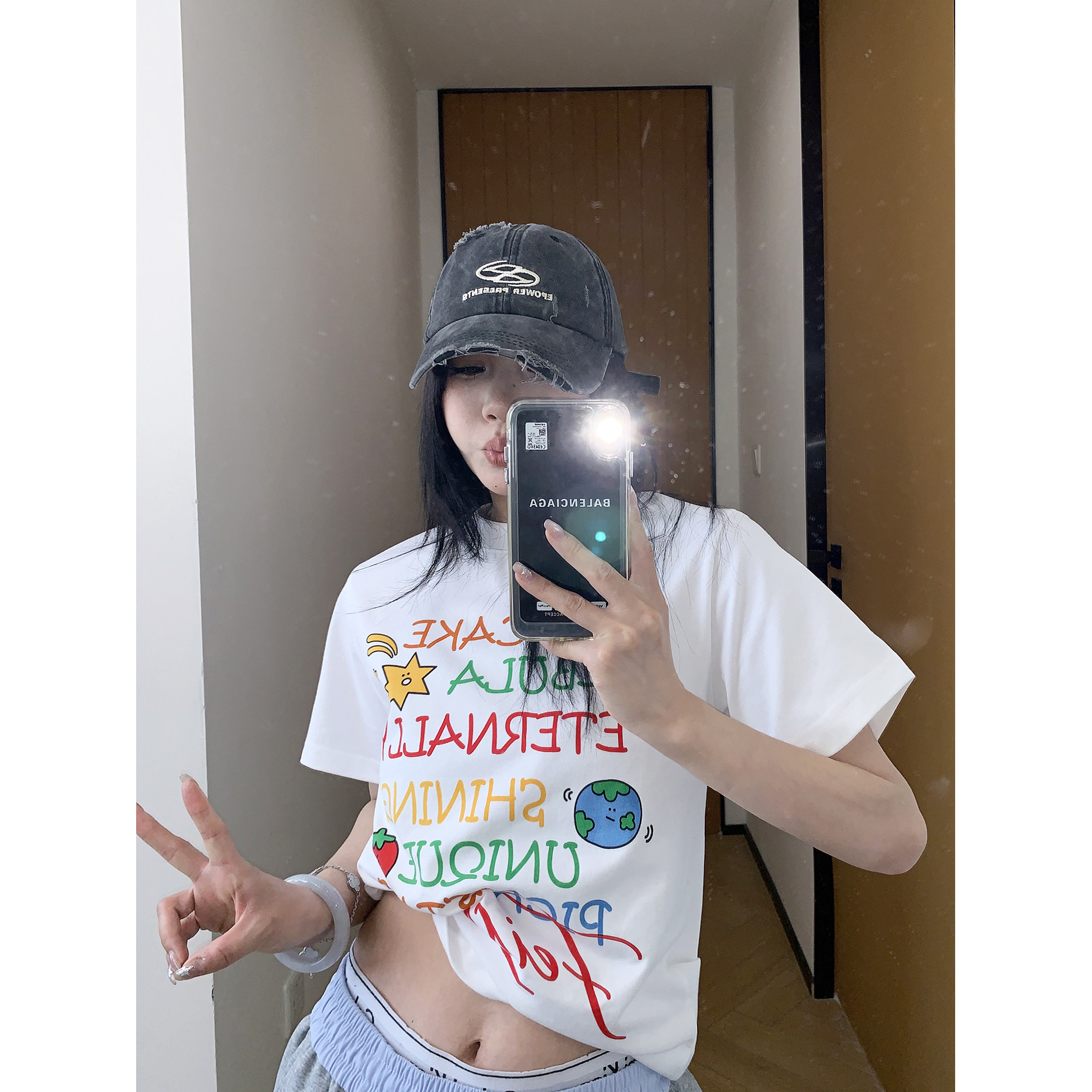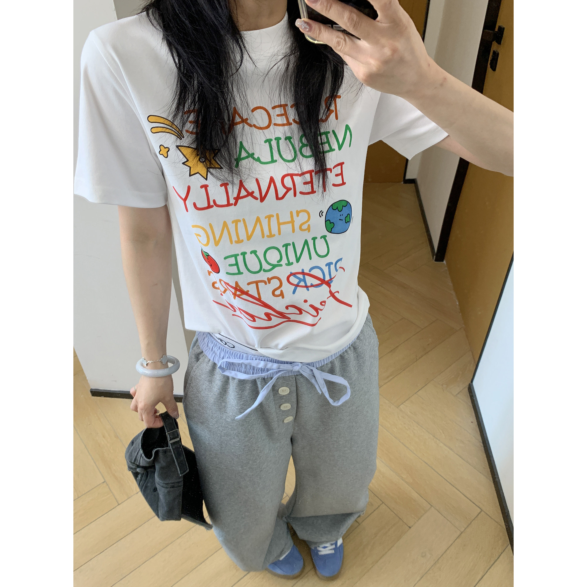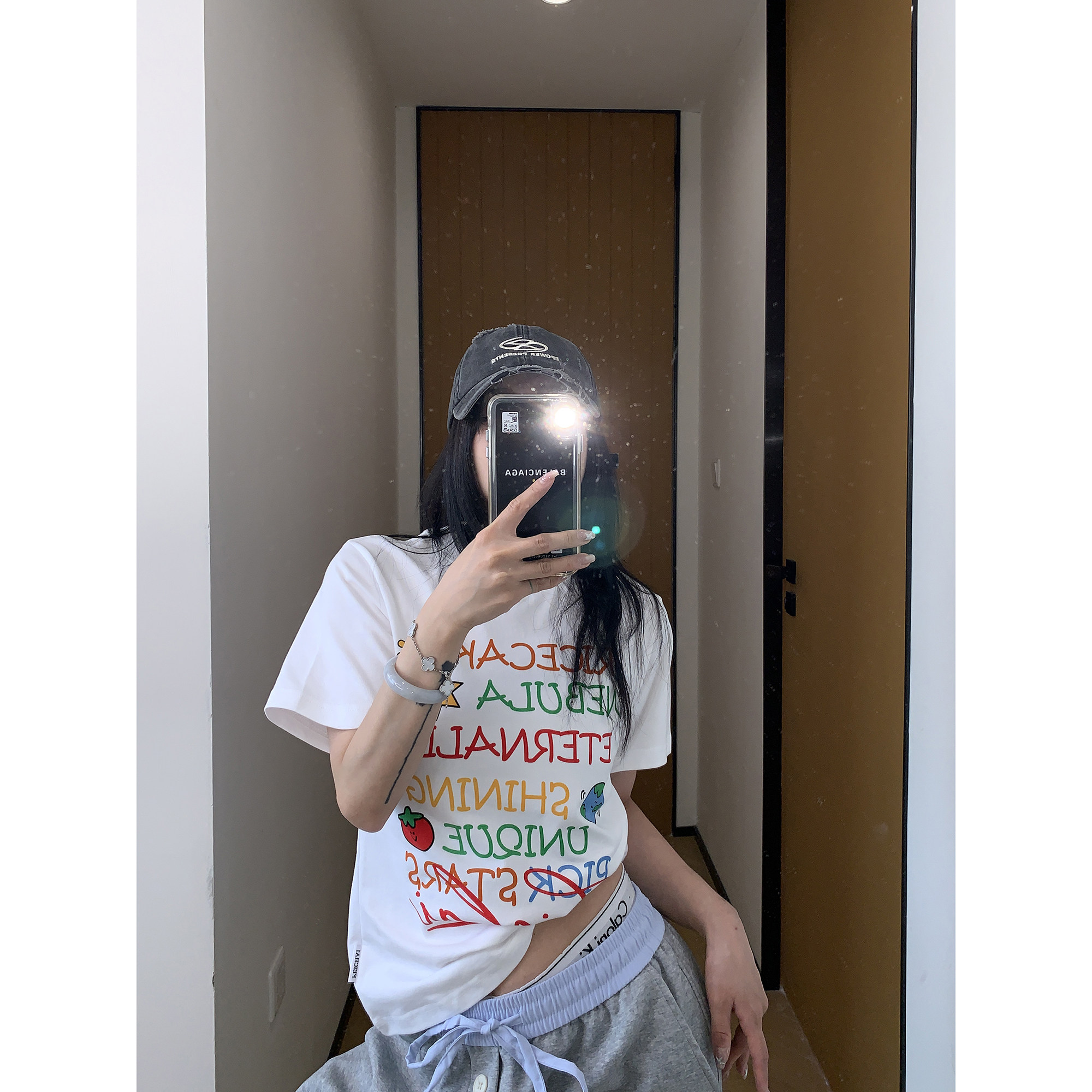 【トップス】夏 グラフィティ風 カラフルロゴプリント ショート丈 Tシャツ 【FCシリーズ】
