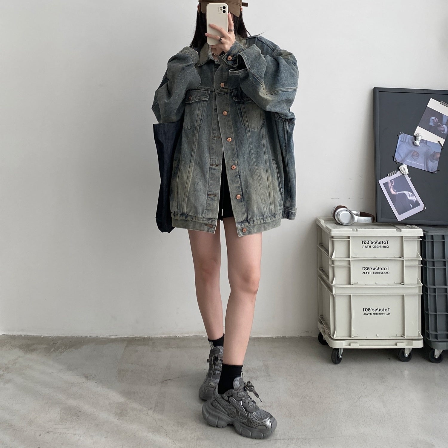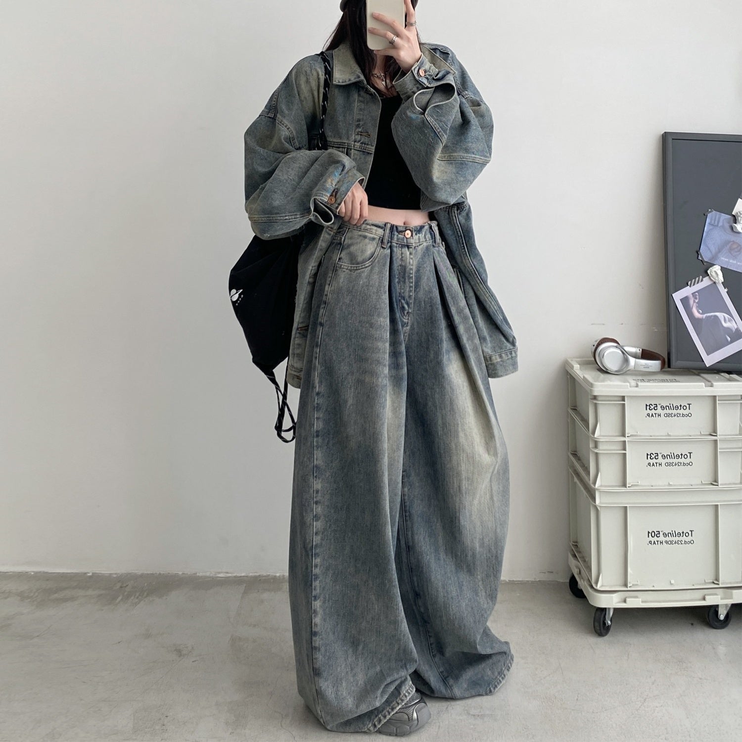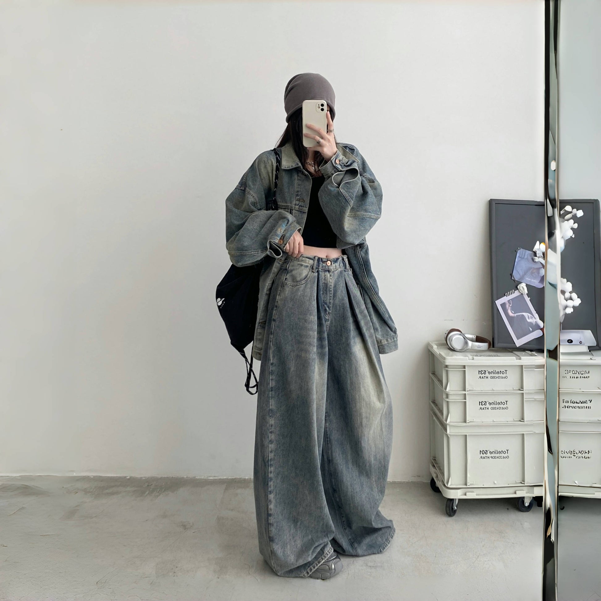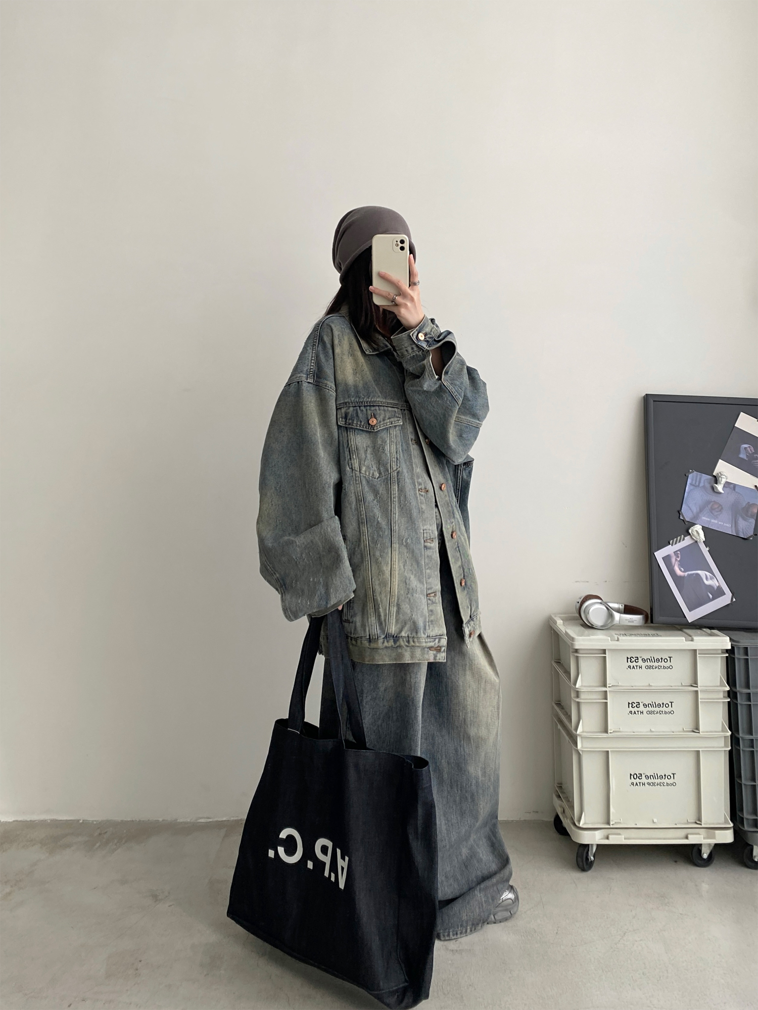【商品名】【アウター】春 秋 夏 ヴィンテージ風 オーバーサイズ ジャケット+パンツ 2点上下セット【FCシリーズ】