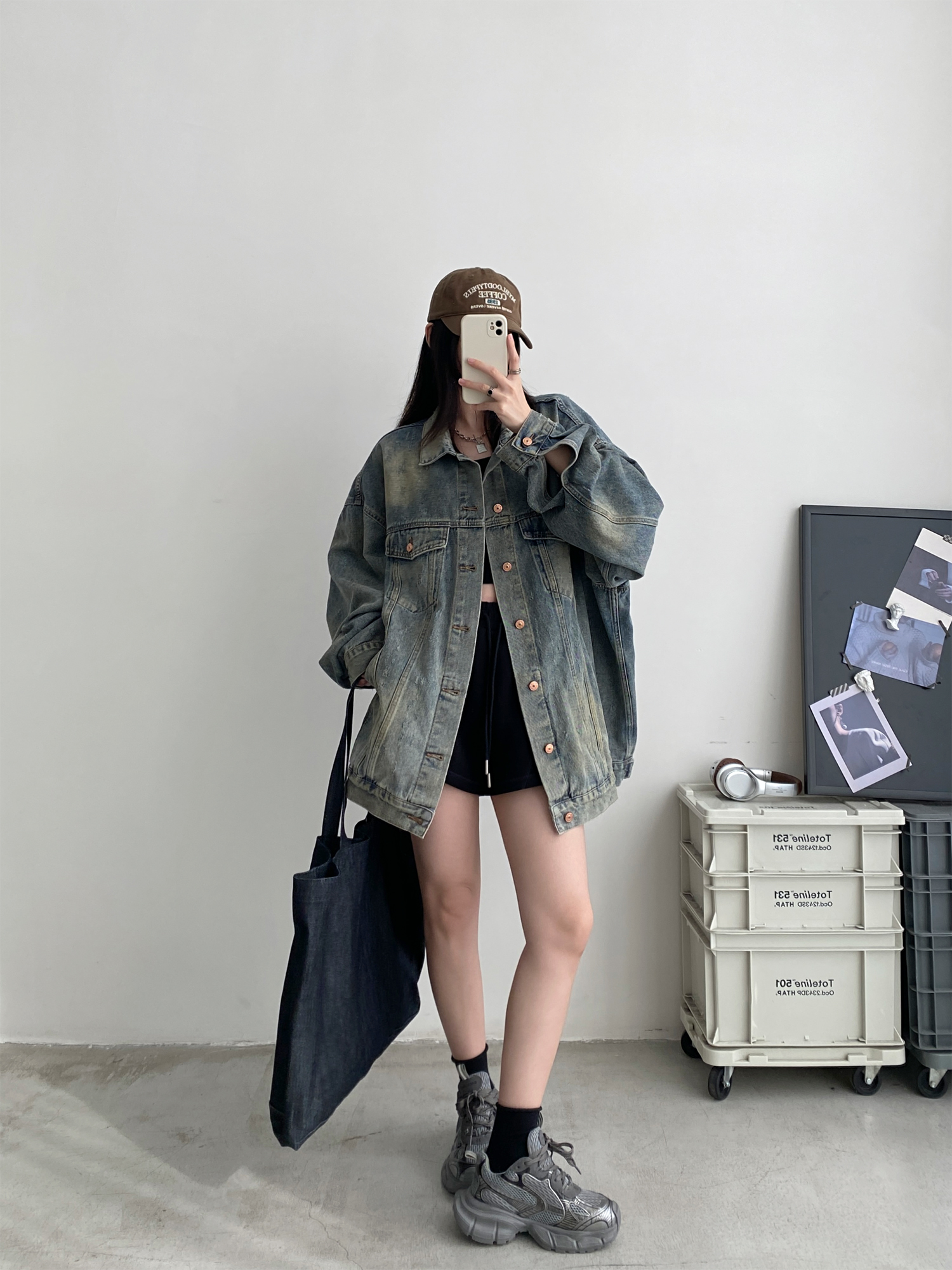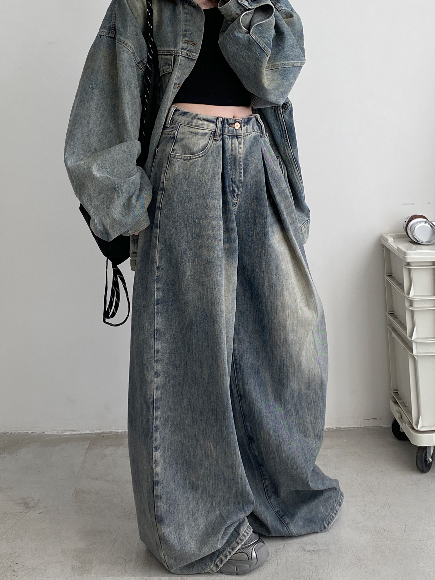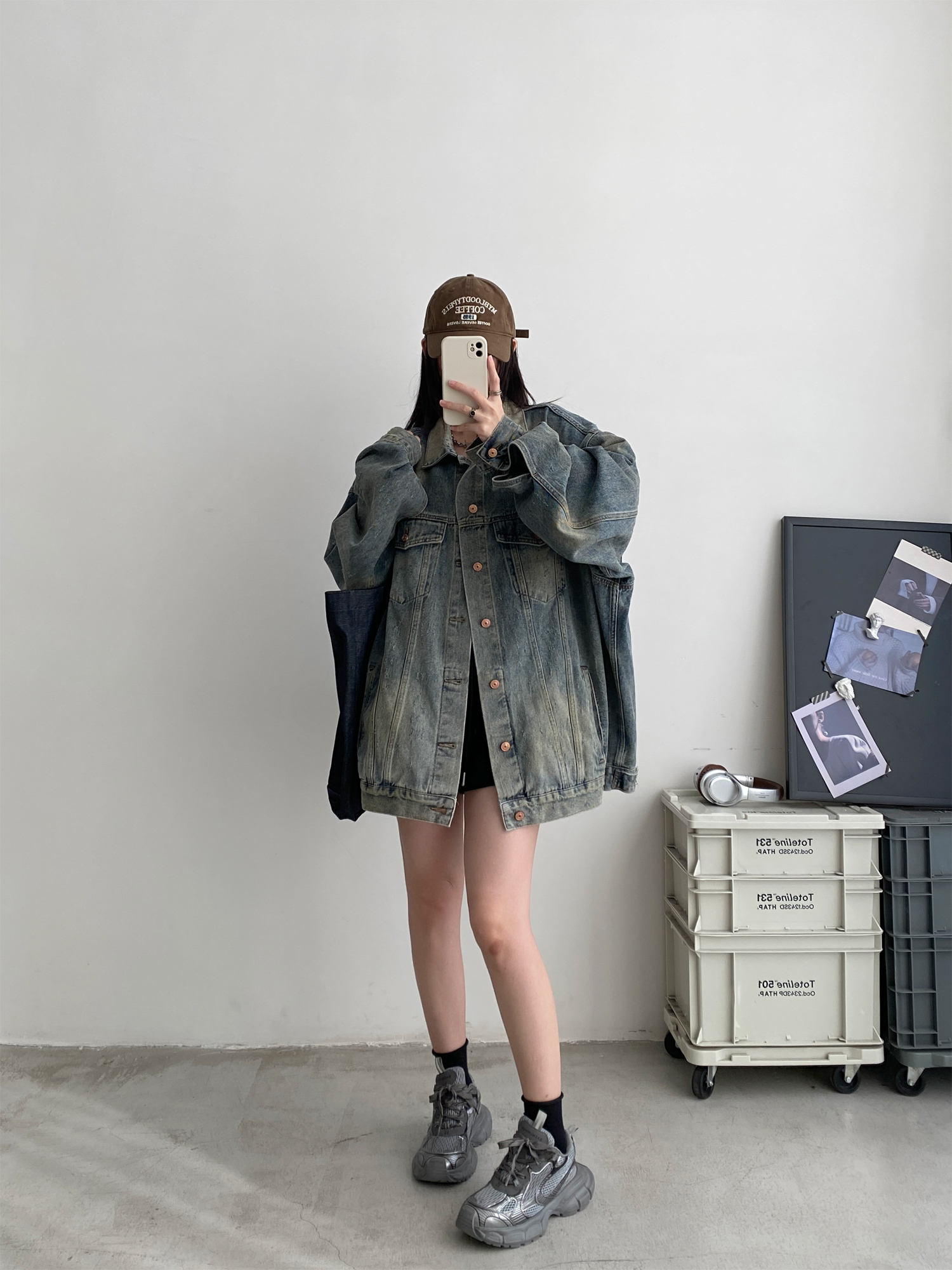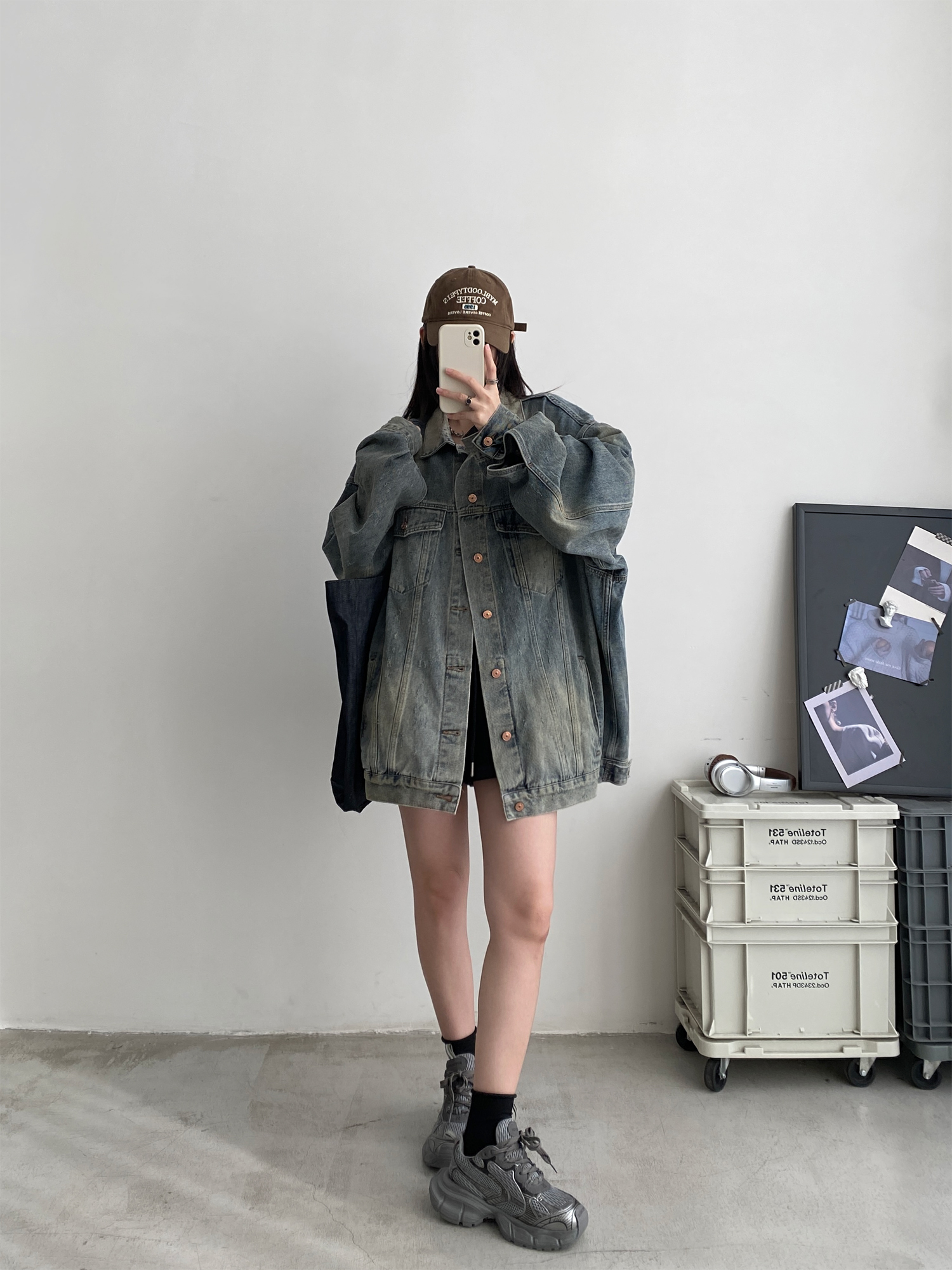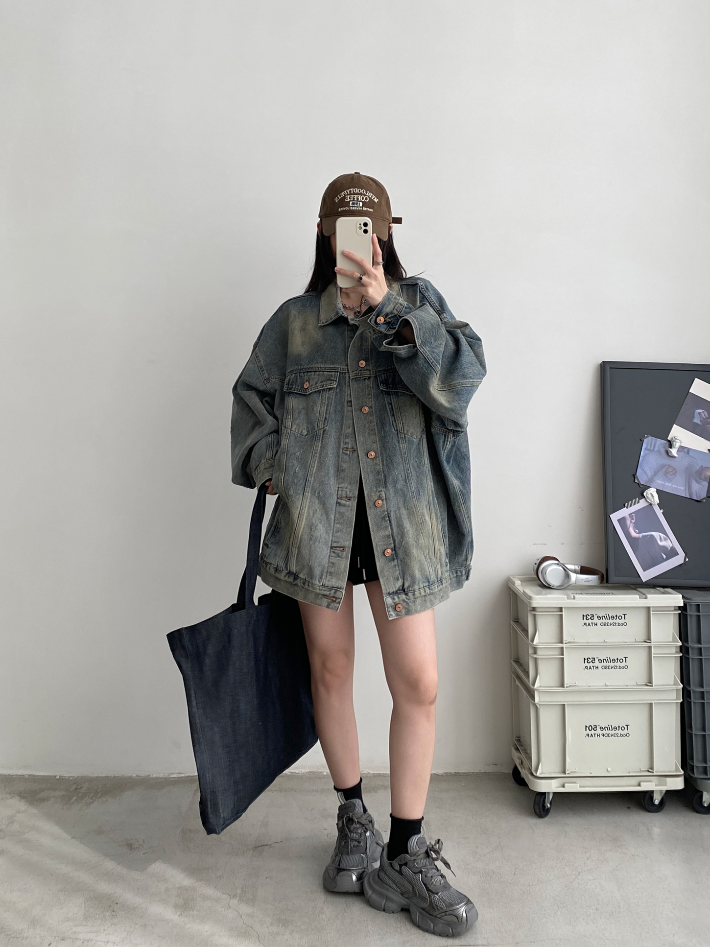 【商品名】【アウター】春 秋 夏 ヴィンテージ風 オーバーサイズ ジャケット+パンツ 2点上下セット【FCシリーズ】