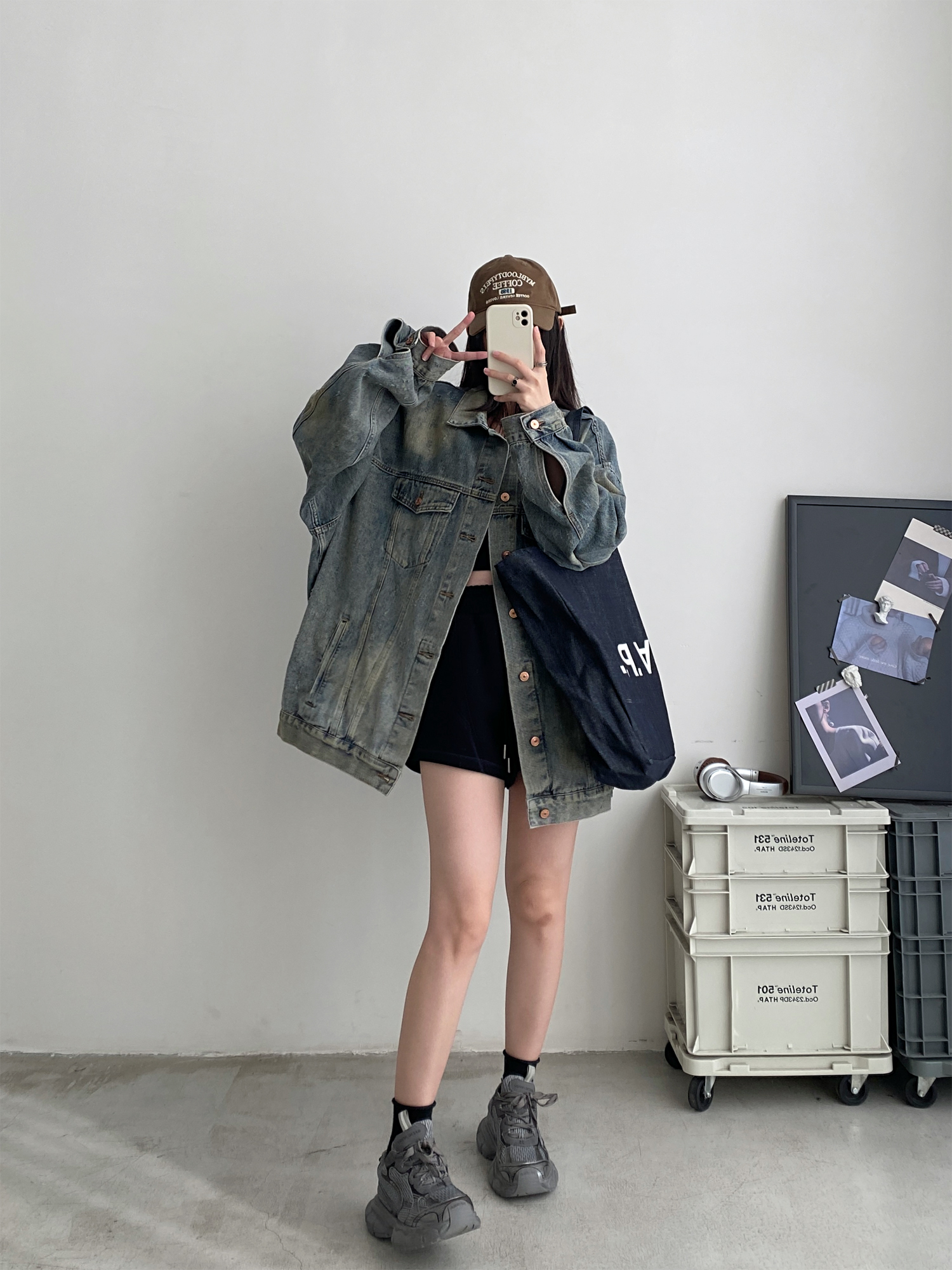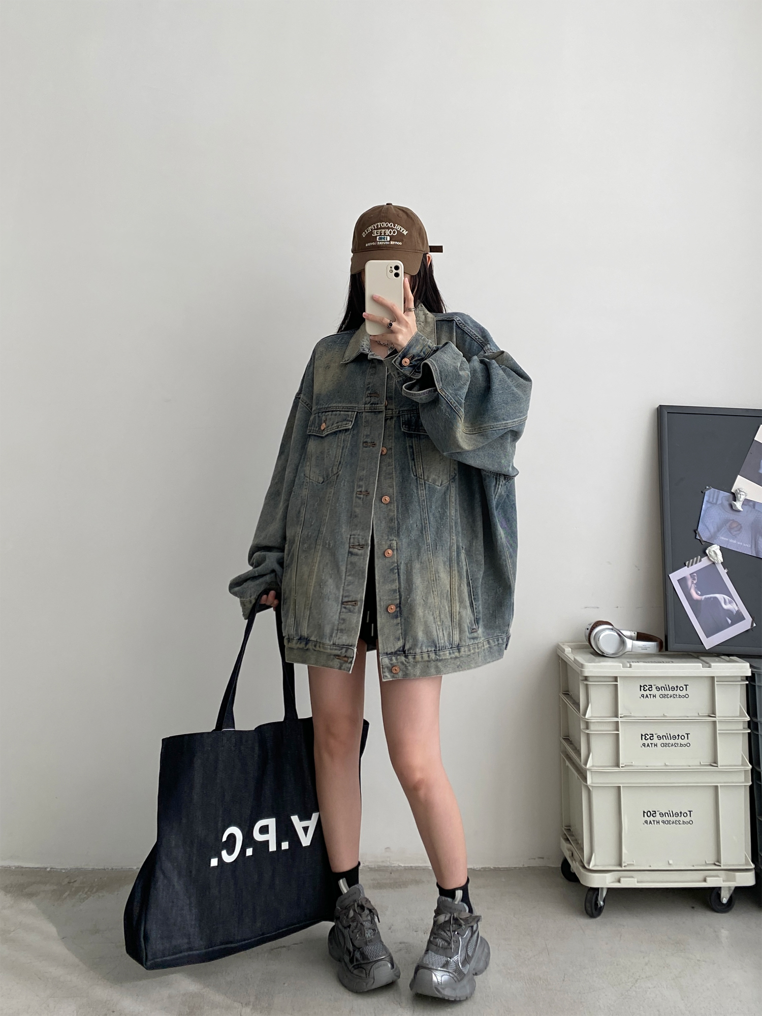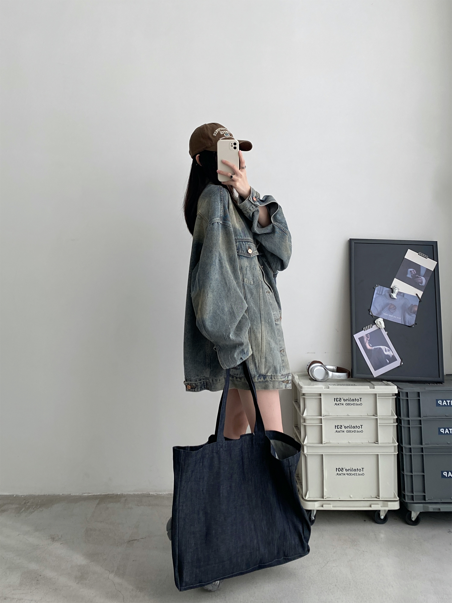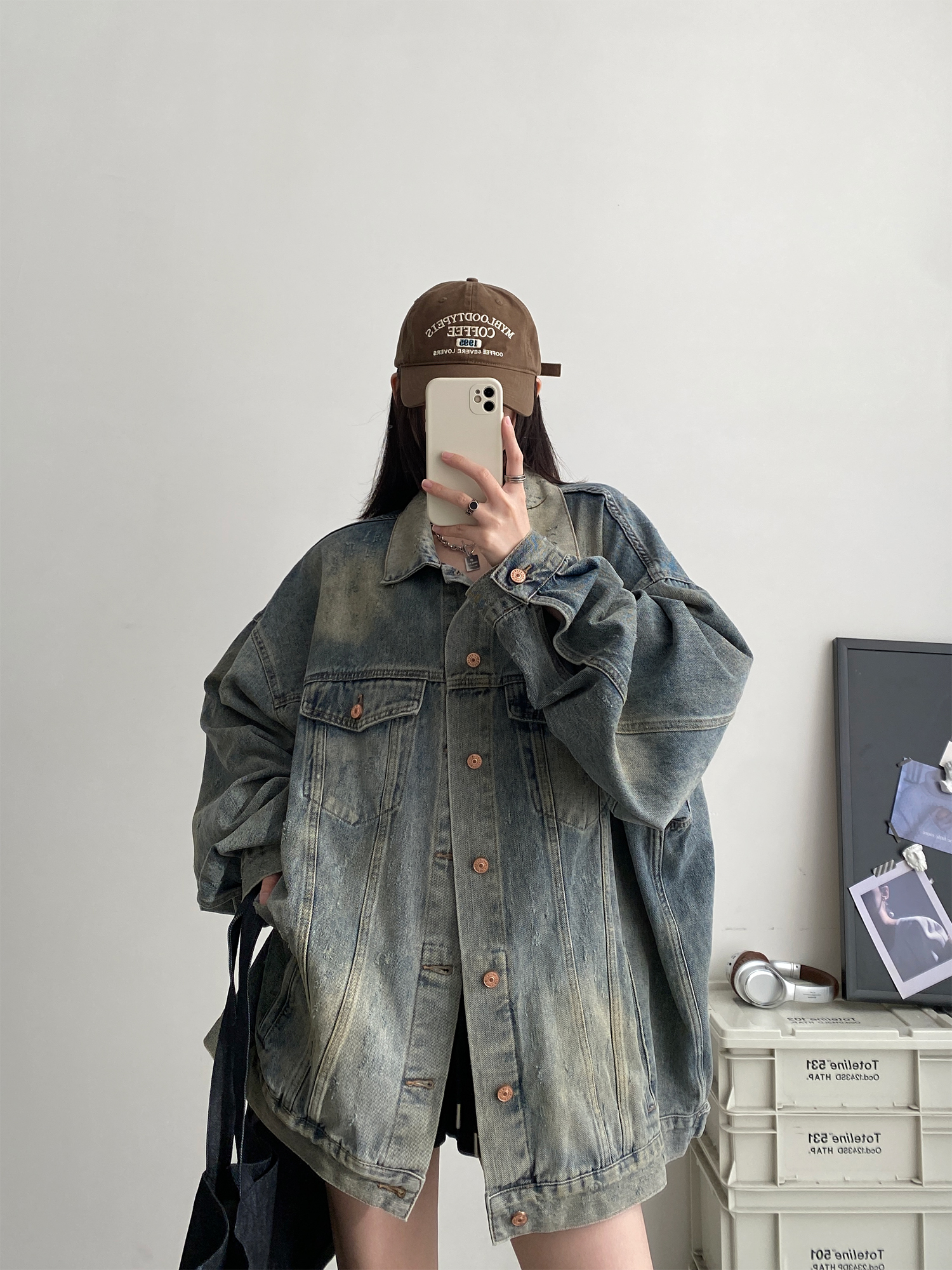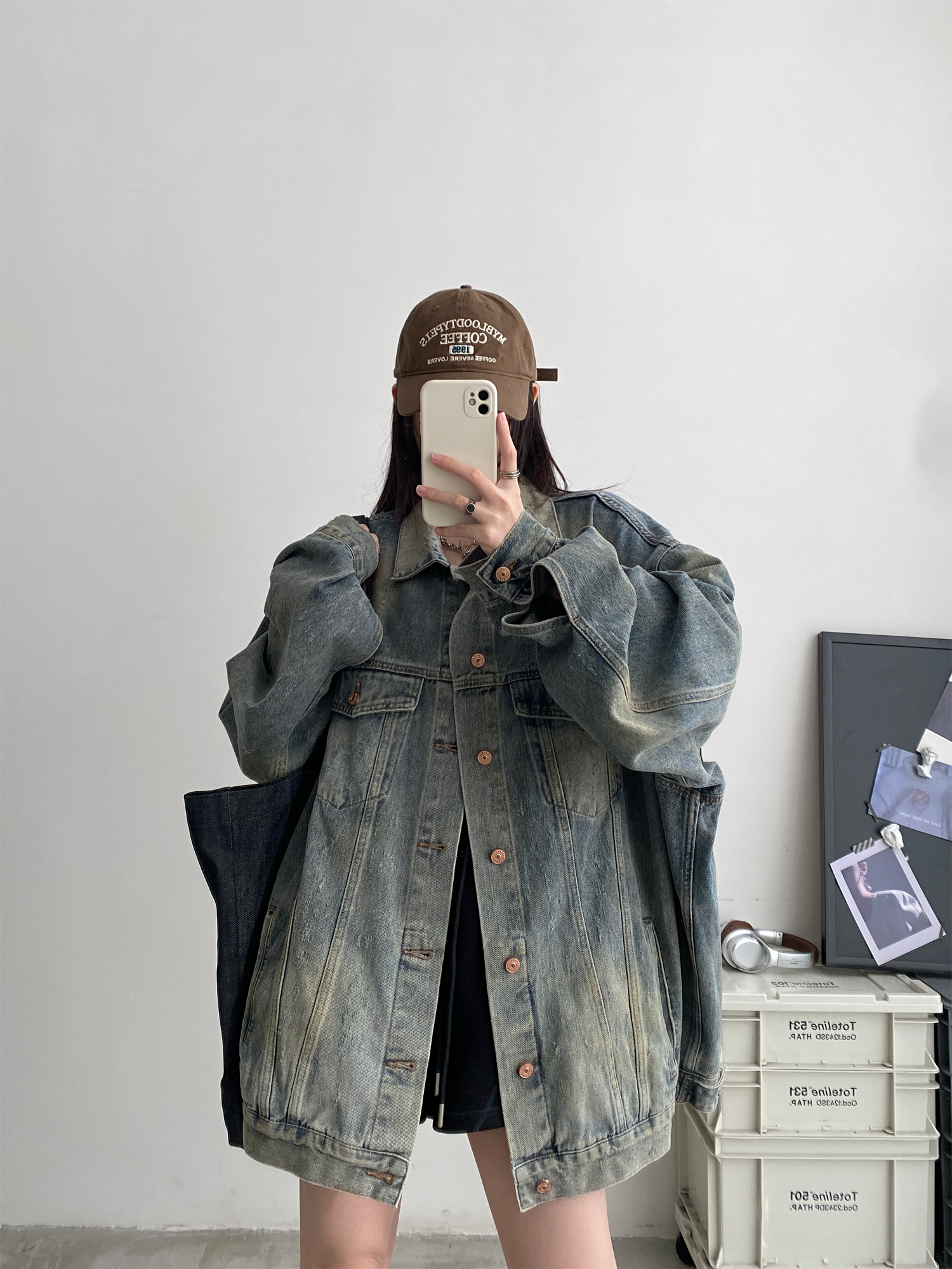 【トップス】春秋冬 Oversize レトロ 刺繍 ゆったり フード付き デニム パーカー【FCシリーズ】【15~20日発送】